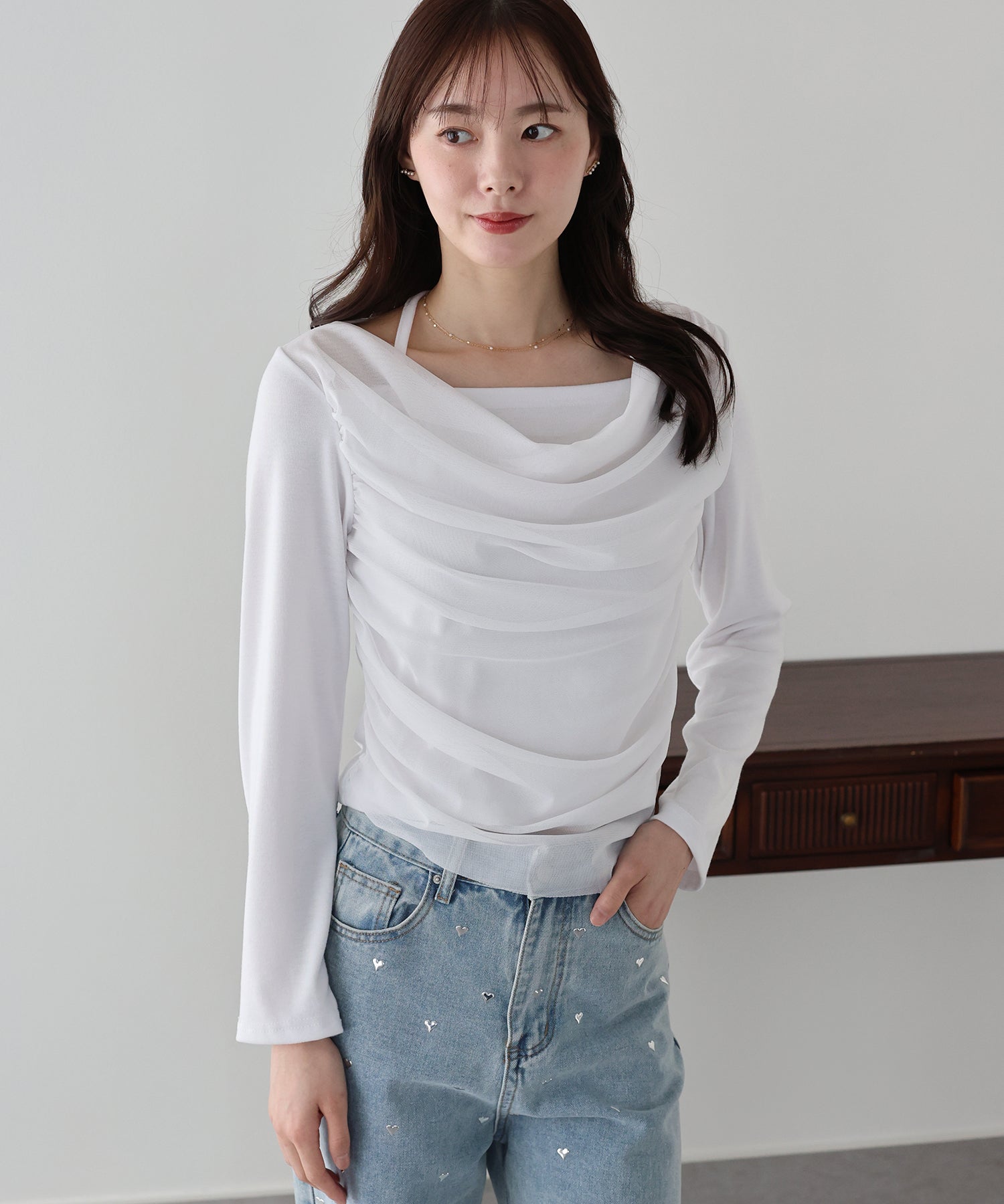 【早割5%OFF】レイヤードチュールドレープTシャツ【ネコポス】