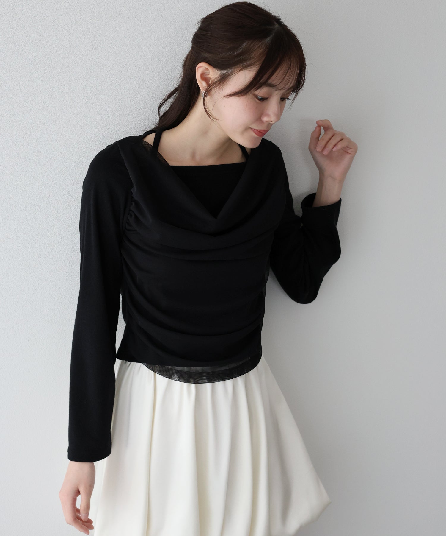 TIME SALE【早割5%OFF】レイヤードチュールドレープTシャツ【ネコポス】
