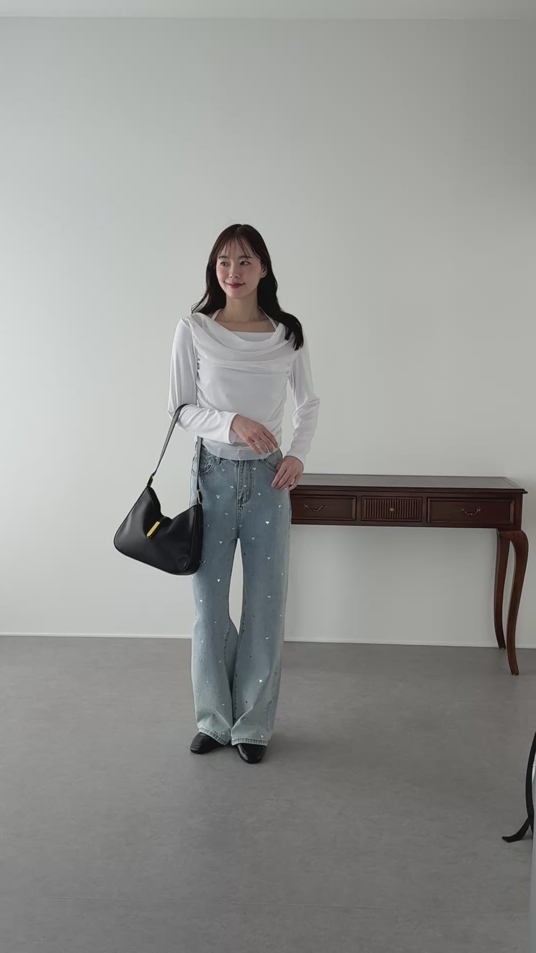 流れるようなドレープ感たっぷりのネックラインがトレンドライクで上品なドッキングカットソー。