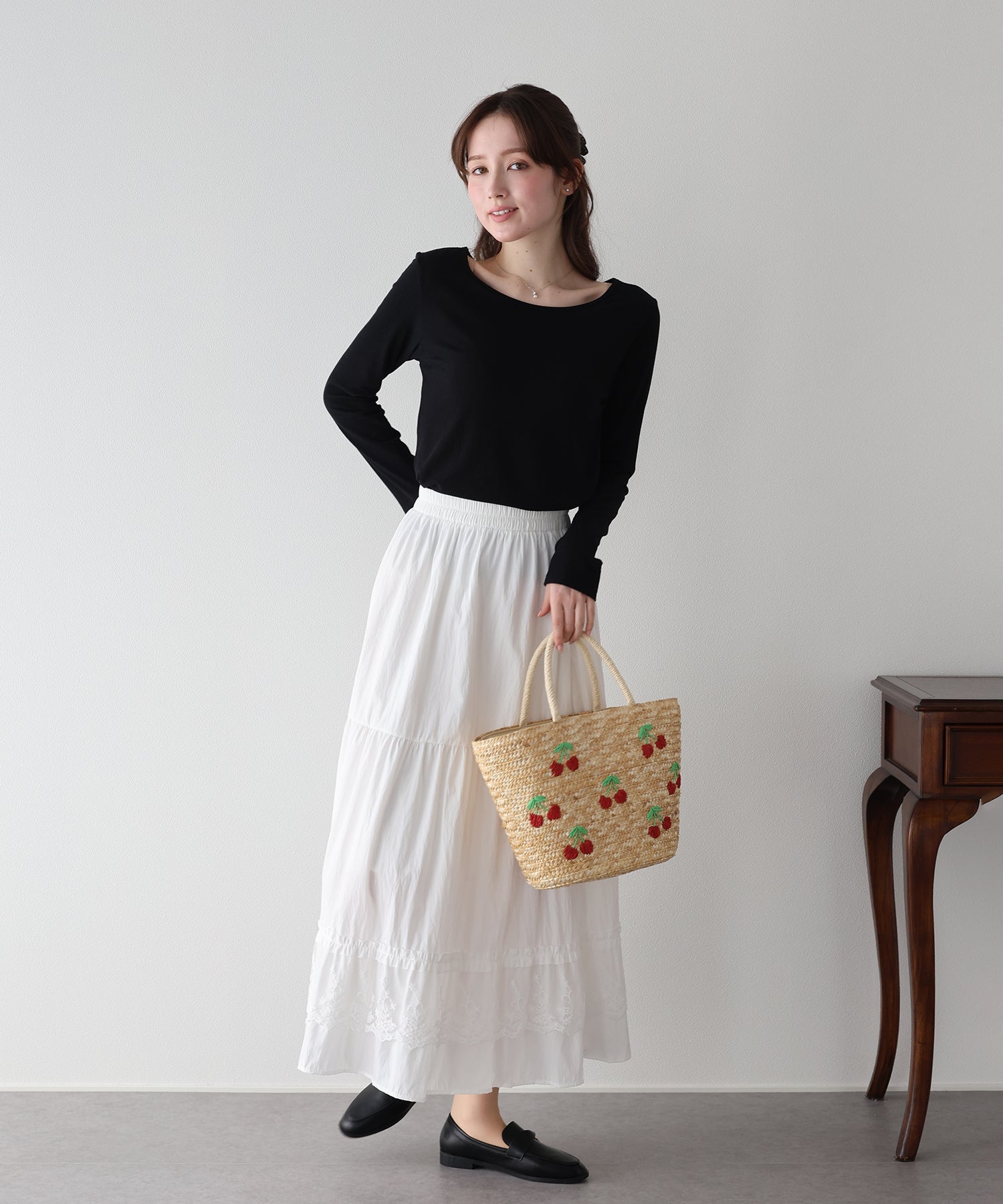 フレアスカートやワイドパンツ、スラックスなどボリュームのあるアイテムを合わせるとバランスよく着こなせます。