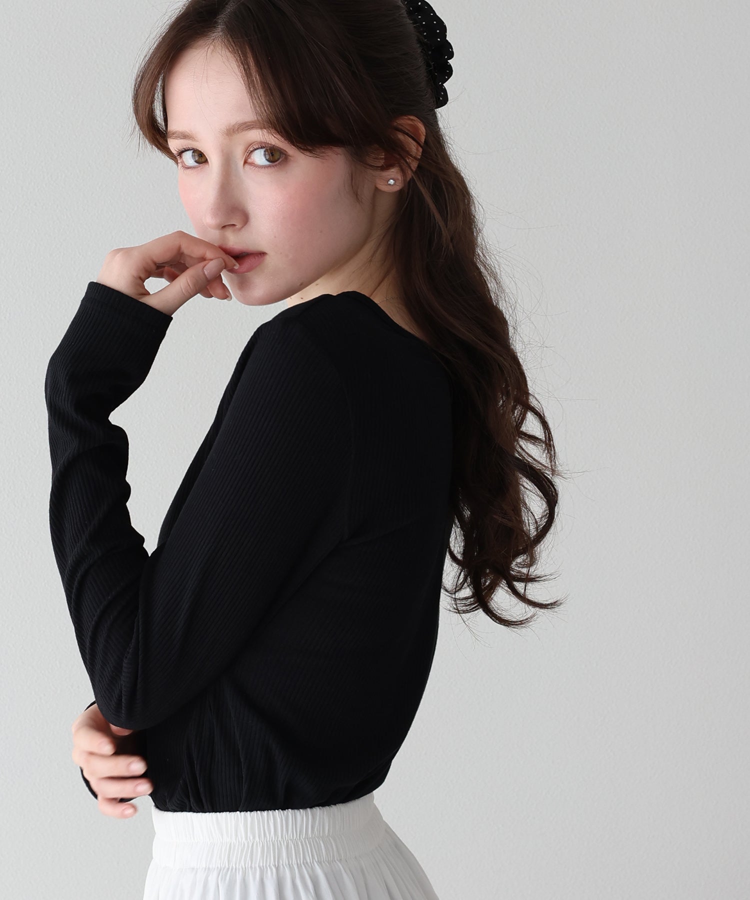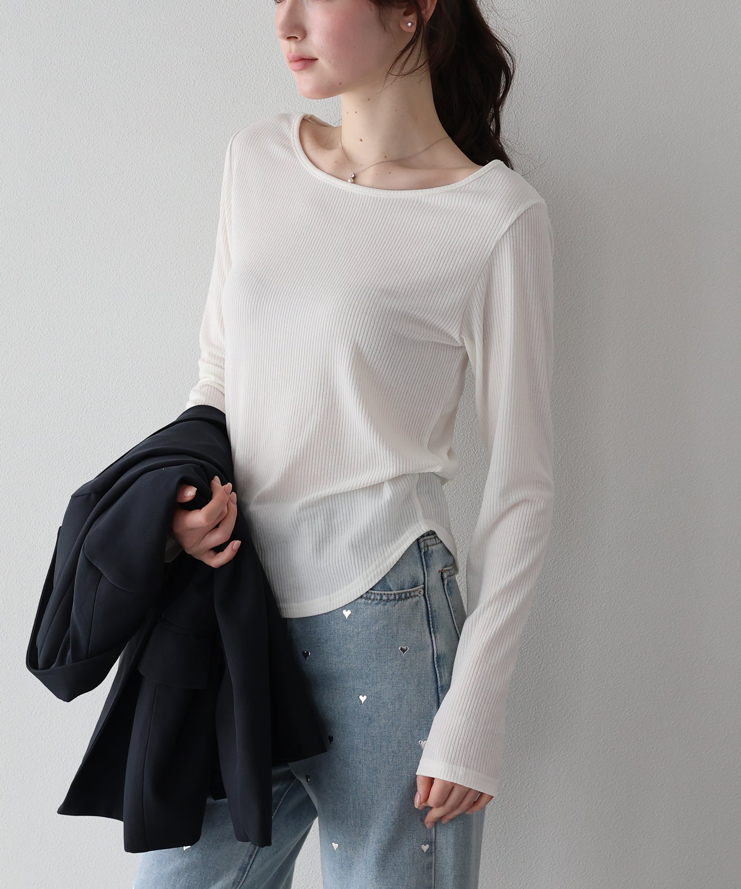 ベーシックに使いやすい、シンプルなリブカットソー。