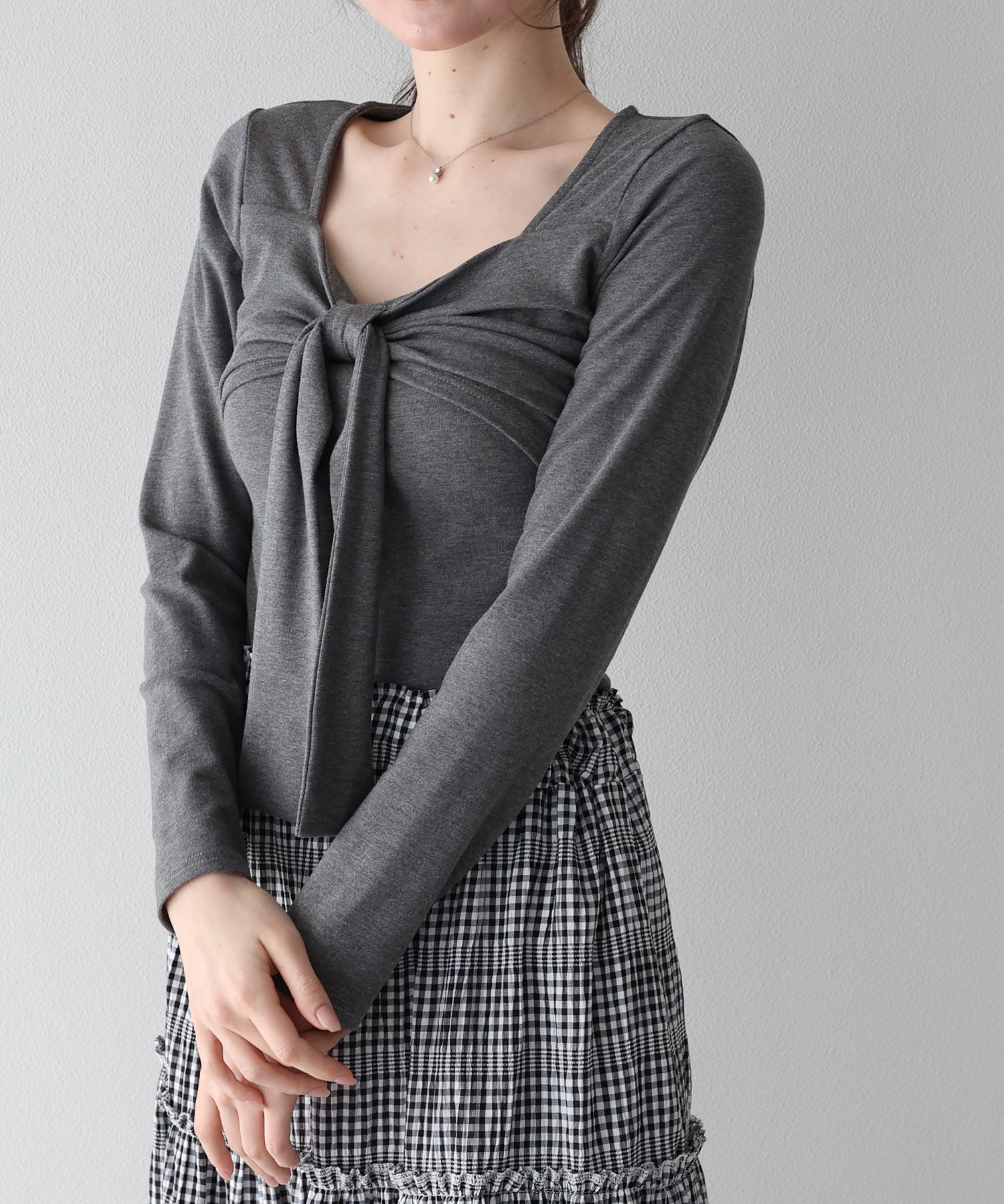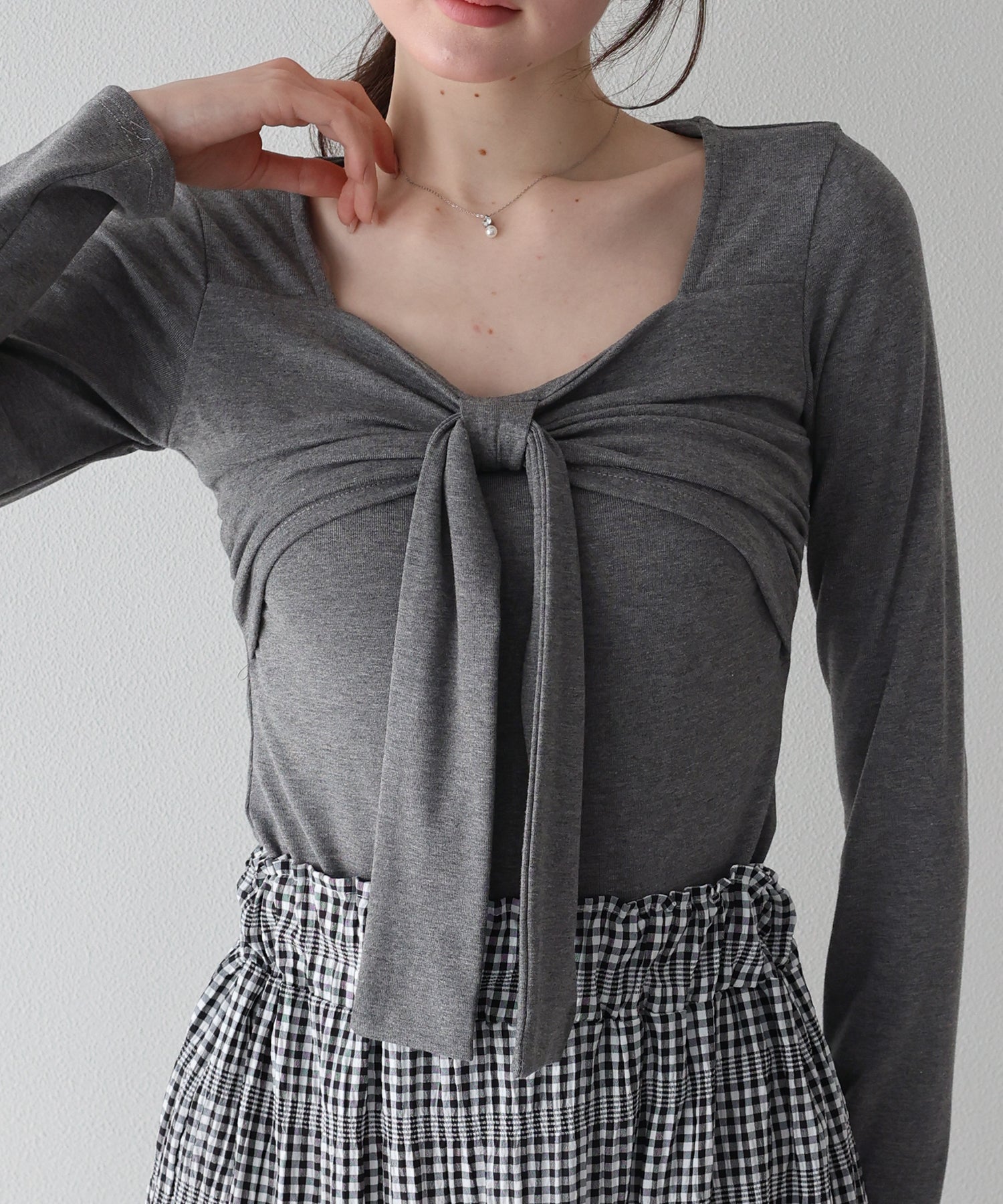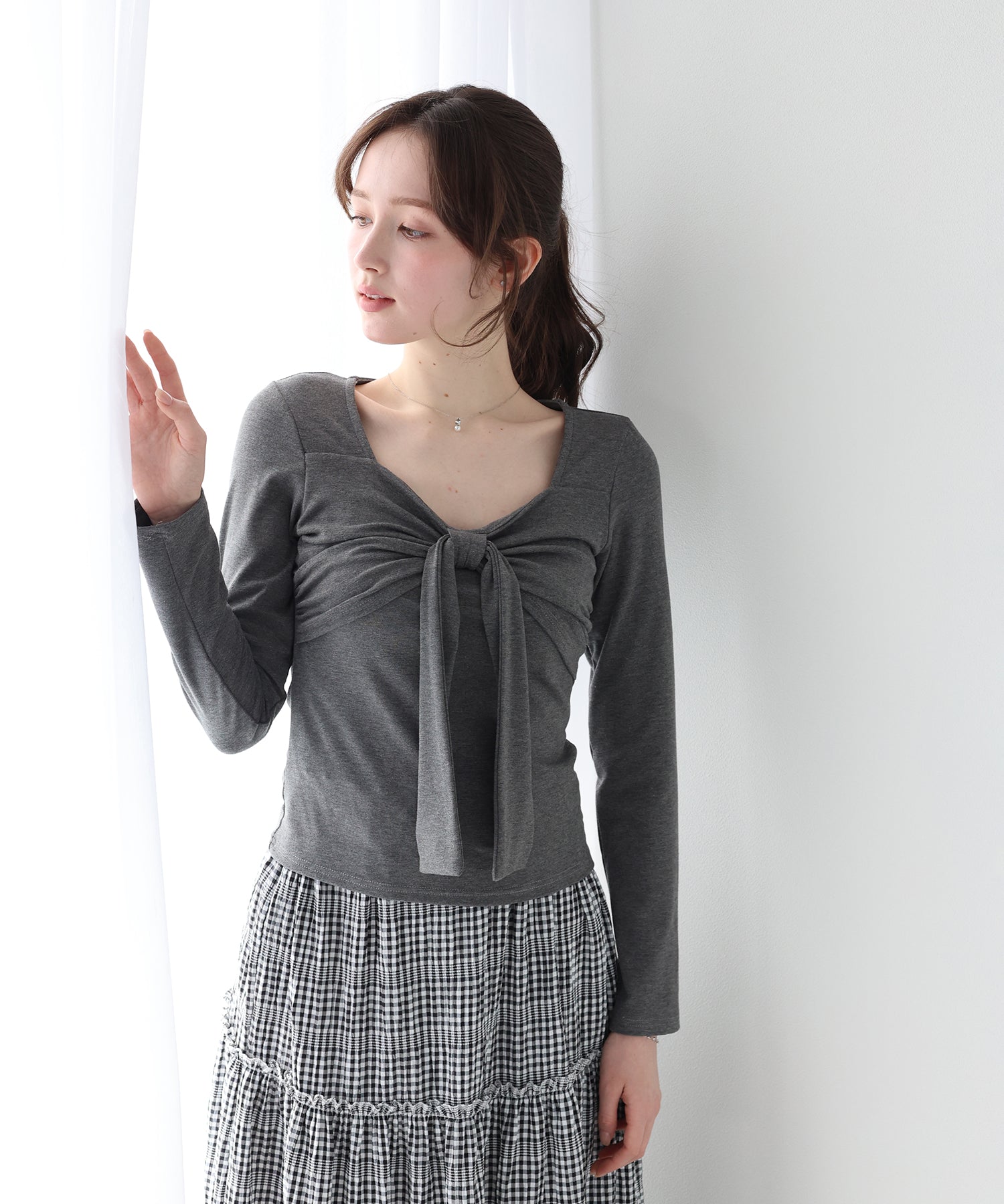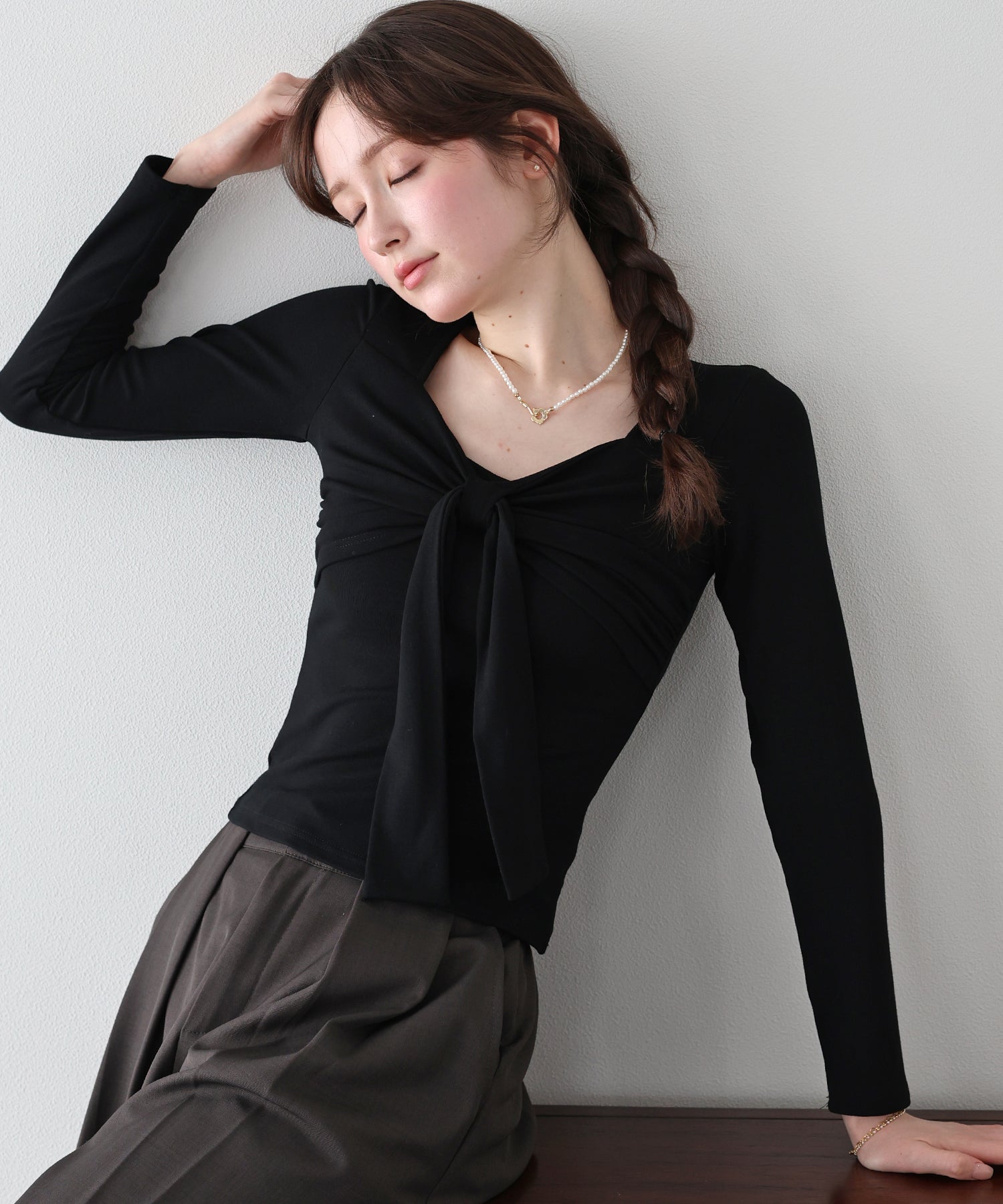カジュアル×フェミニンな魅力のフロントリボンカットソー