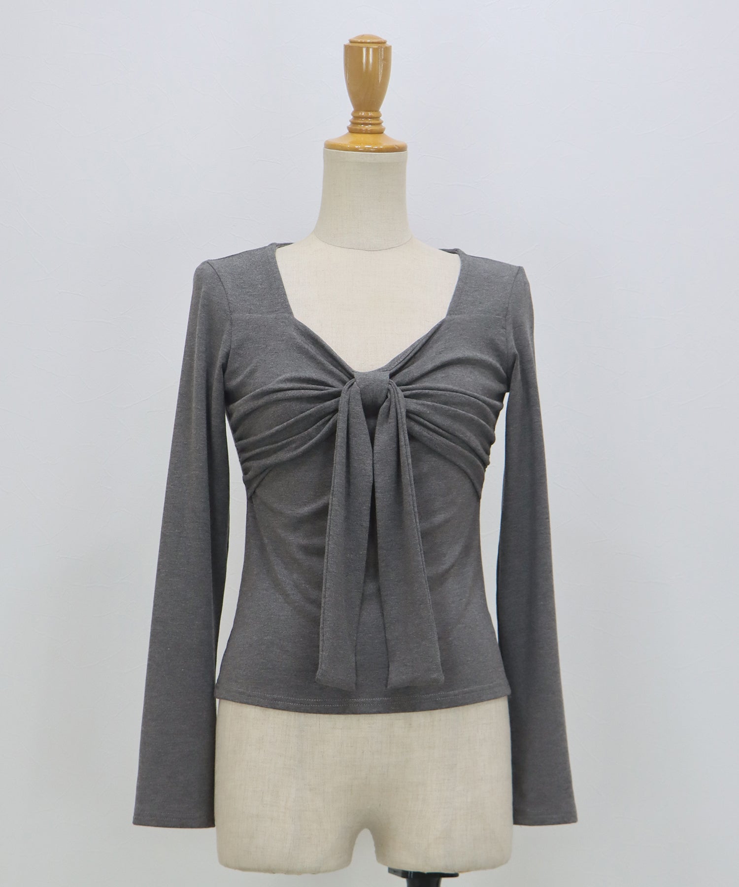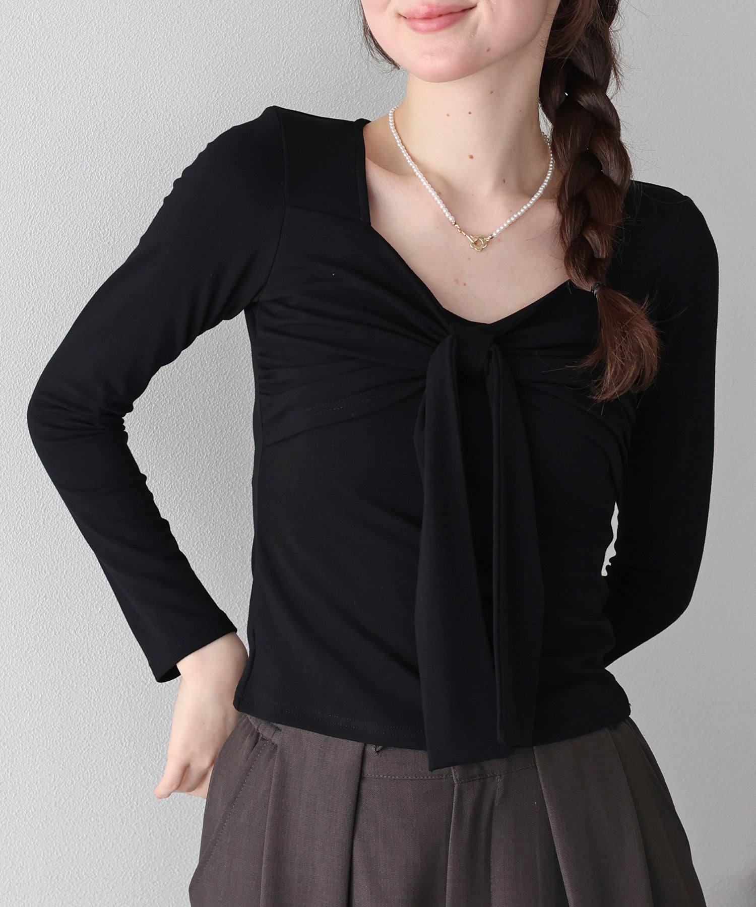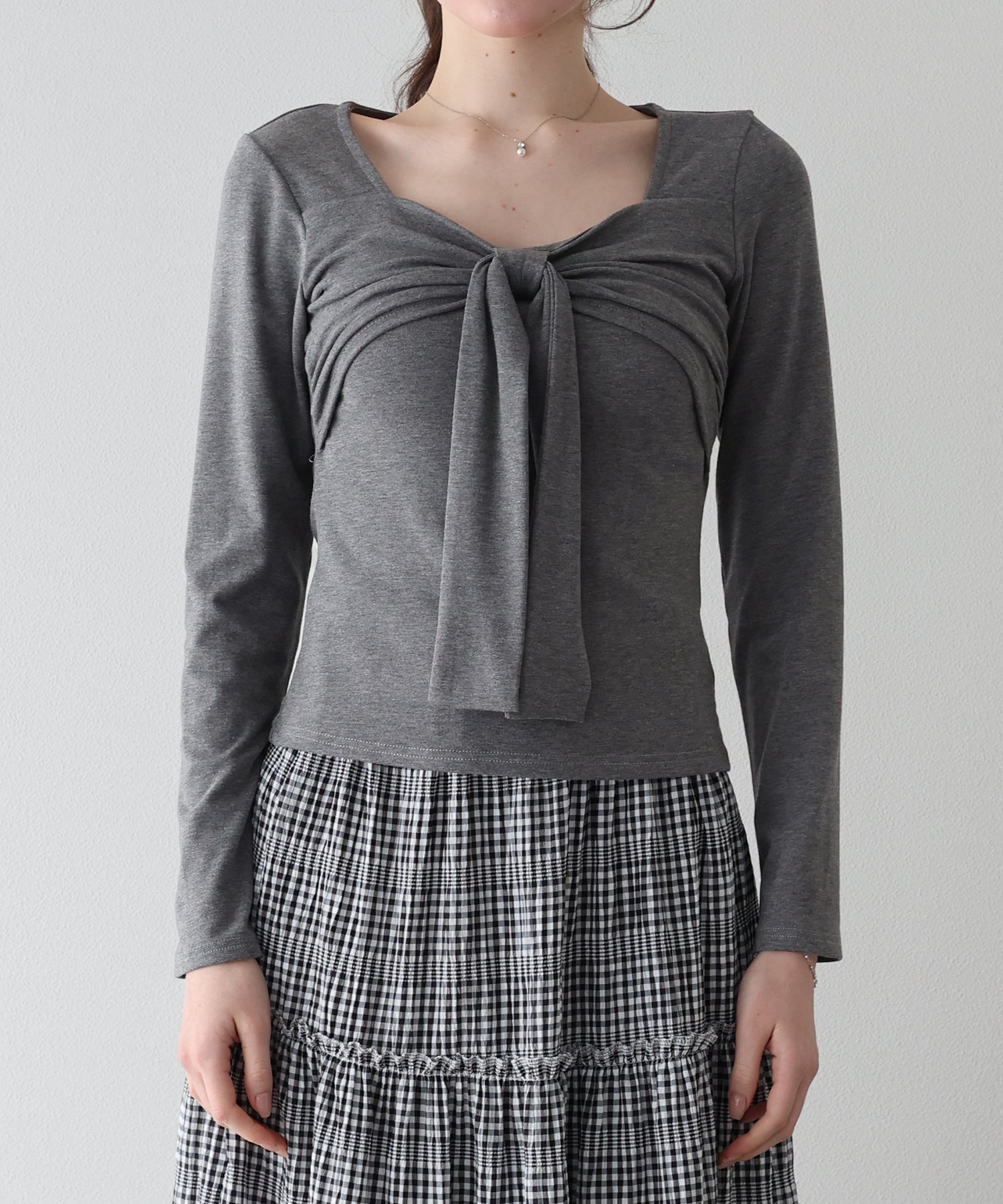 カジュアル×フェミニンな魅力のフロントリボンカットソー