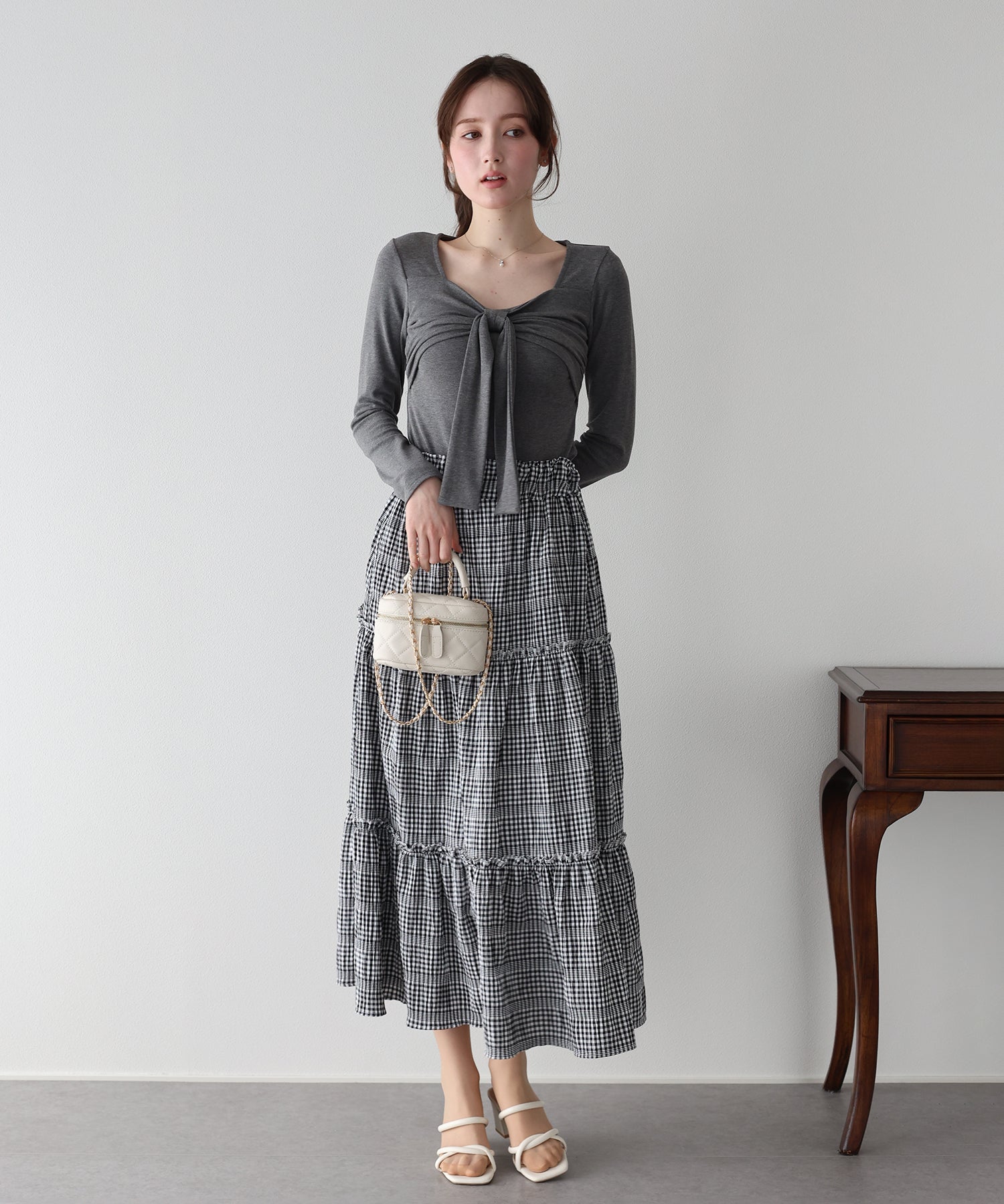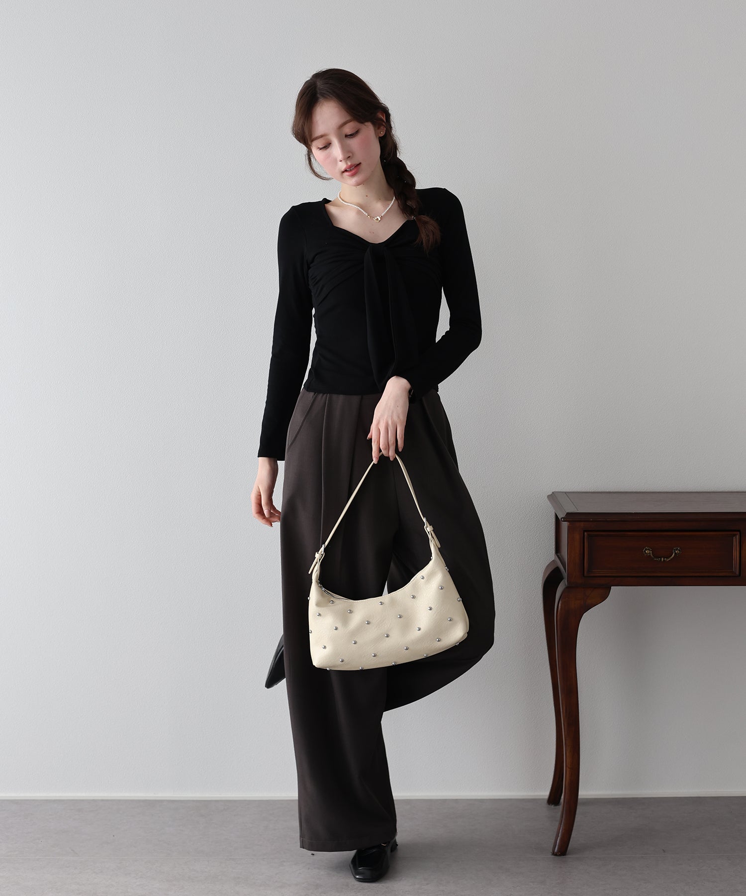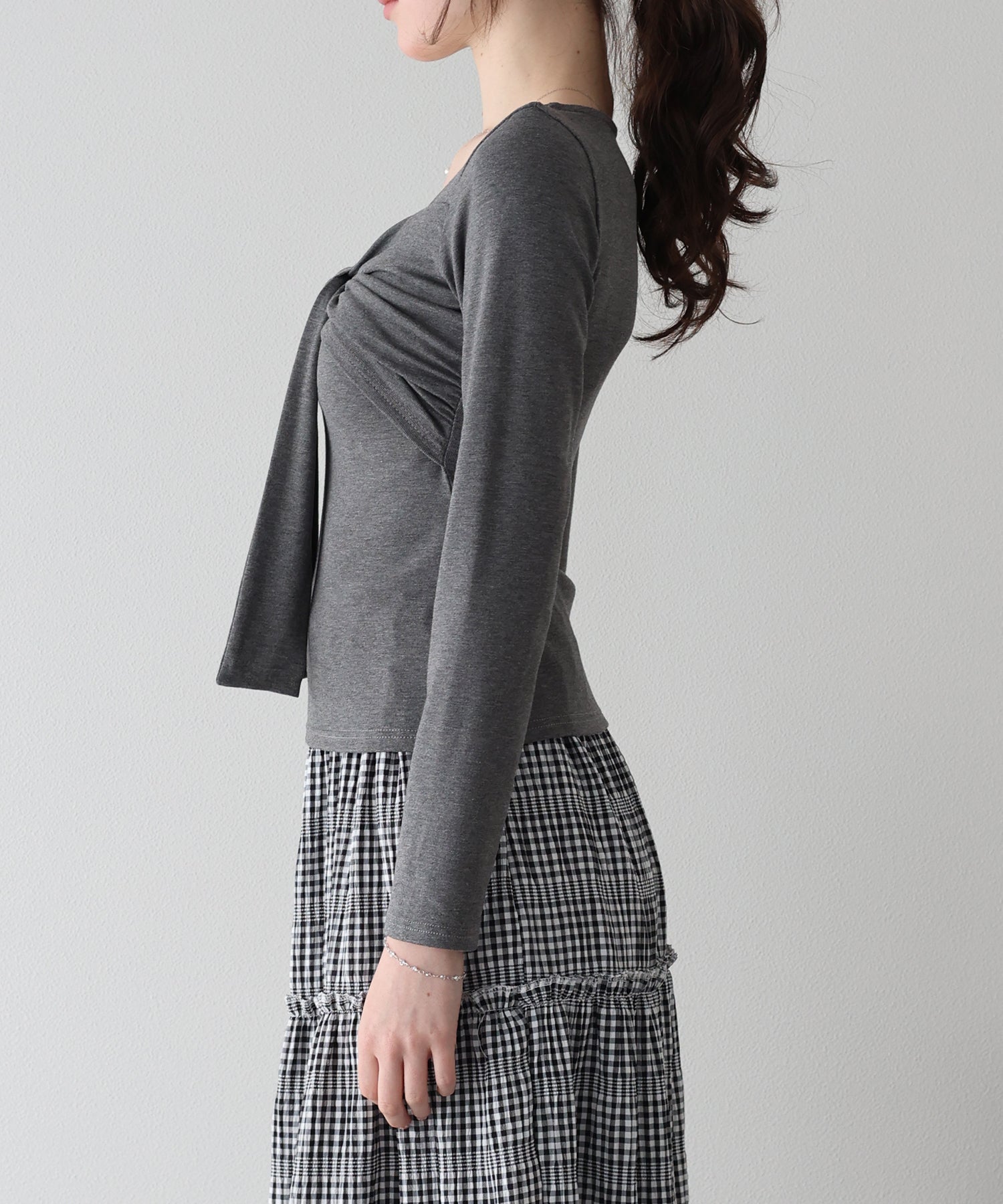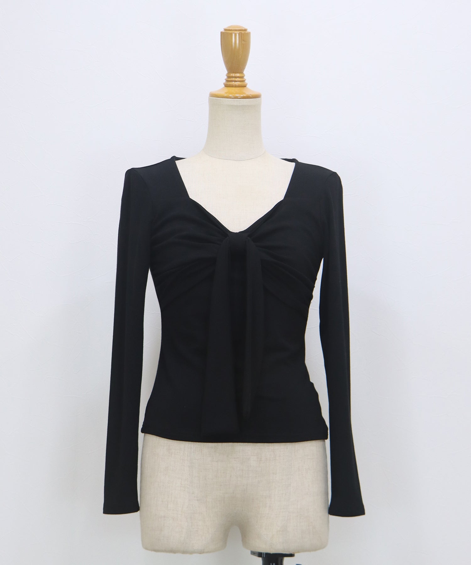 カジュアル×フェミニンな魅力のフロントリボンカットソー
