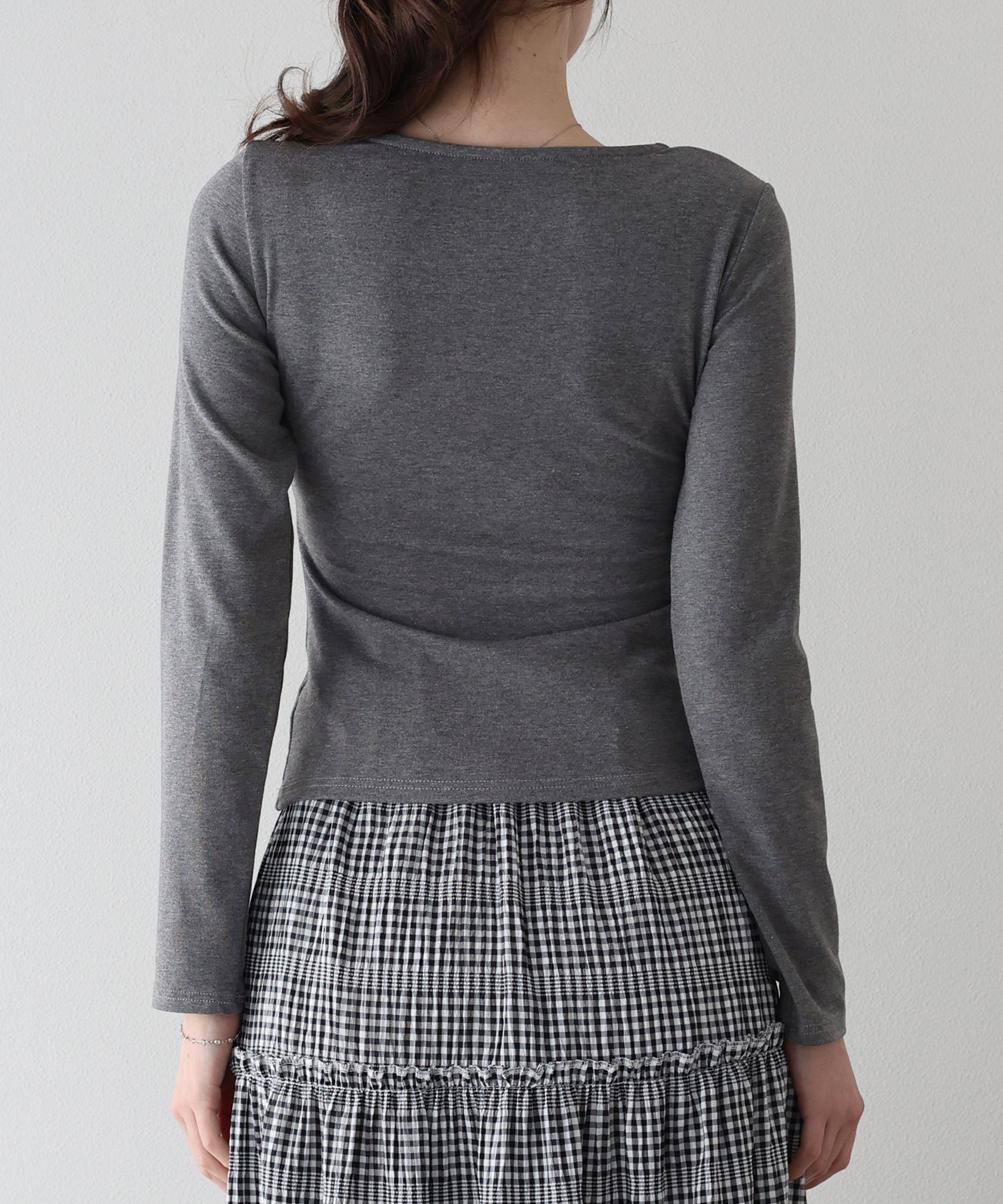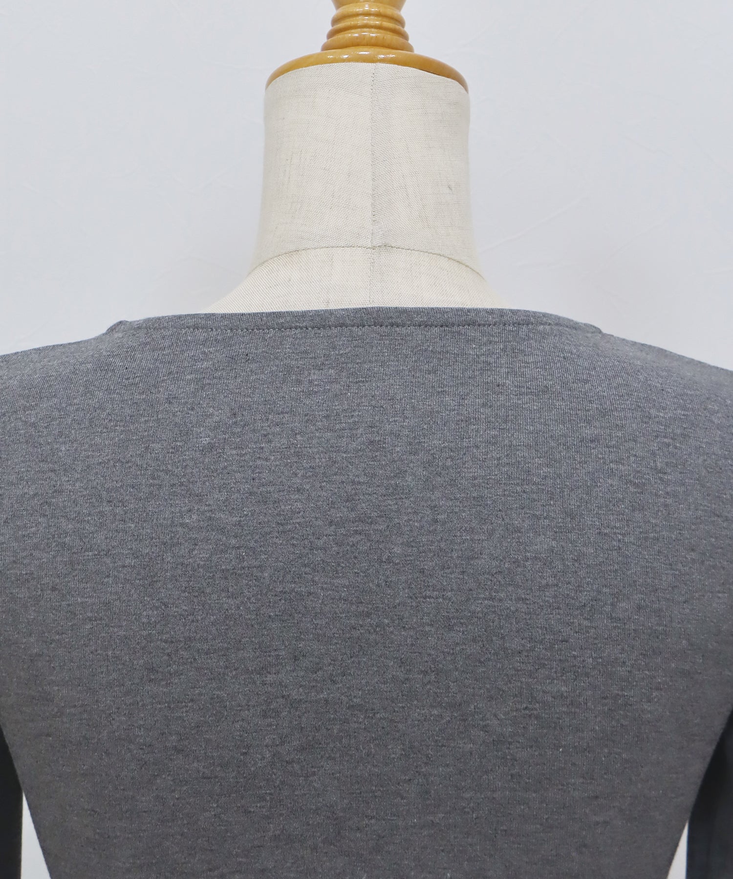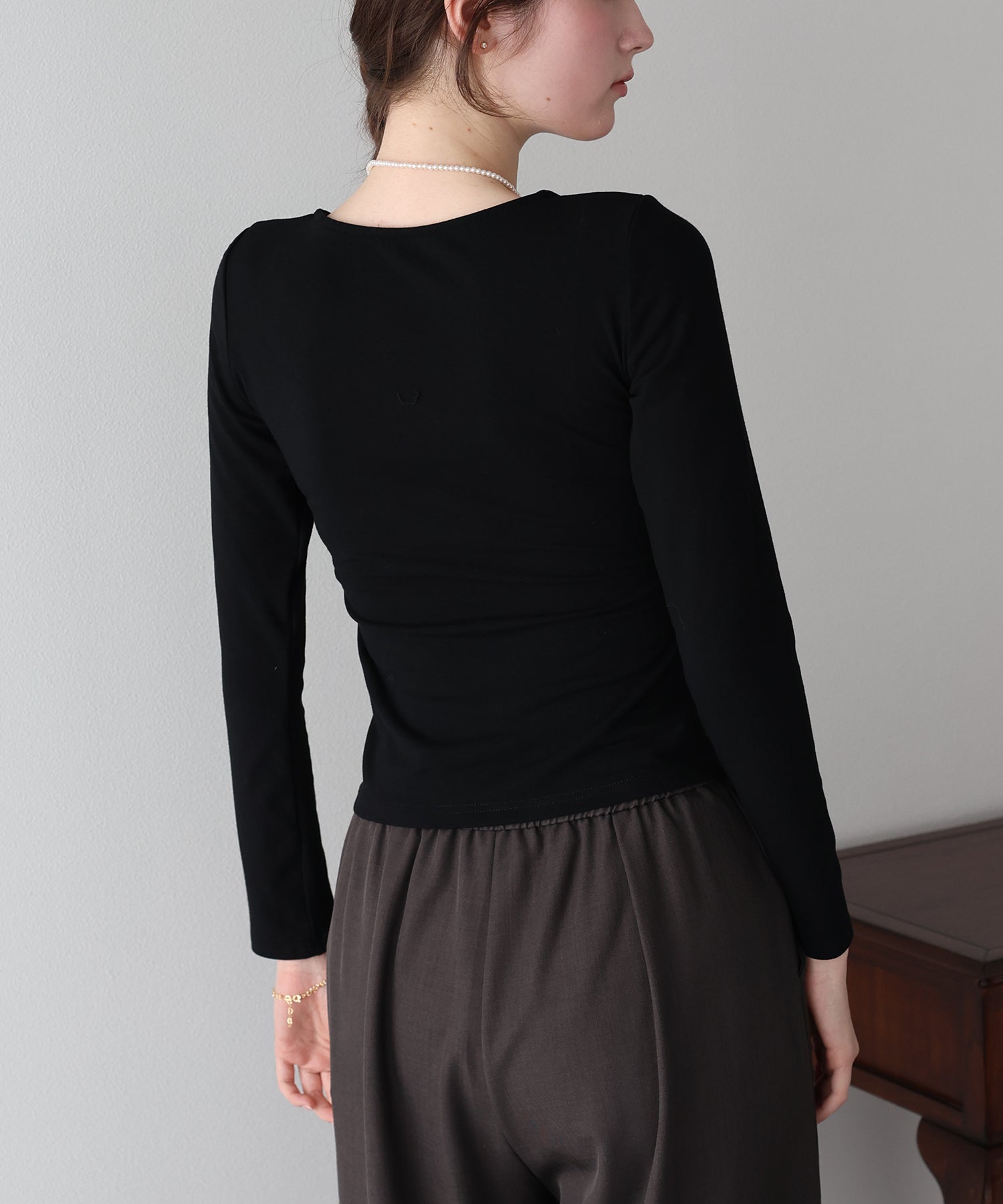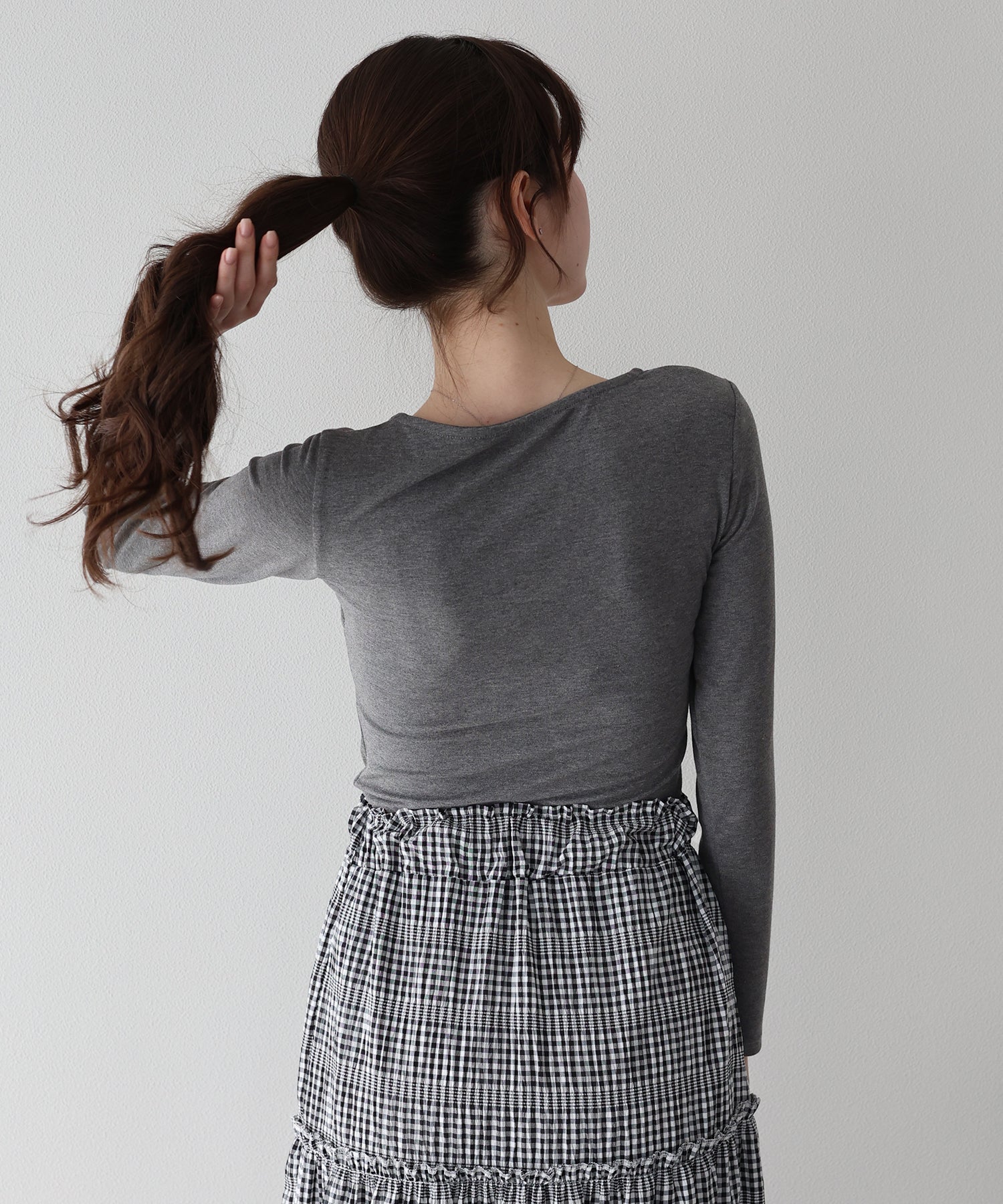 リラクシーなカットソー素材でありながら、ほどよく身体のラインを拾うタイトめなシルエットに仕立てることで、カジュアルの中に艶やかな女性らしい雰囲気をプラスしました。