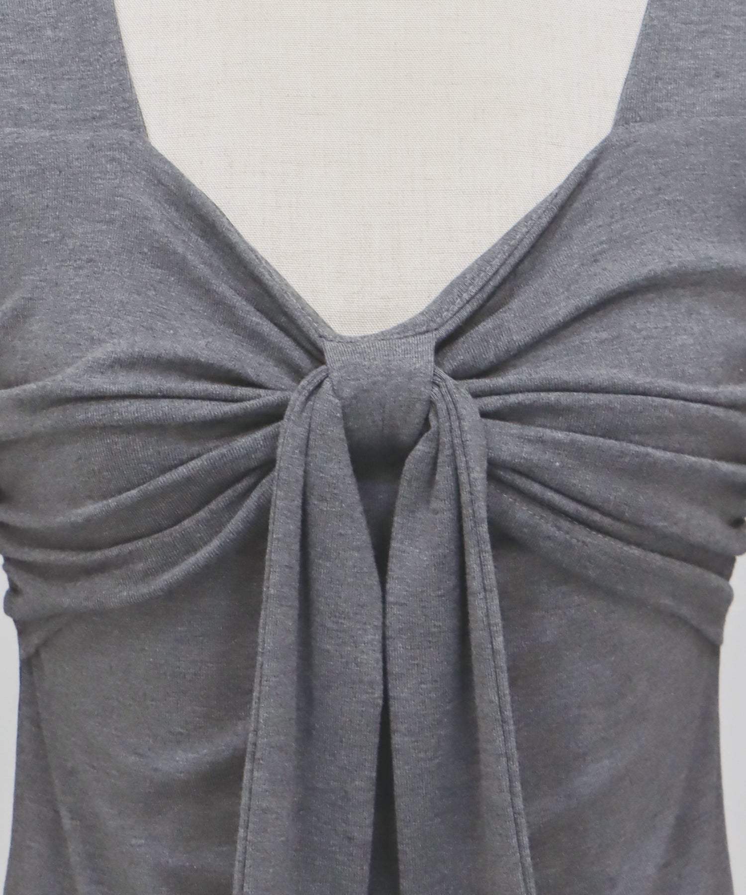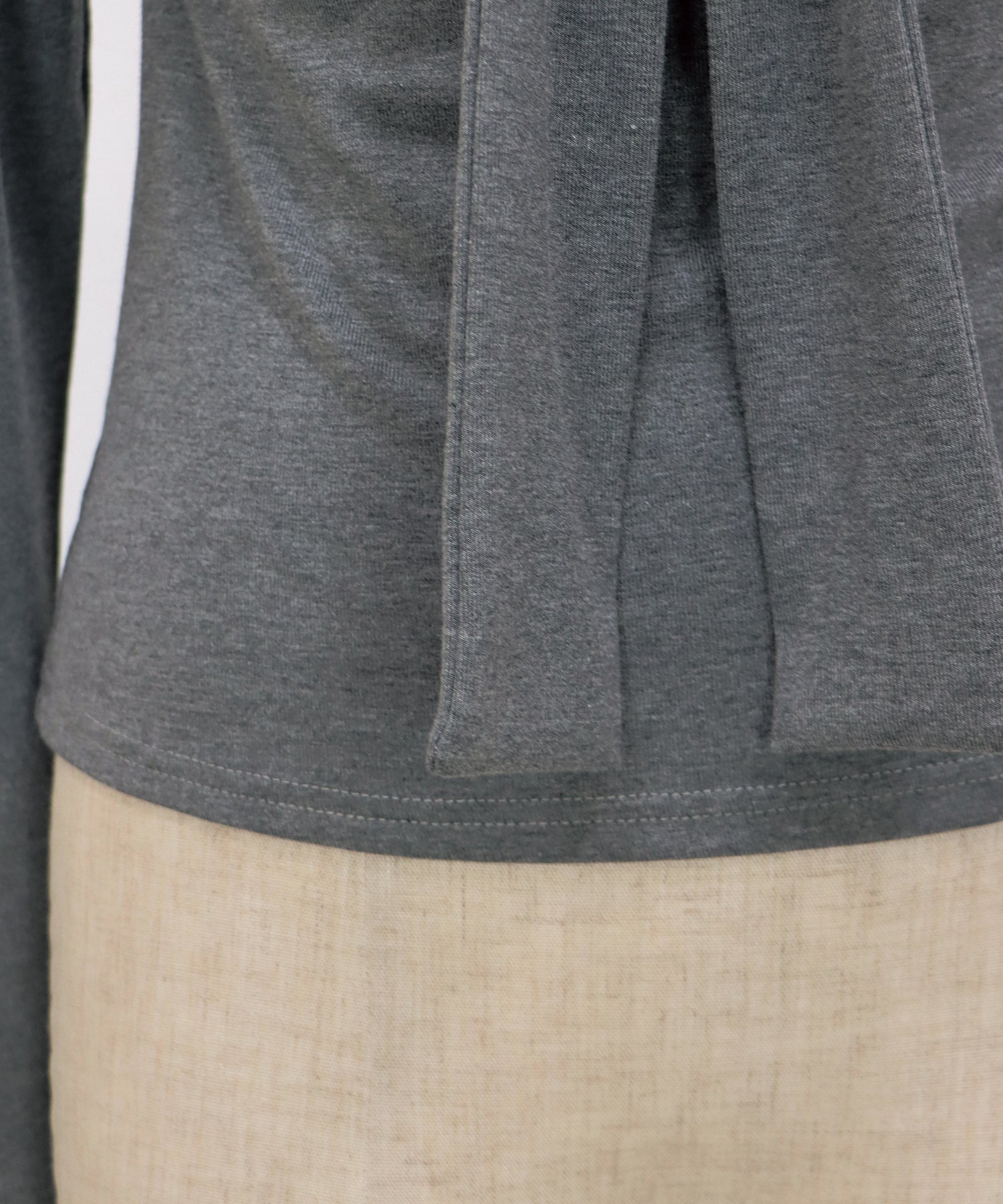 フロントにあしらわれた大胆なリボンデザインが、大人の可愛らしさを引き立てるカットソートップス。