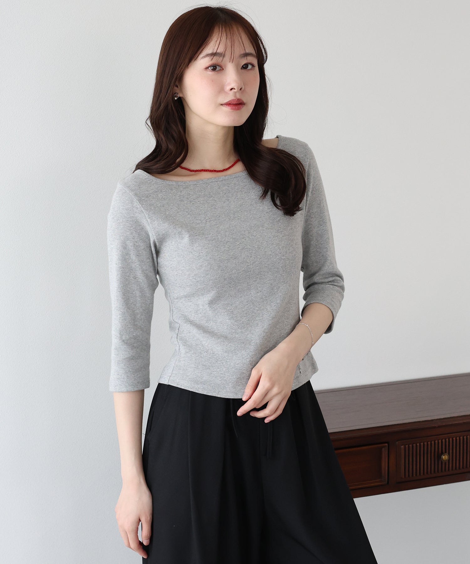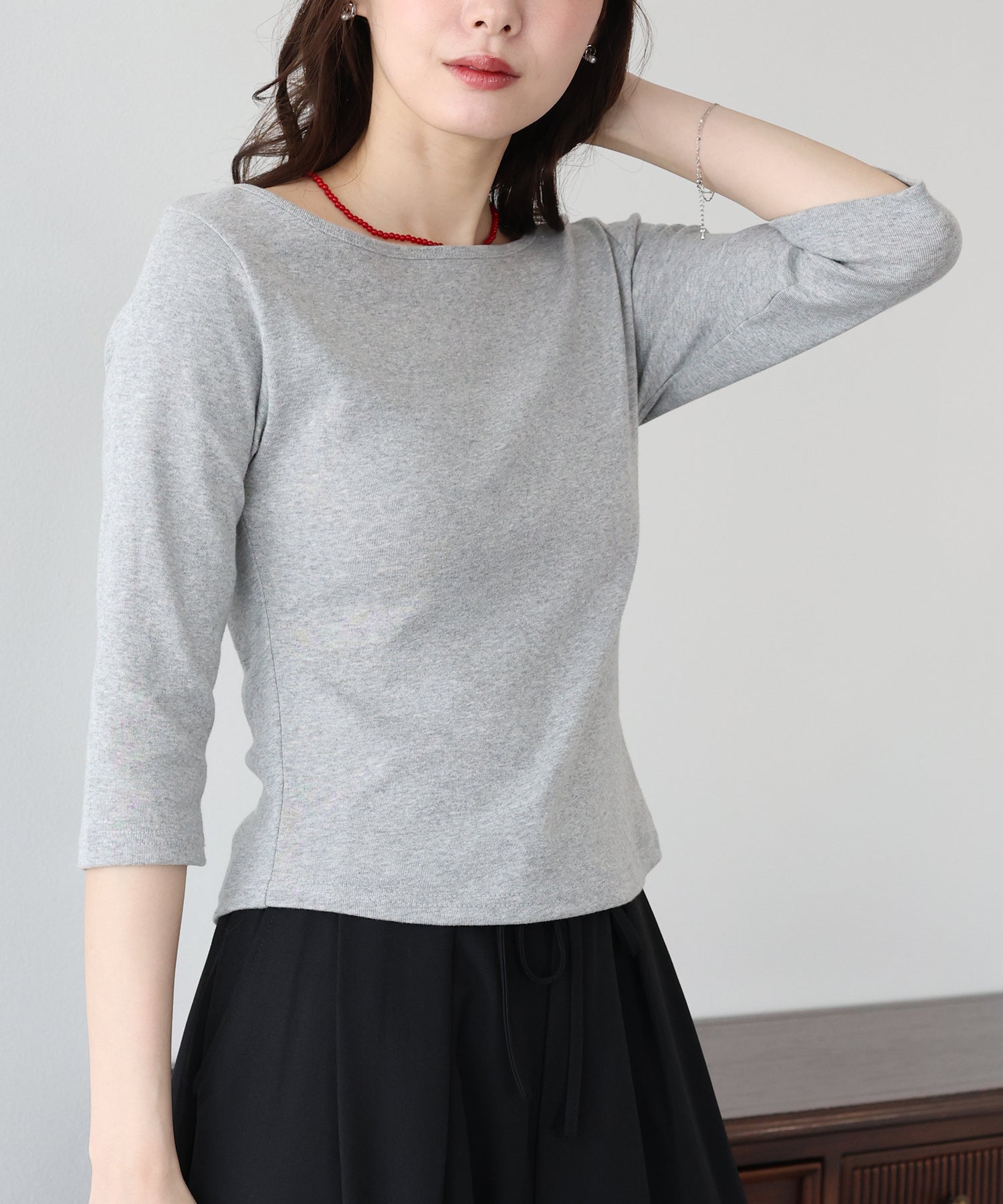 手首が覗く7分袖が、腕周りを華奢に、そしてスリムに見せてくれる絶妙な丈感のカットソー。