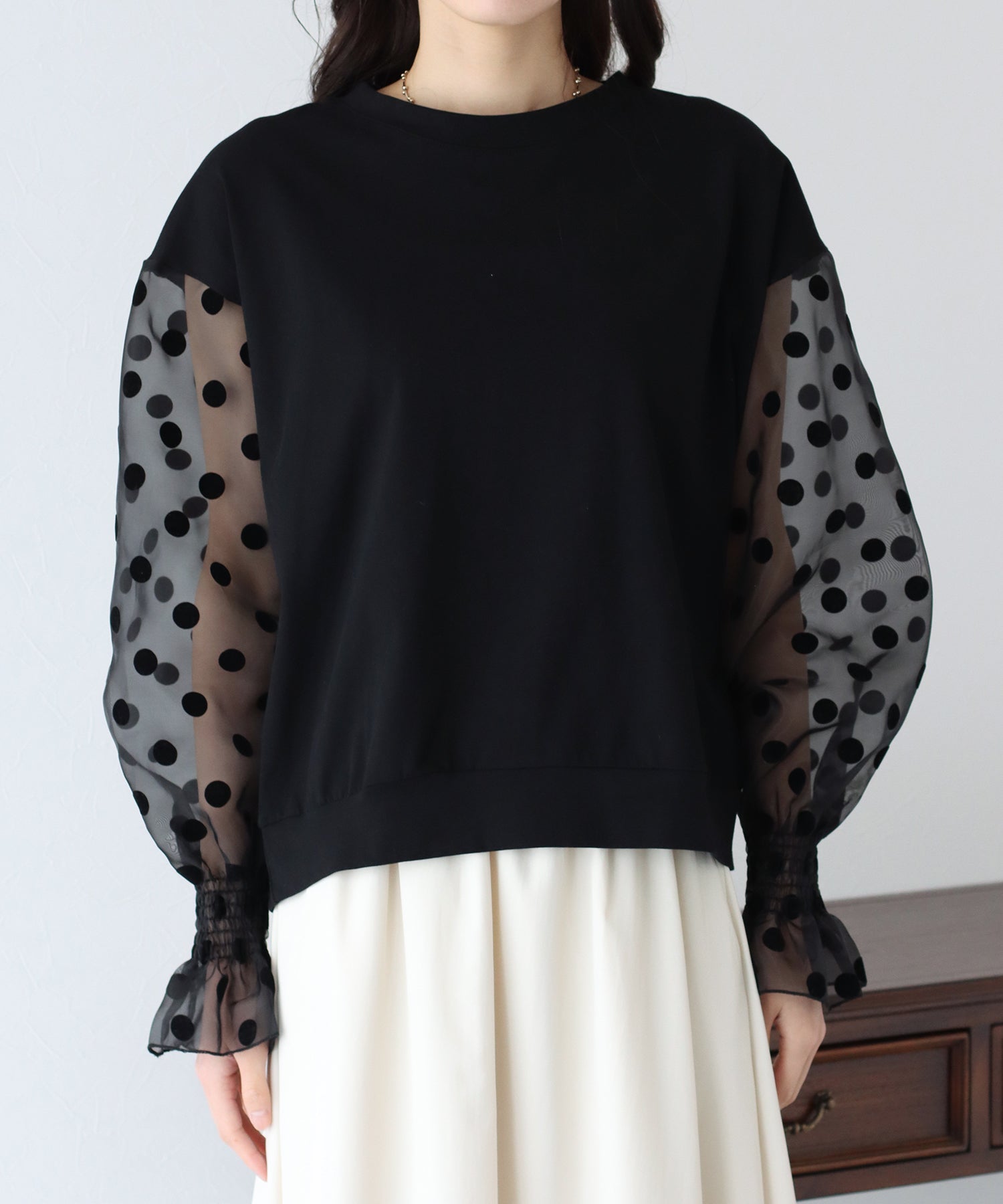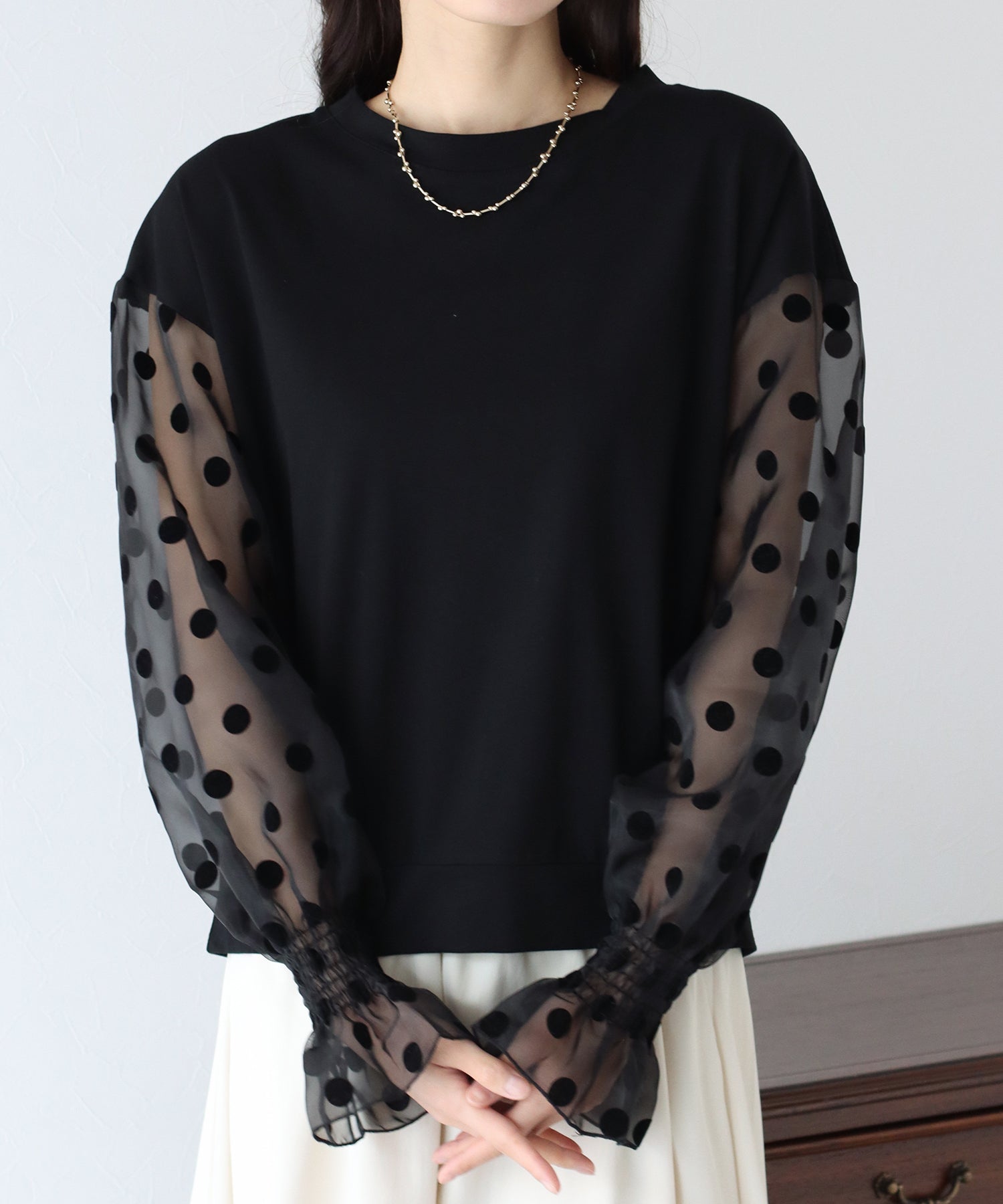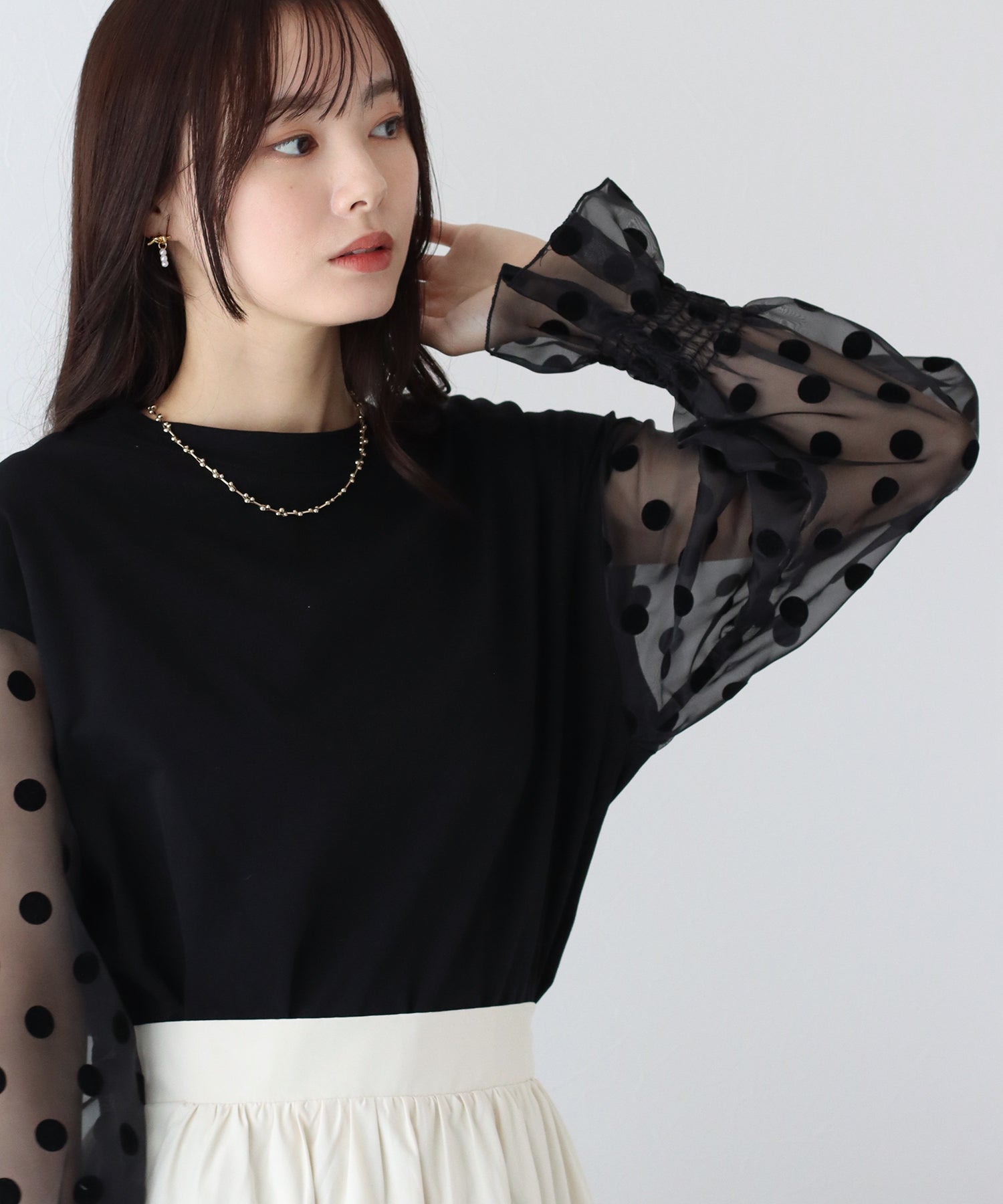 【SALE】袖ドットチュールカットソー【ネコポス】