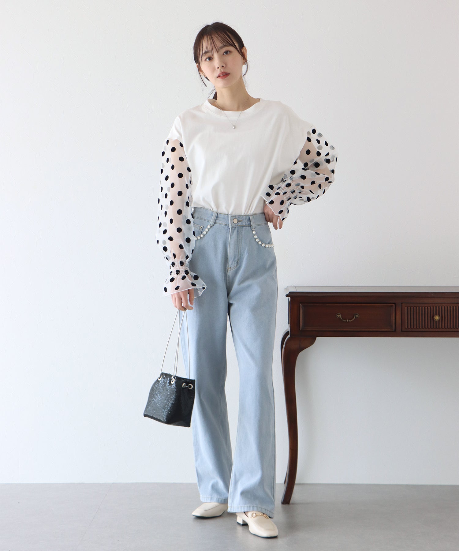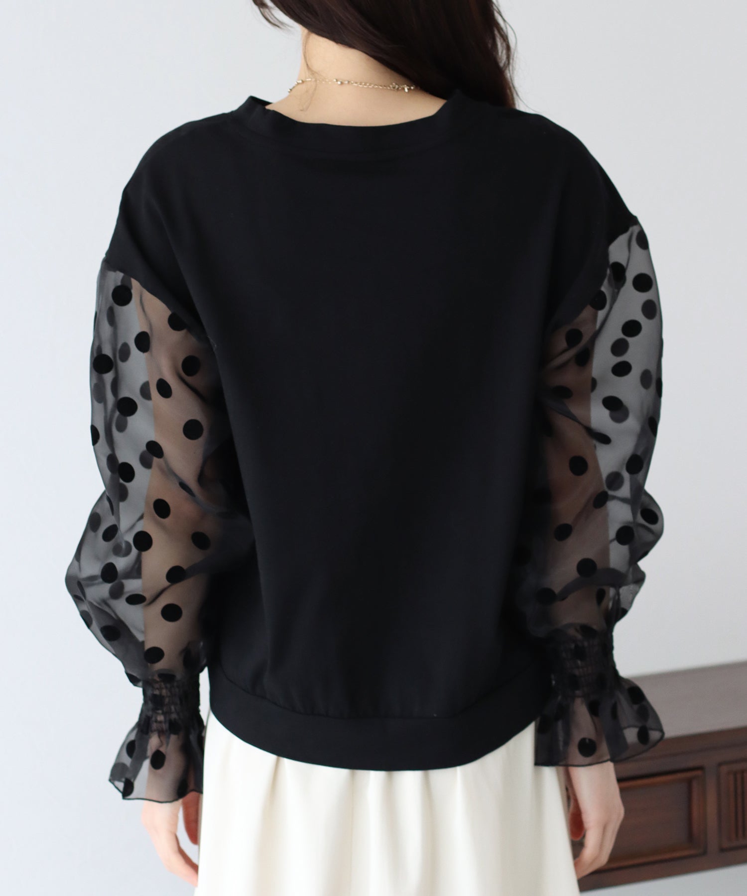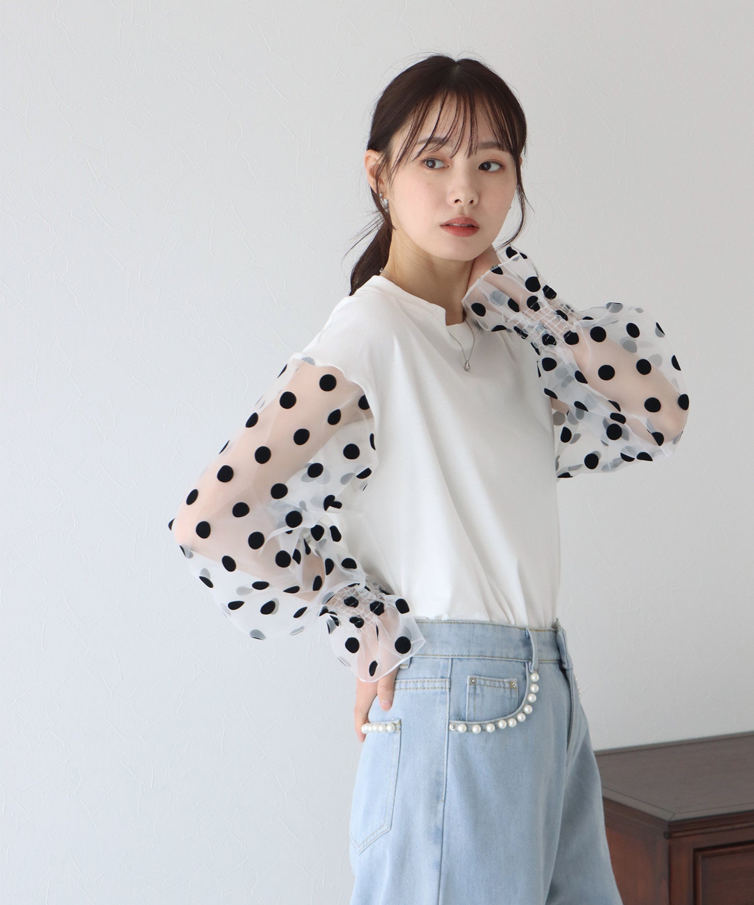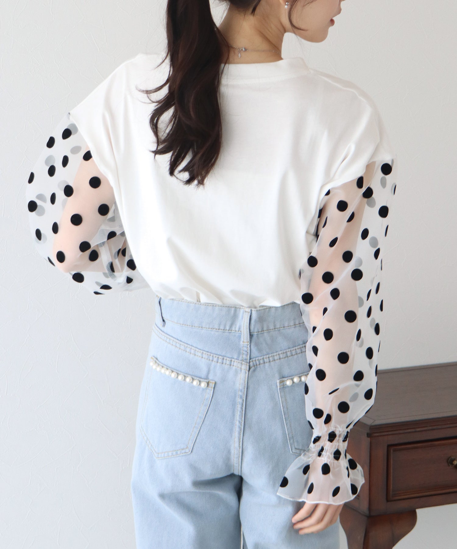 【SALE】袖ドットチュールカットソー【ネコポス】