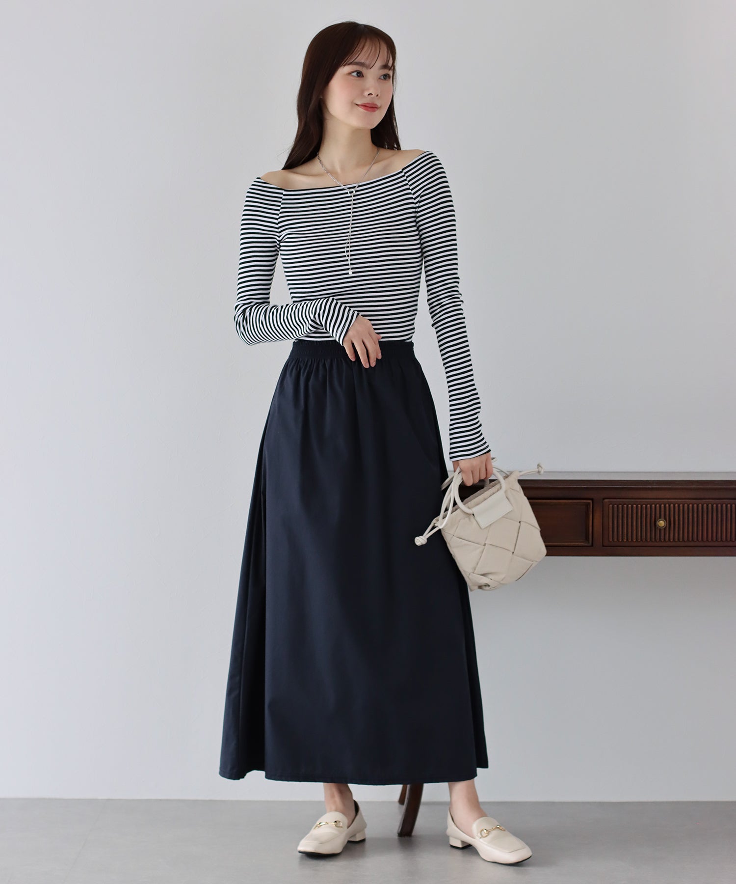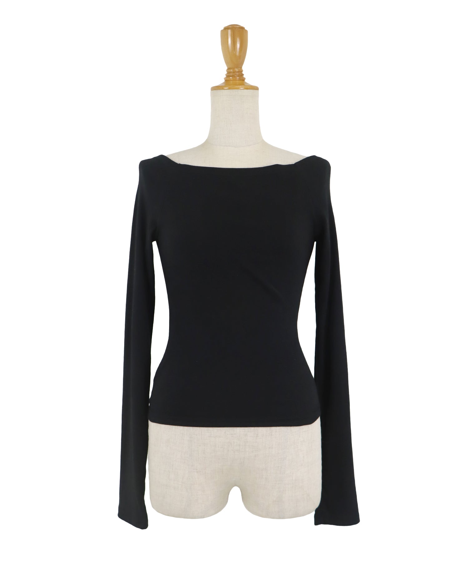 スッキリと開いたネックは、デコルテから肩のラインまで綺麗に魅せ女性らしい印象に演出してくれます。