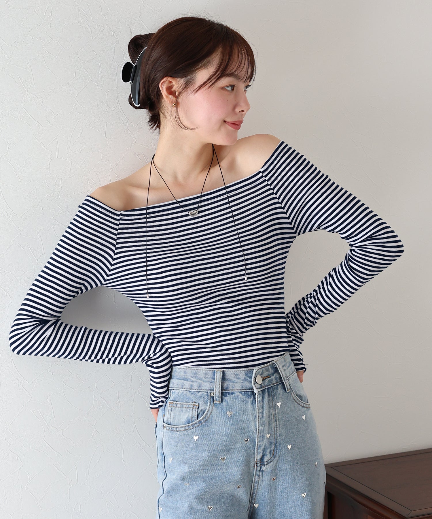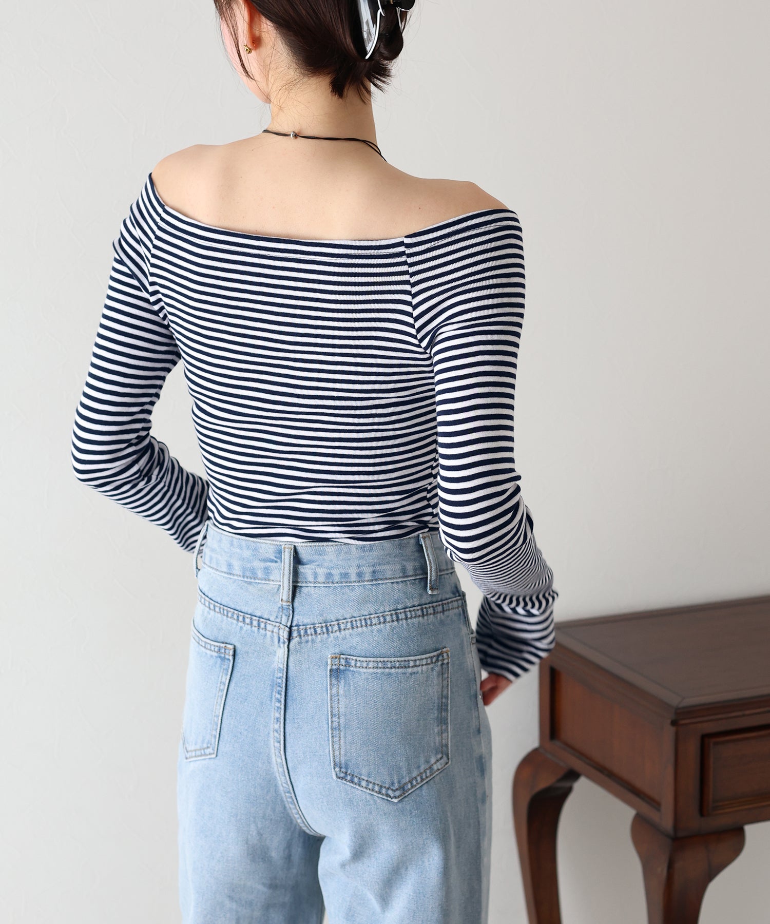 半袖タイプ:半袖オフショルボーダーTシャツこちら