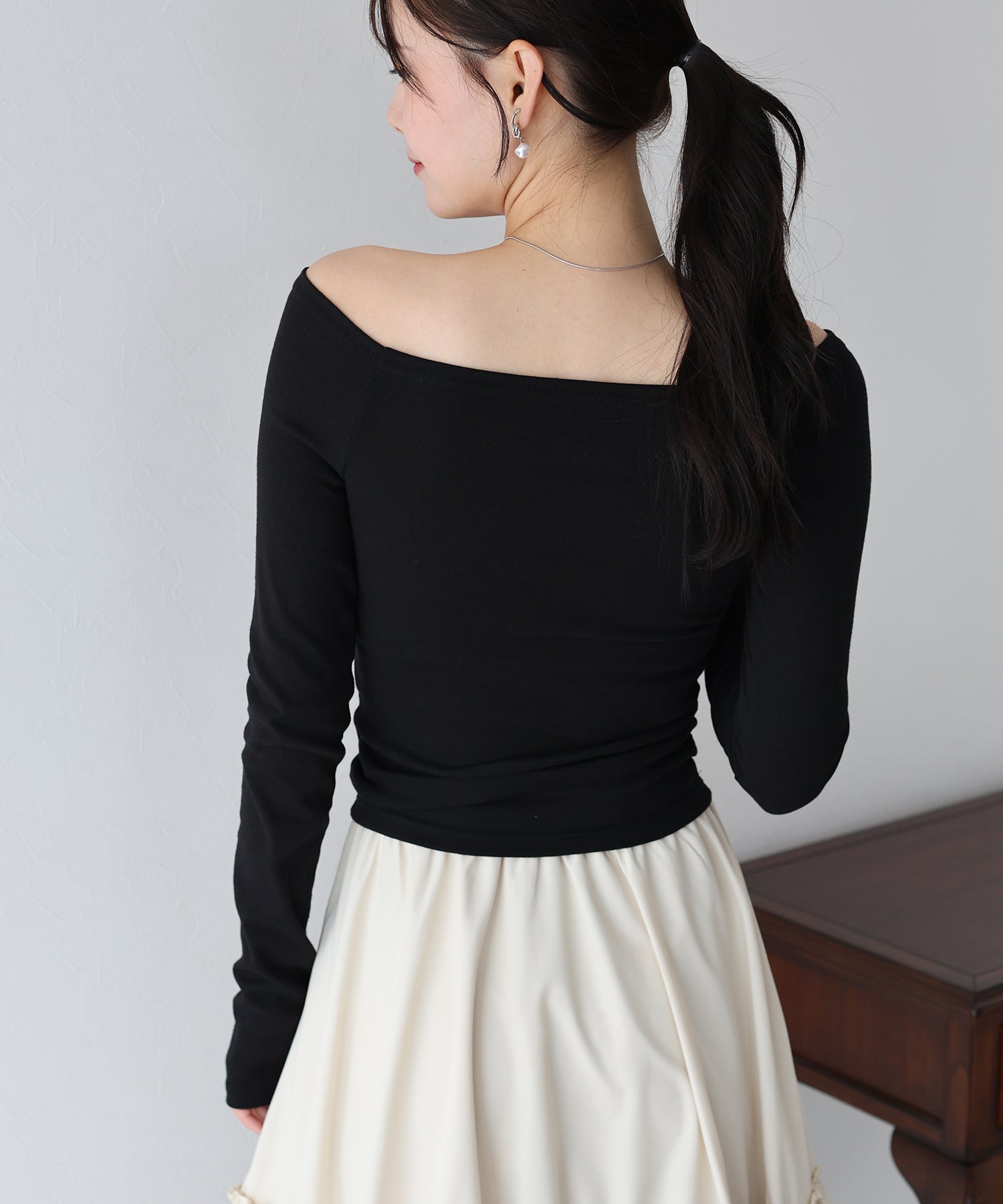 ワンオフショルダーギャザーリボンTシャツ[ J by blue ]【ネコポス】