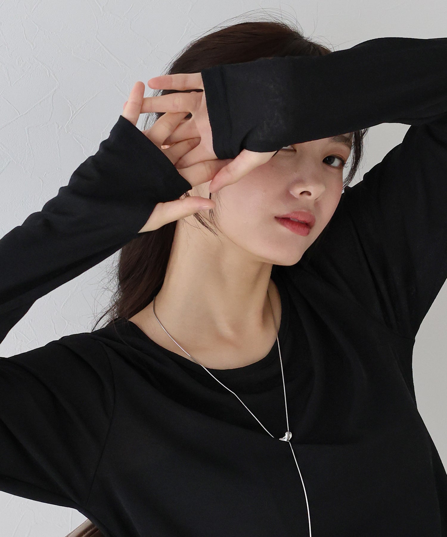 袖口にはフィンガーホールが付いており、シンプルなデザインながらちょっとしたアクセントをプラス。