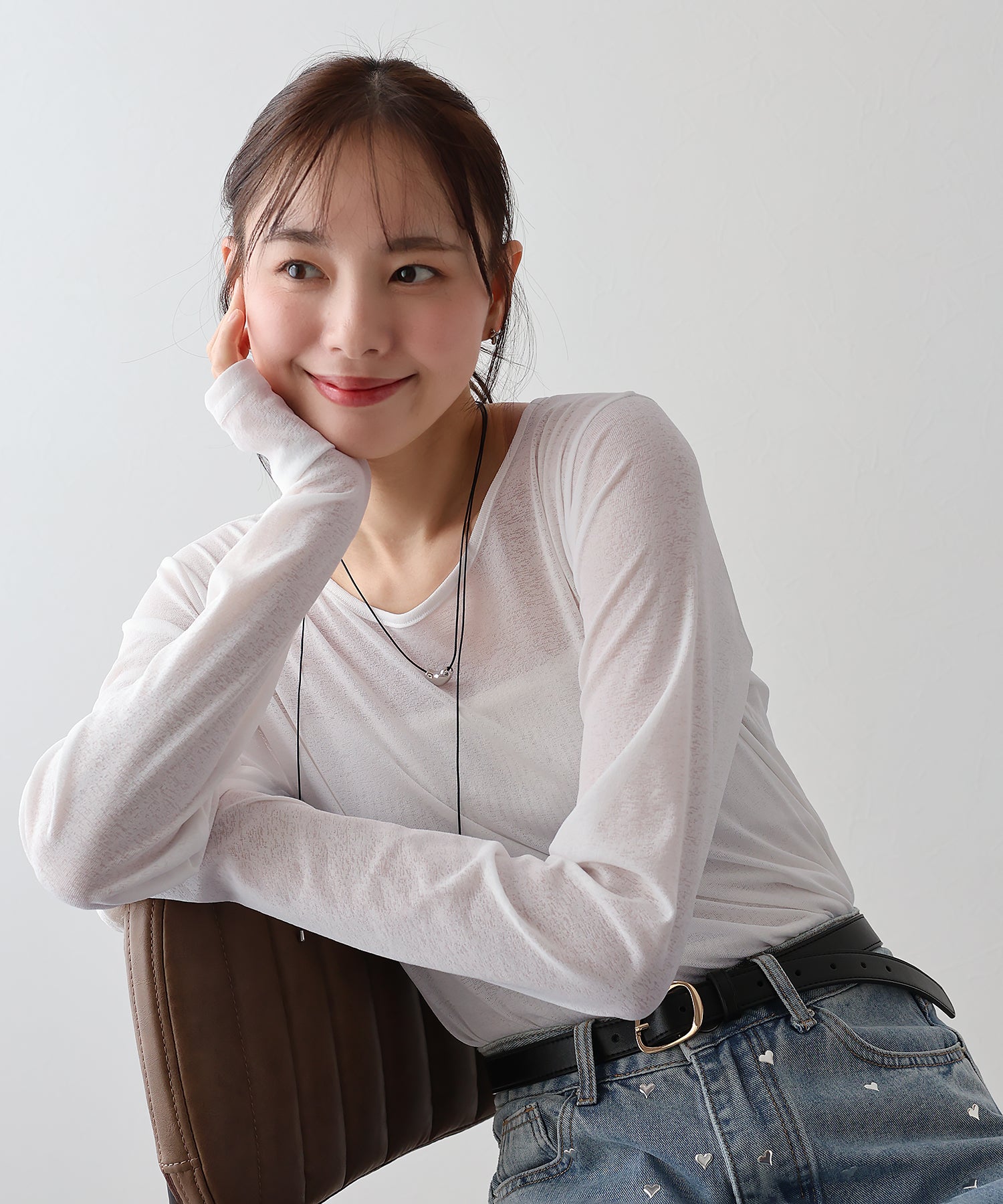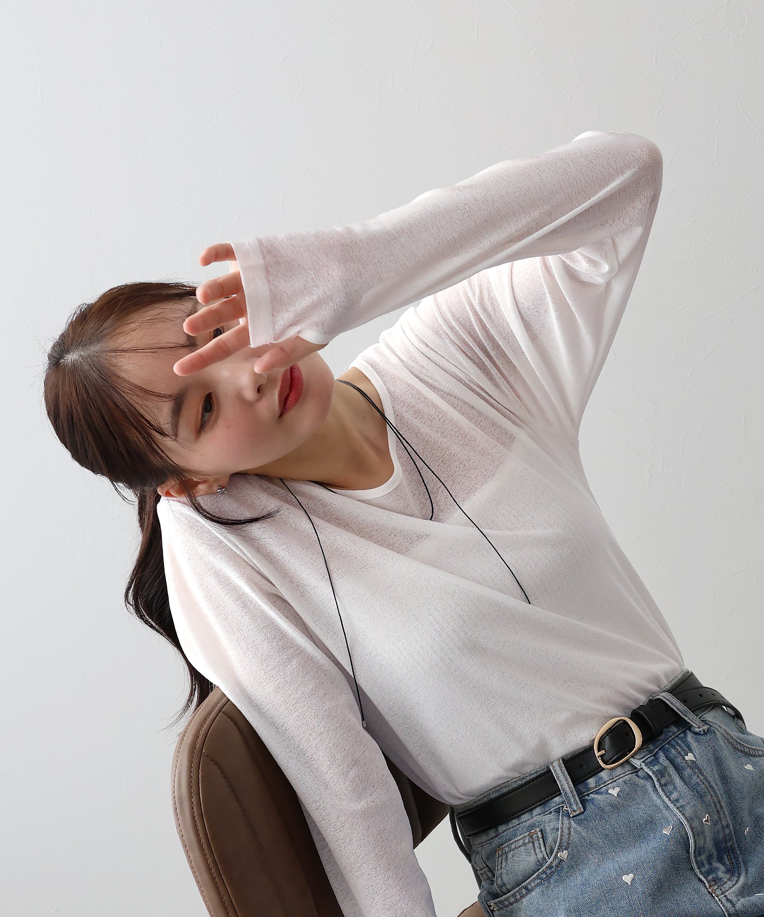 今年らしいゆるっとしたルーズ感のあるシルエットと透け感が魅力のシアーロングスリーブTシャツ。