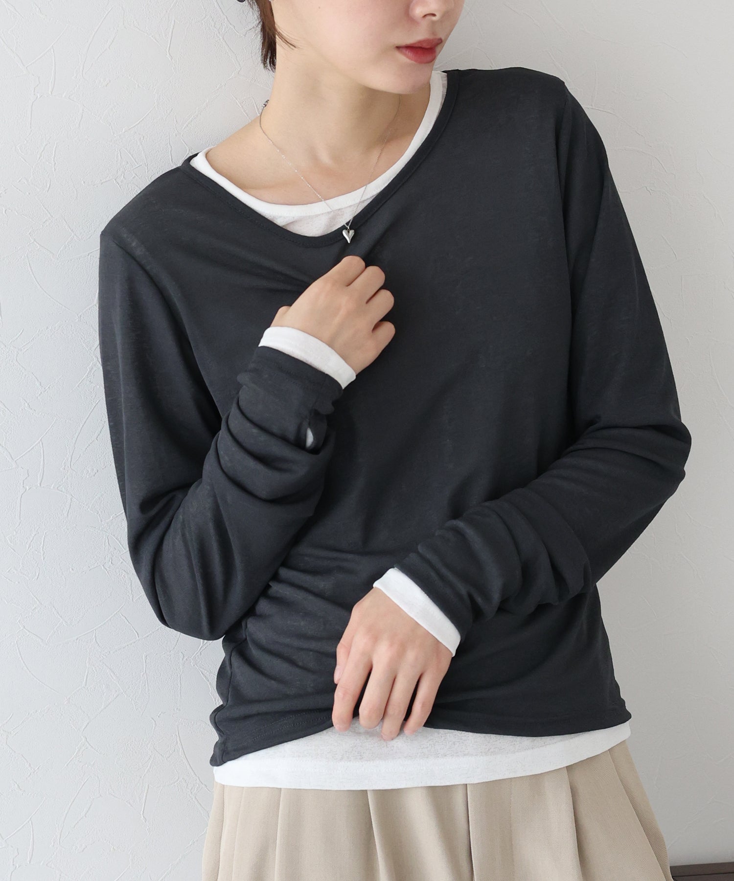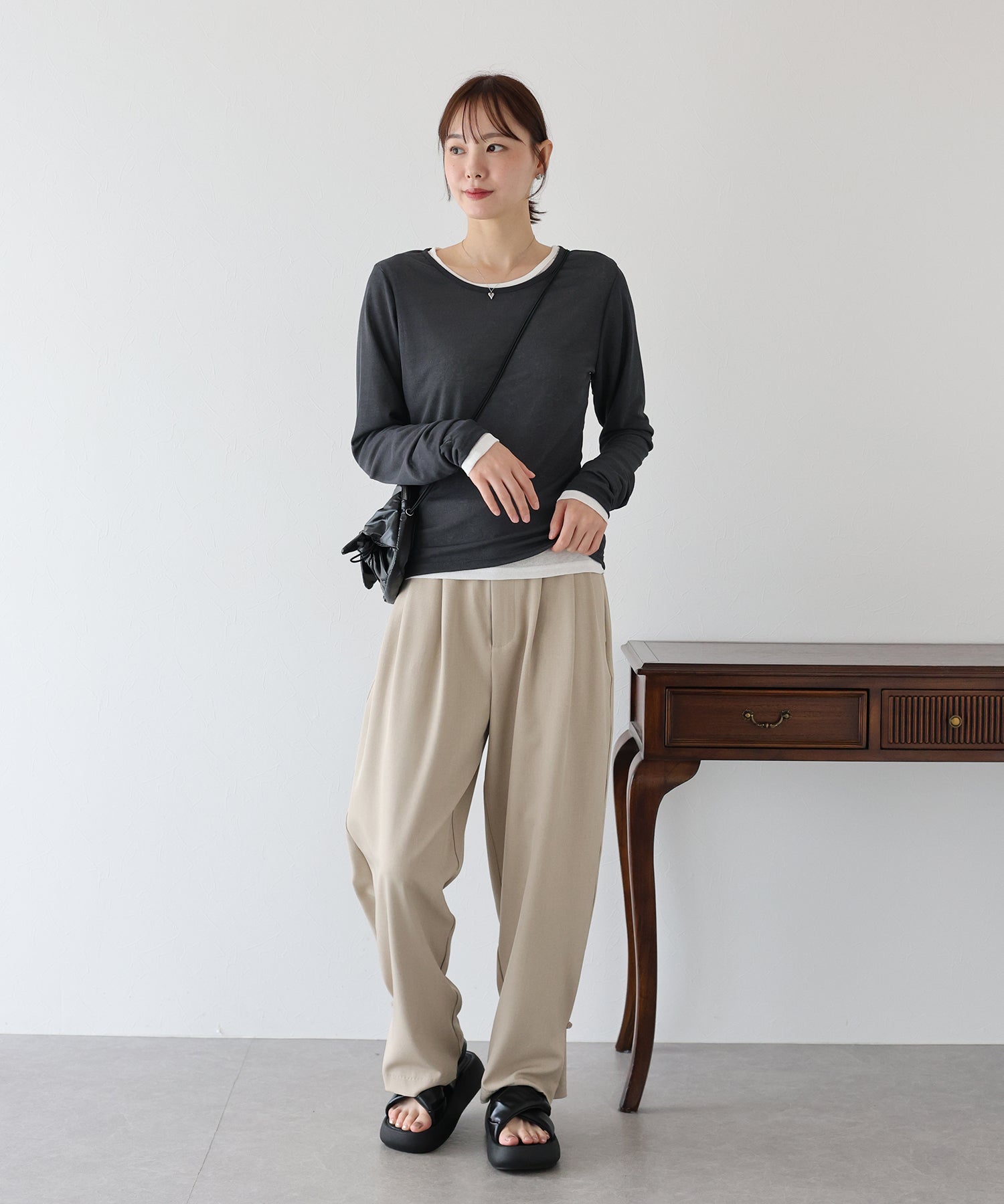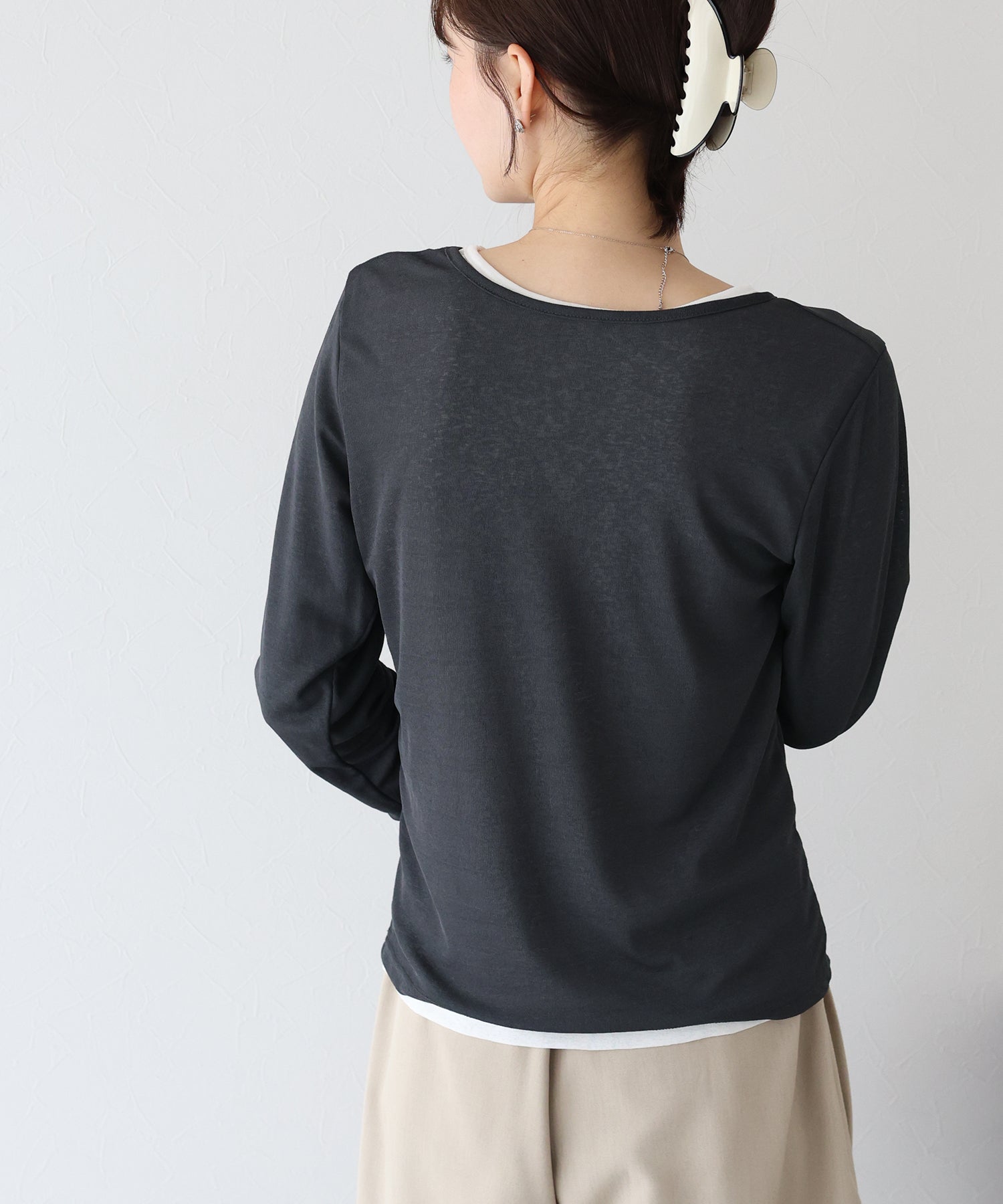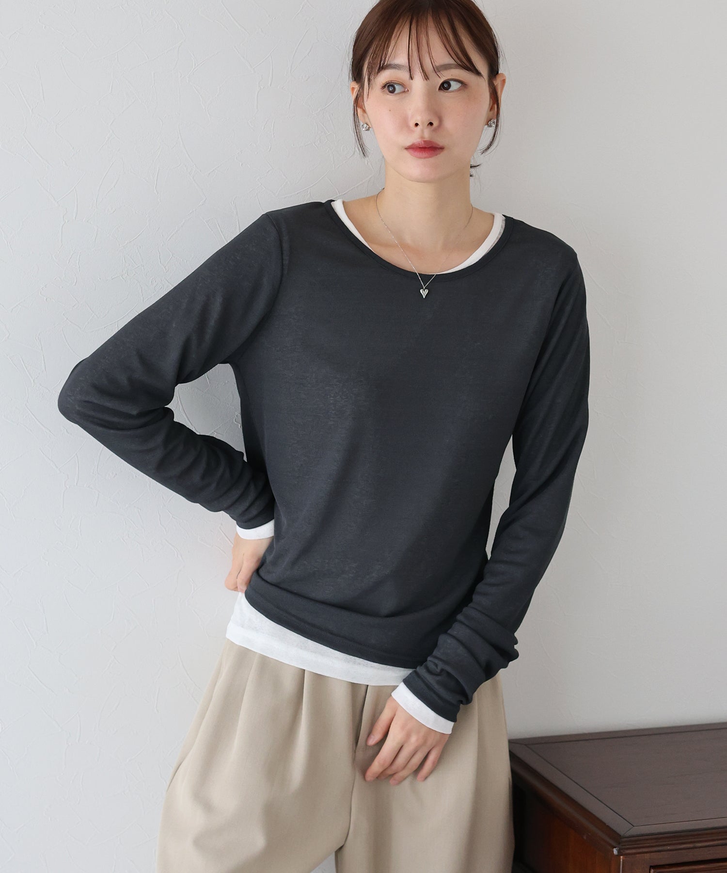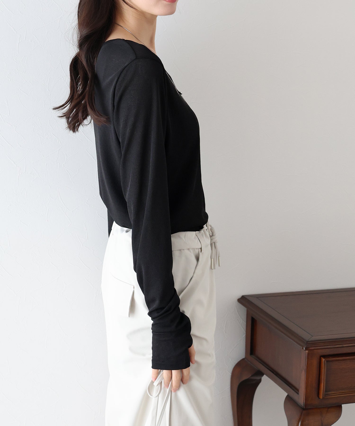 程よくゆとりのあるシルエットで、キャミとレイヤードして1枚着はもちろん、インナー使いなど色々な着こなしをお楽しみいただけます。