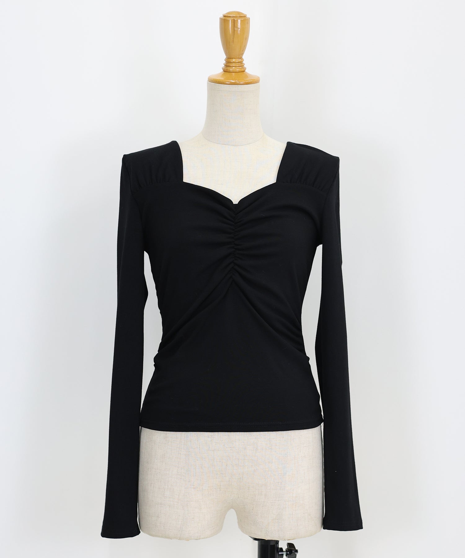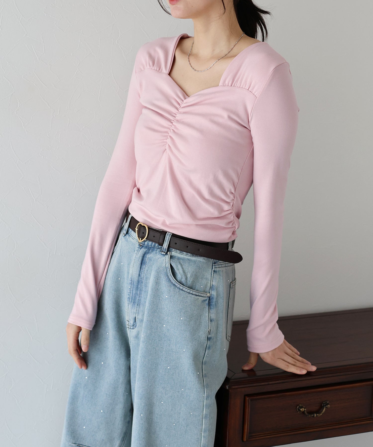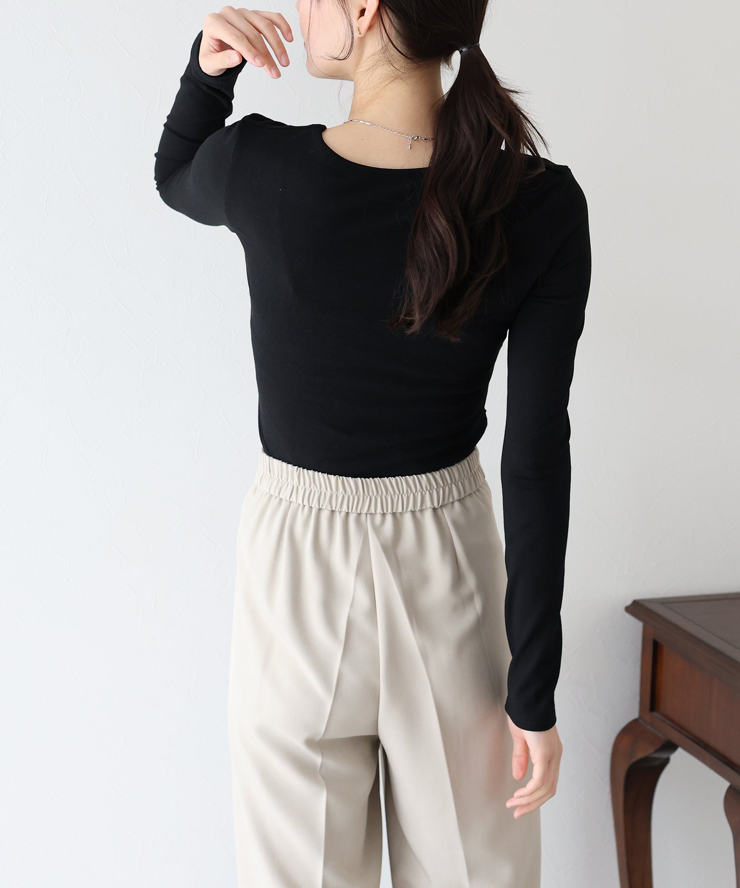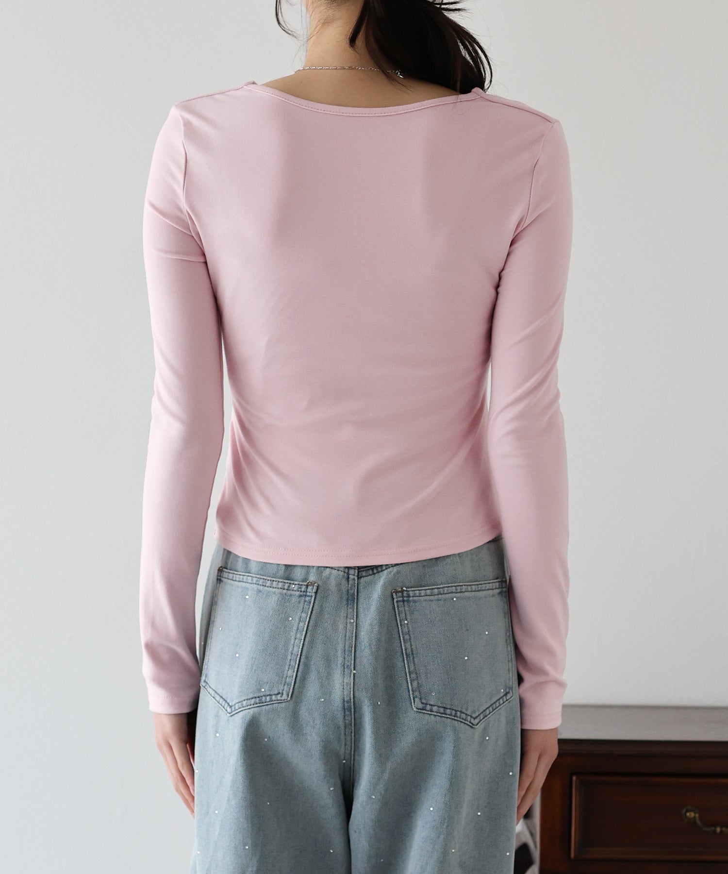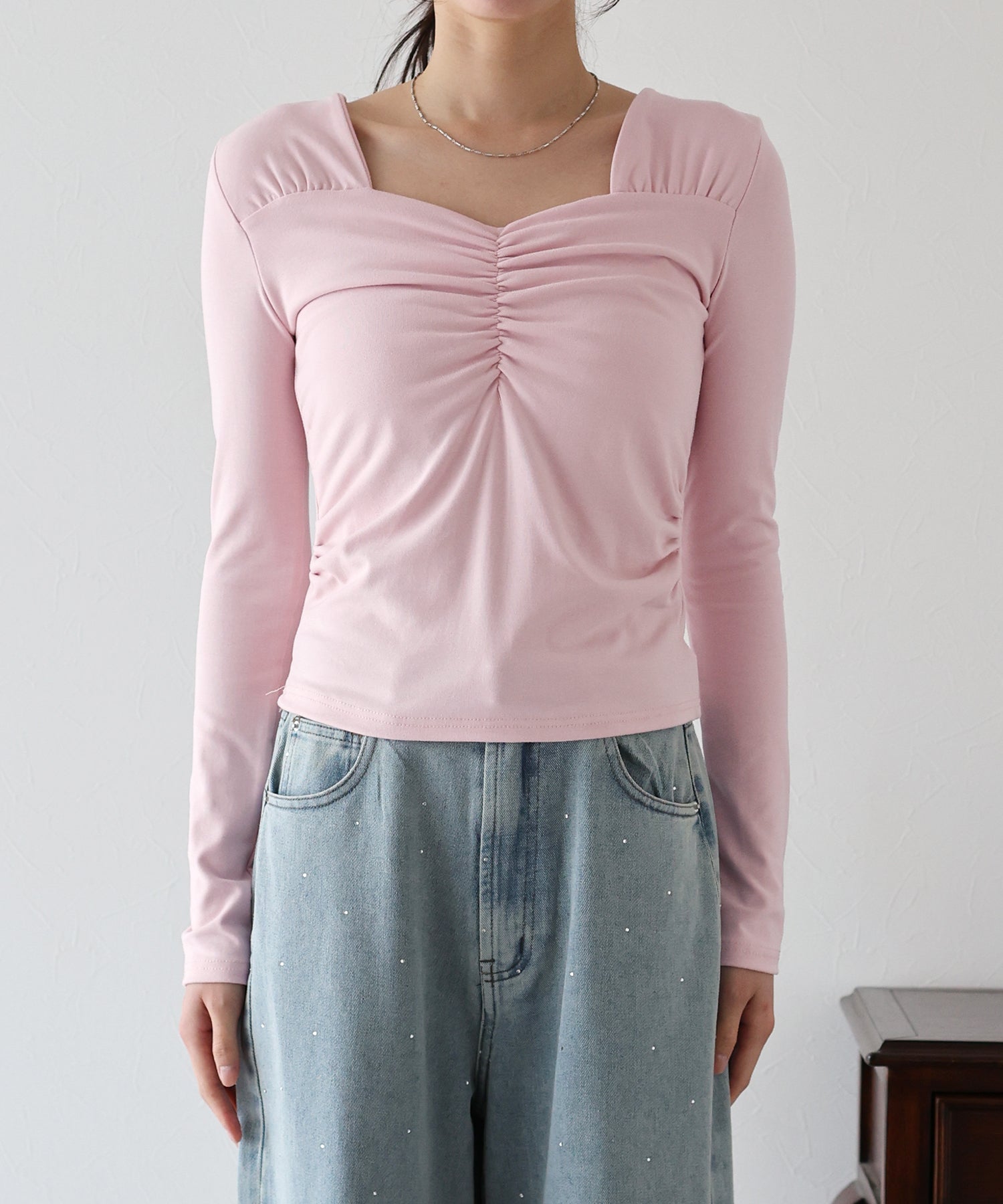 デコルテを美しく引き立てるハートネックが目を惹くカットソー。