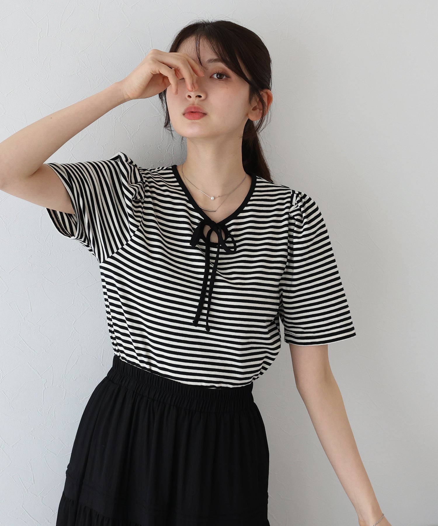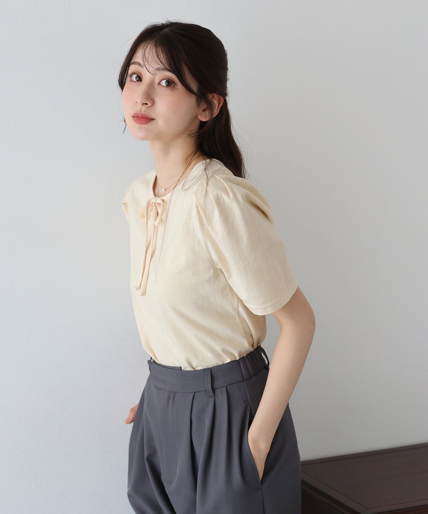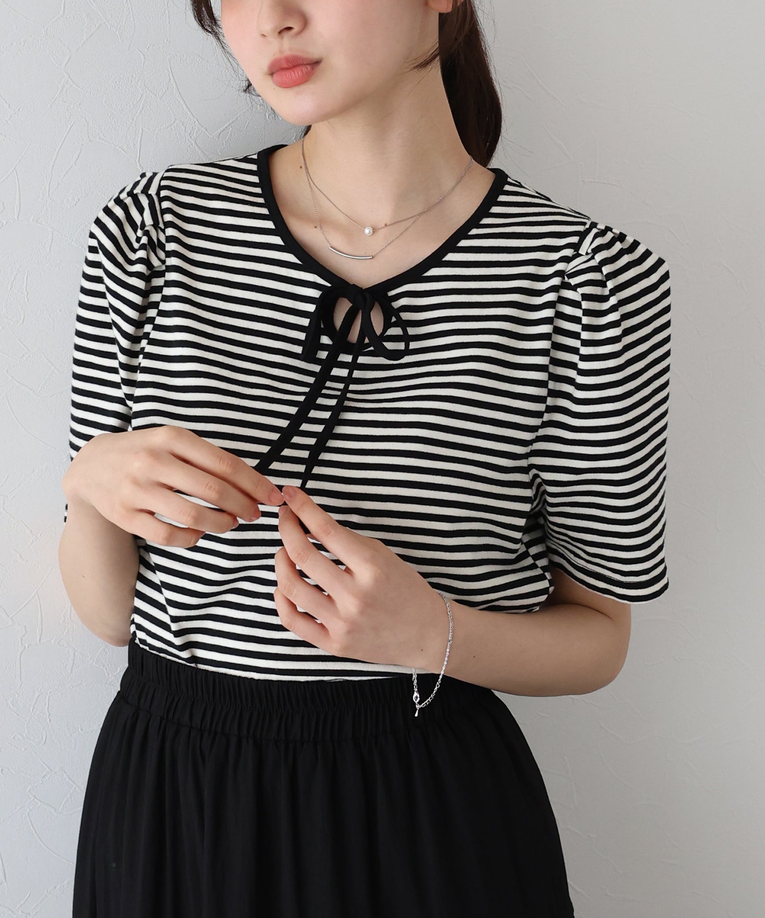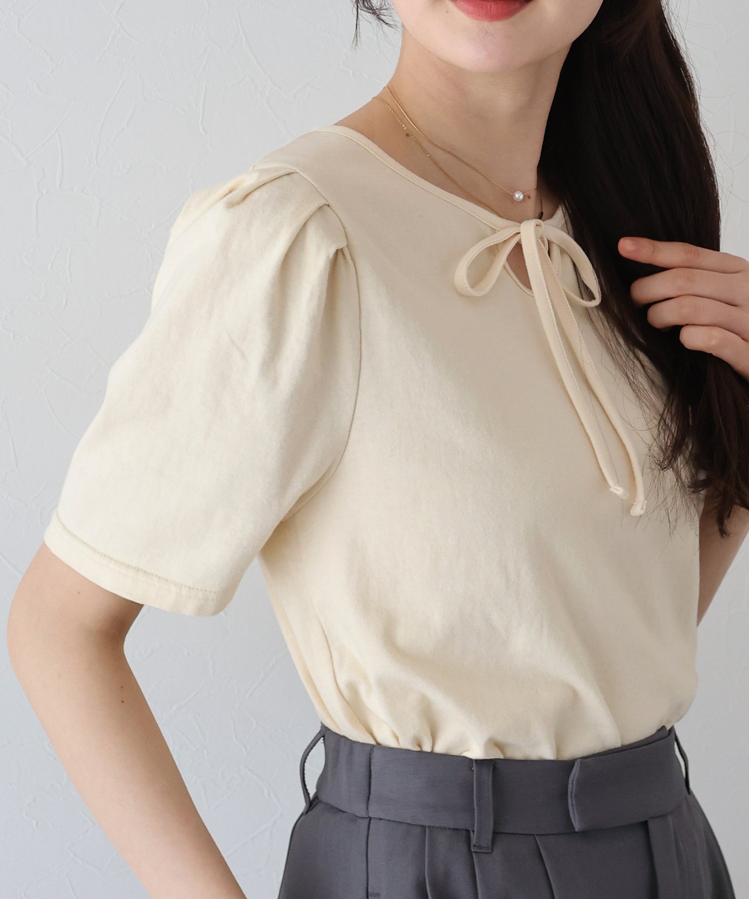 フェミニンなポイントが目を惹くリボン付きカットソー