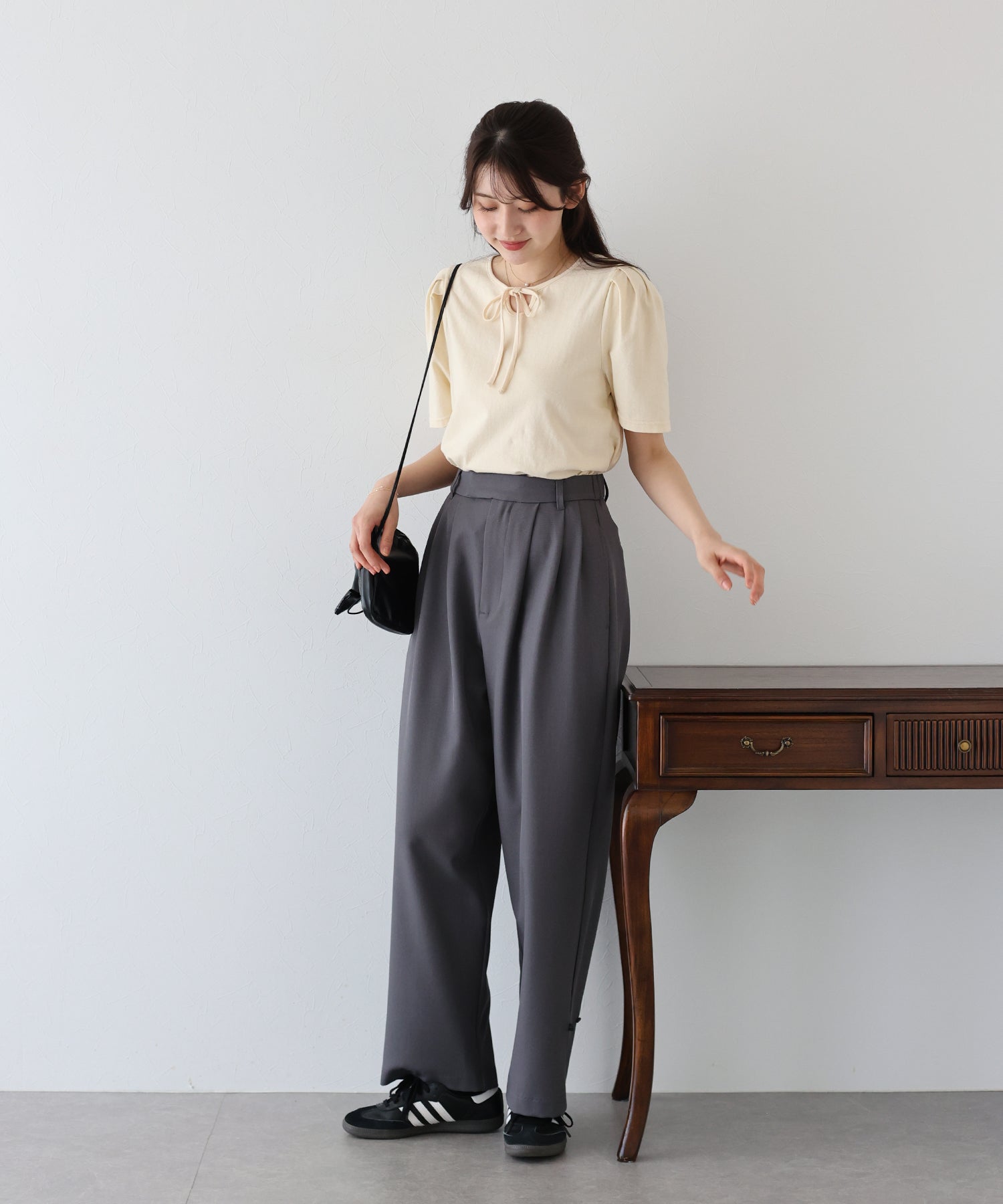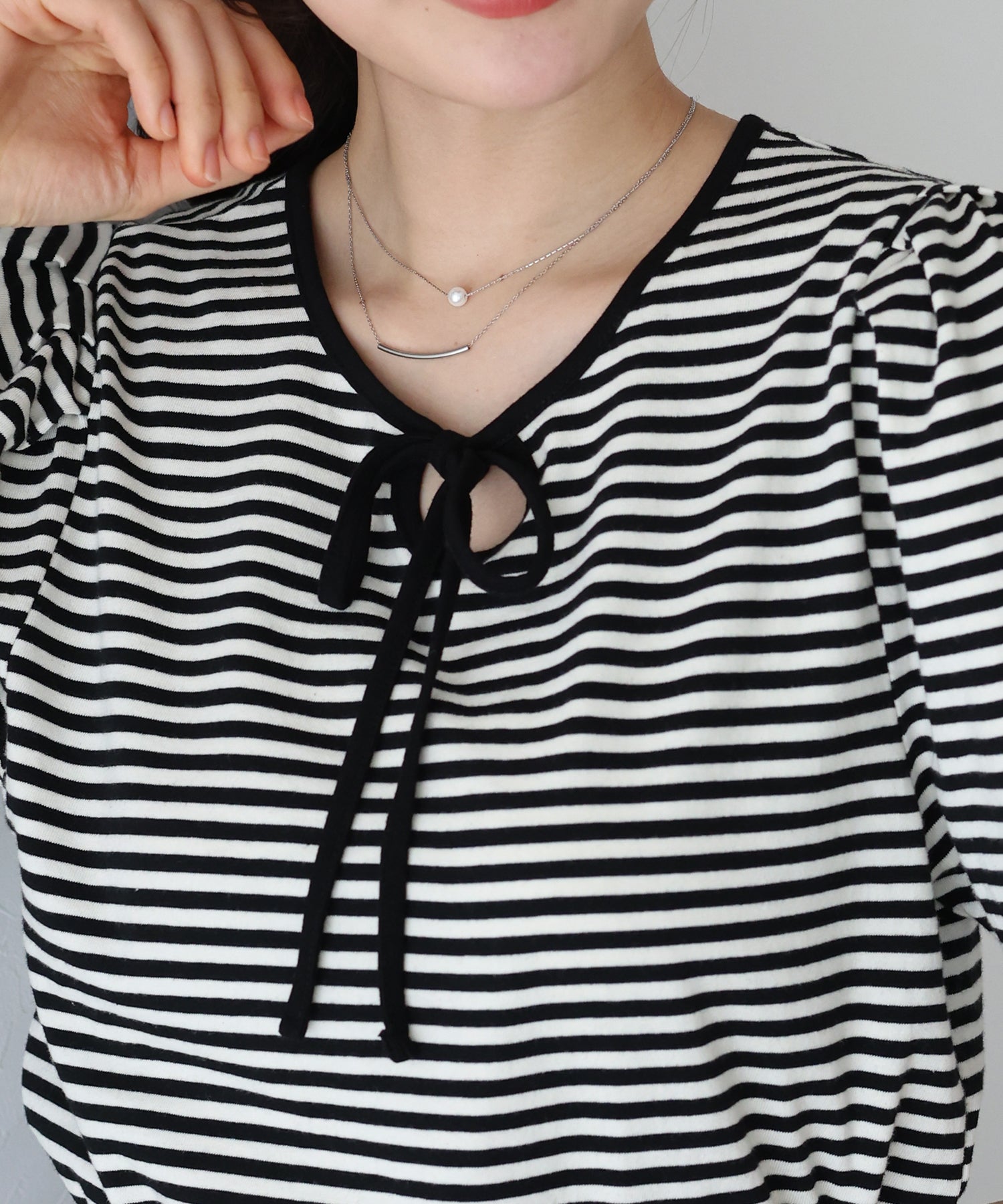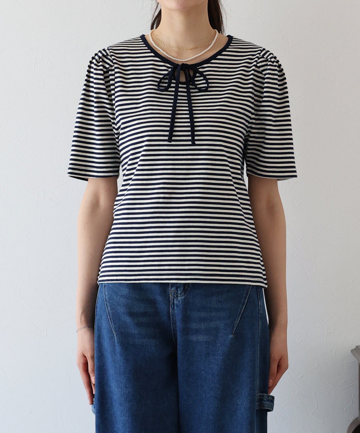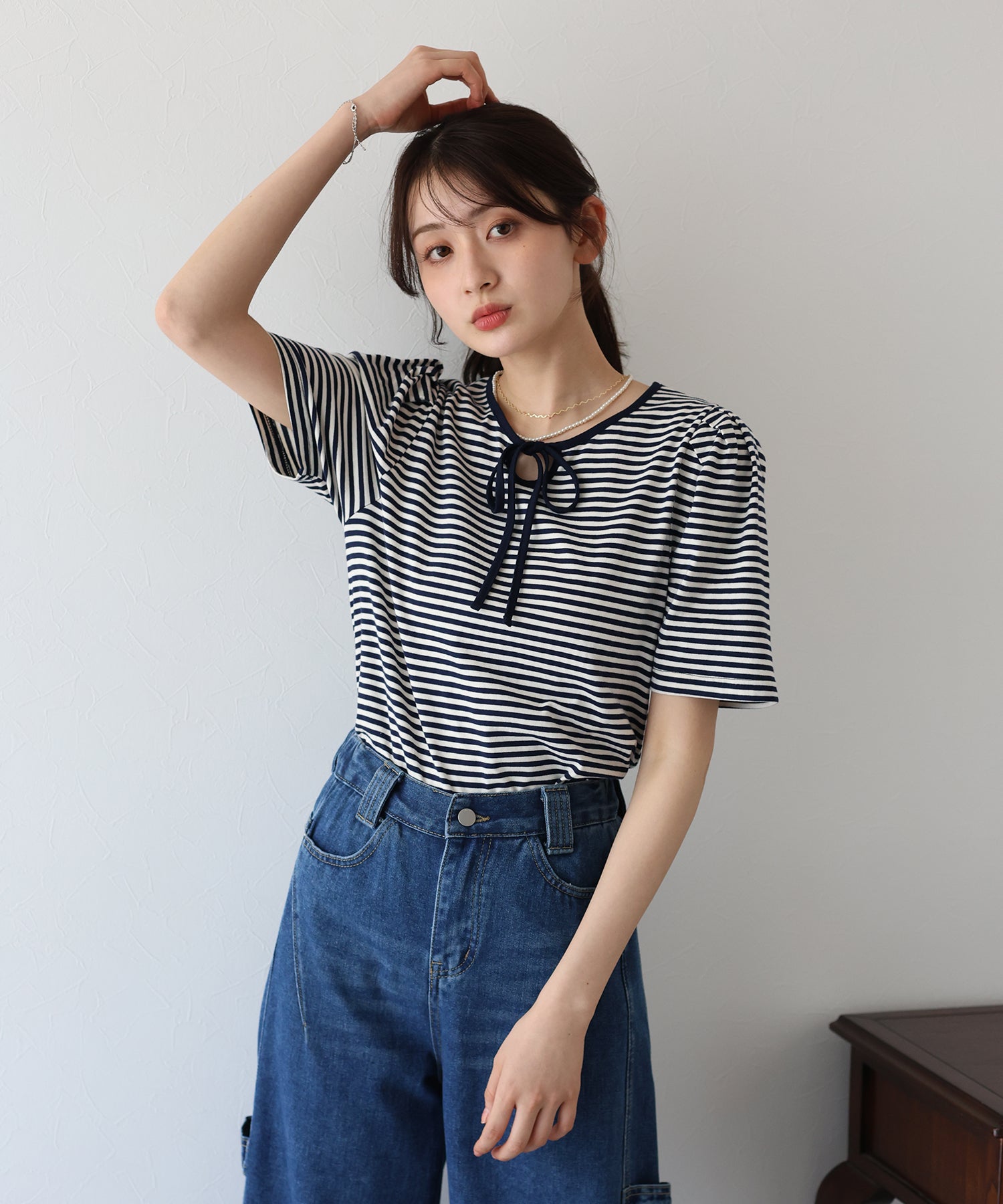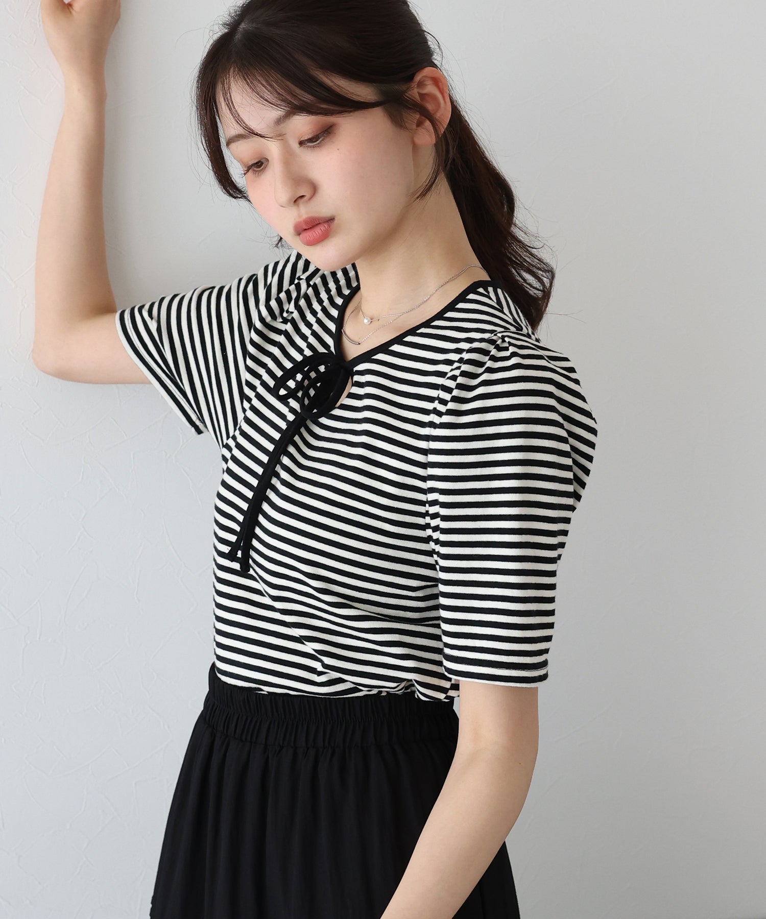 フェミニンなポイントが目を惹くリボン付きカットソー