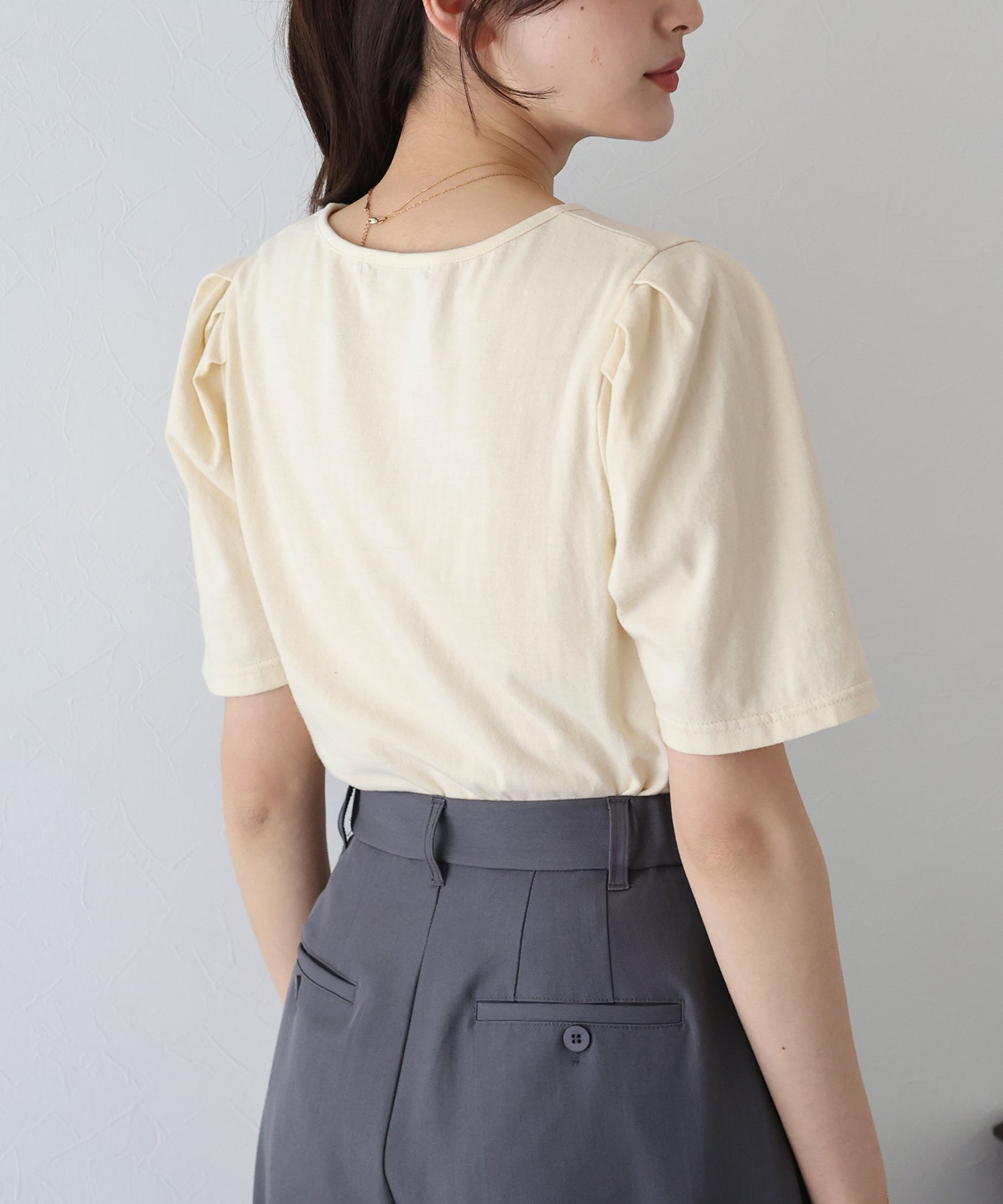 肩にタックデザインが入ったシルエットが、さりげなくコーデにワンポイントプラスしてくれます。