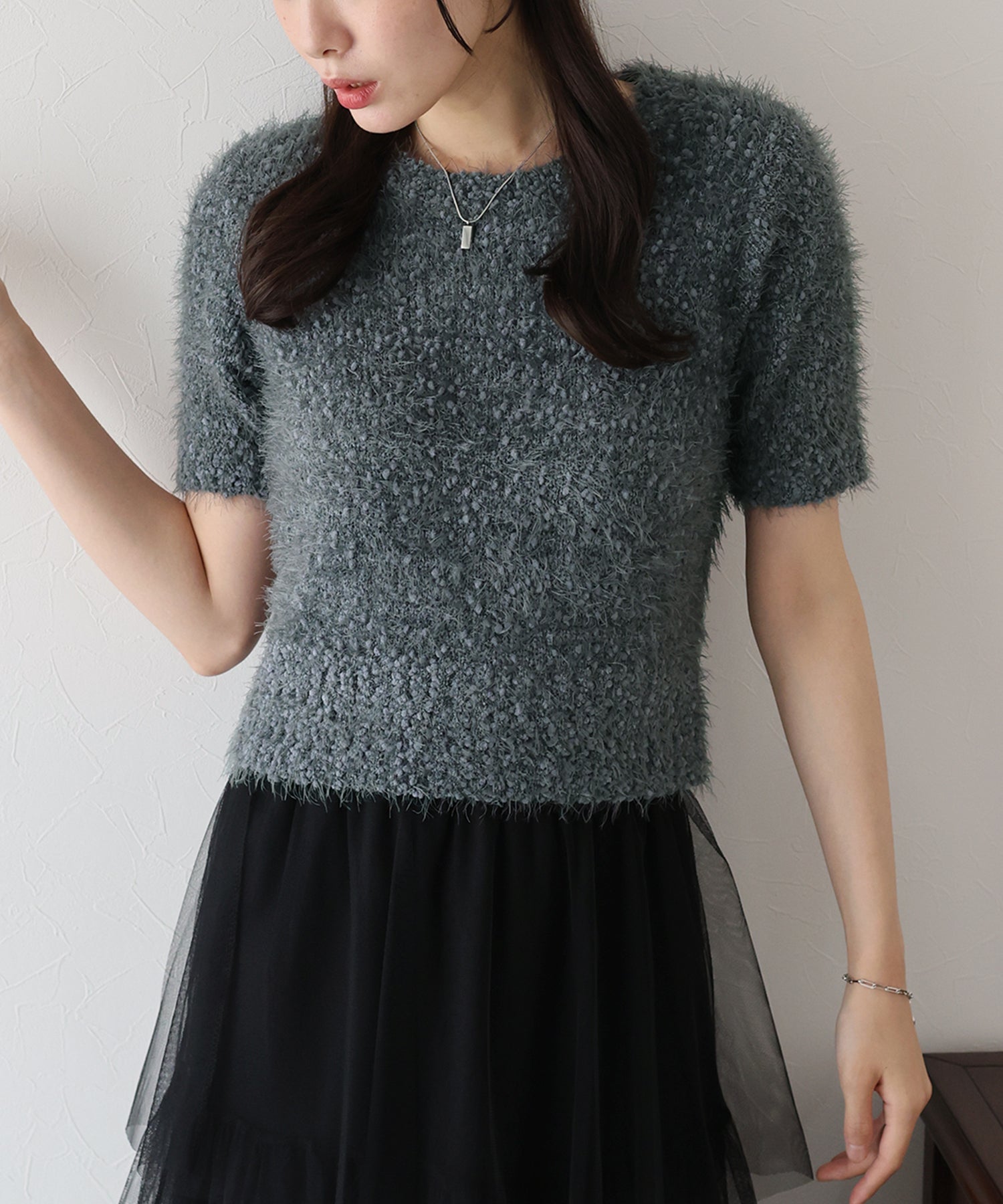 【TIME SALE】ぽこぽこシャギー半袖ニット