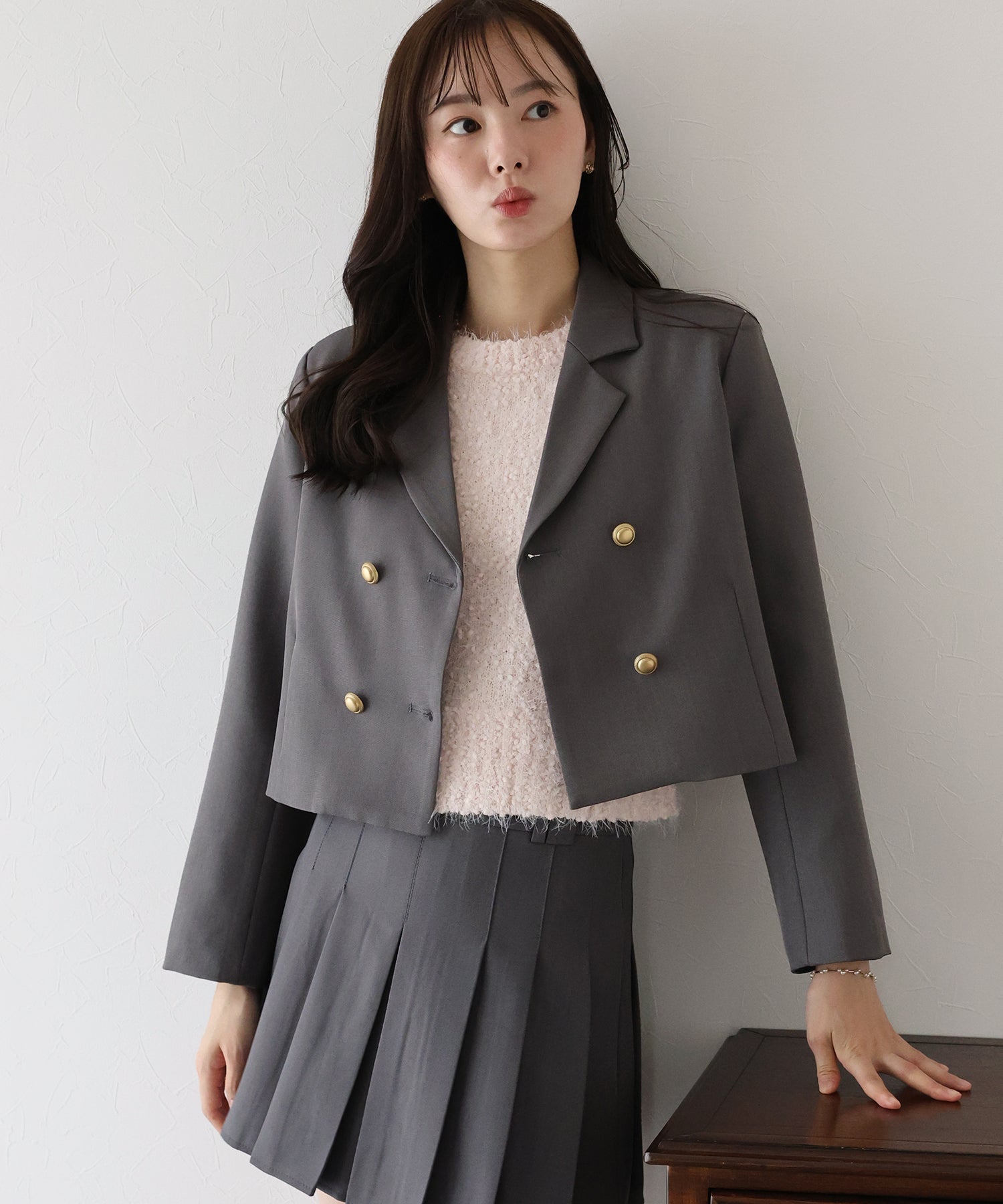 TIME SALE【TIME SALE】金ボタンノーカラーニットジャケット