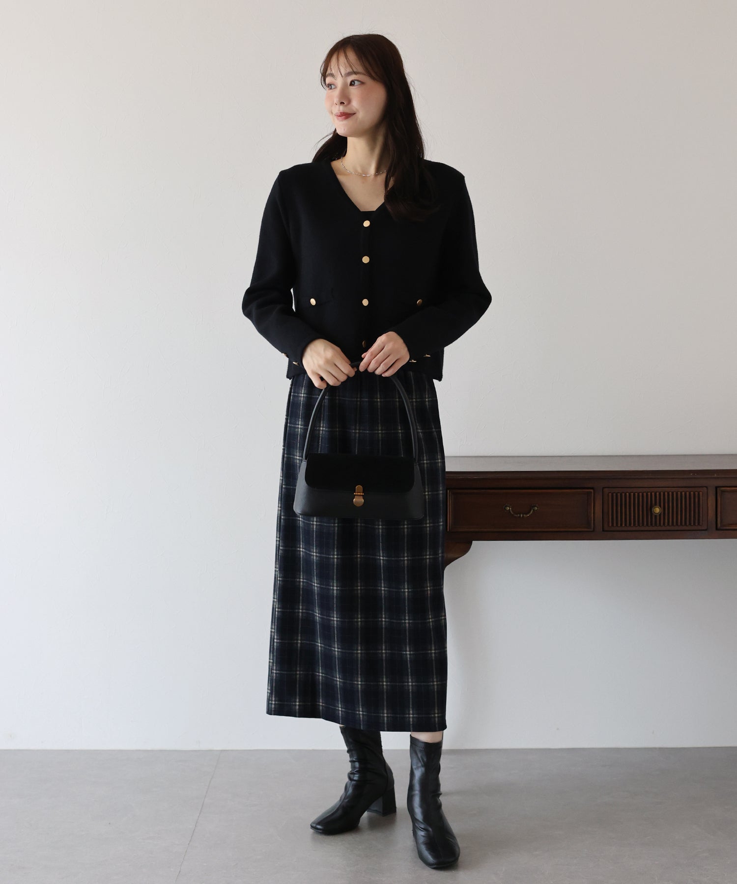 TIME SALE【TIME SALE】選べる2丈・チェックジャガードニットワンピース