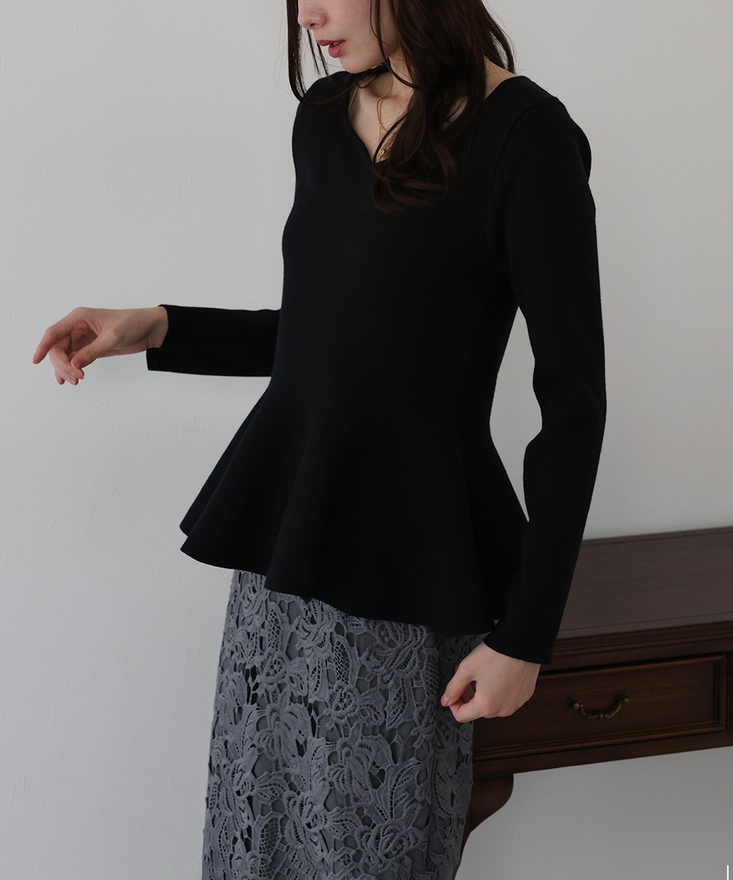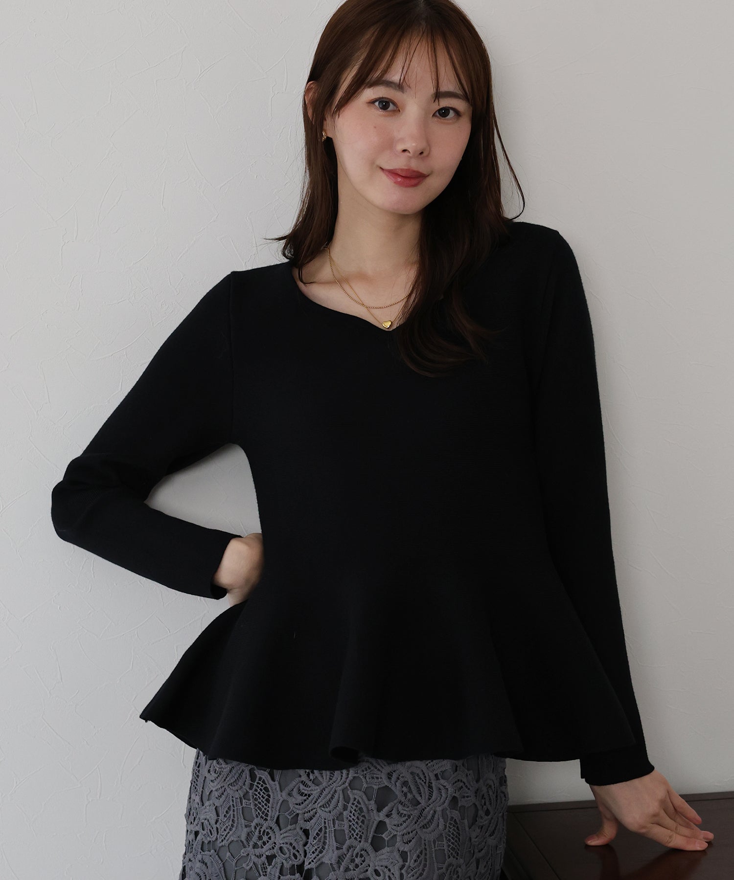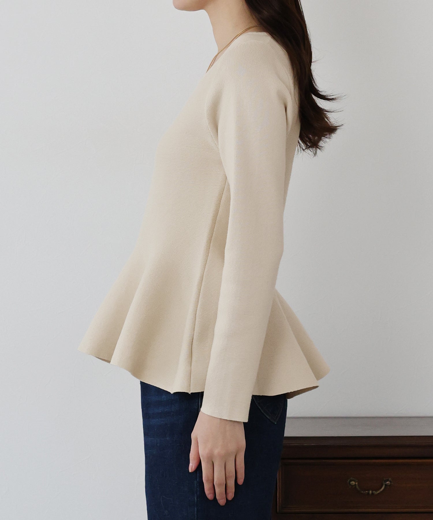 大人フェミニンな魅力が詰まったペプラムニットトップス