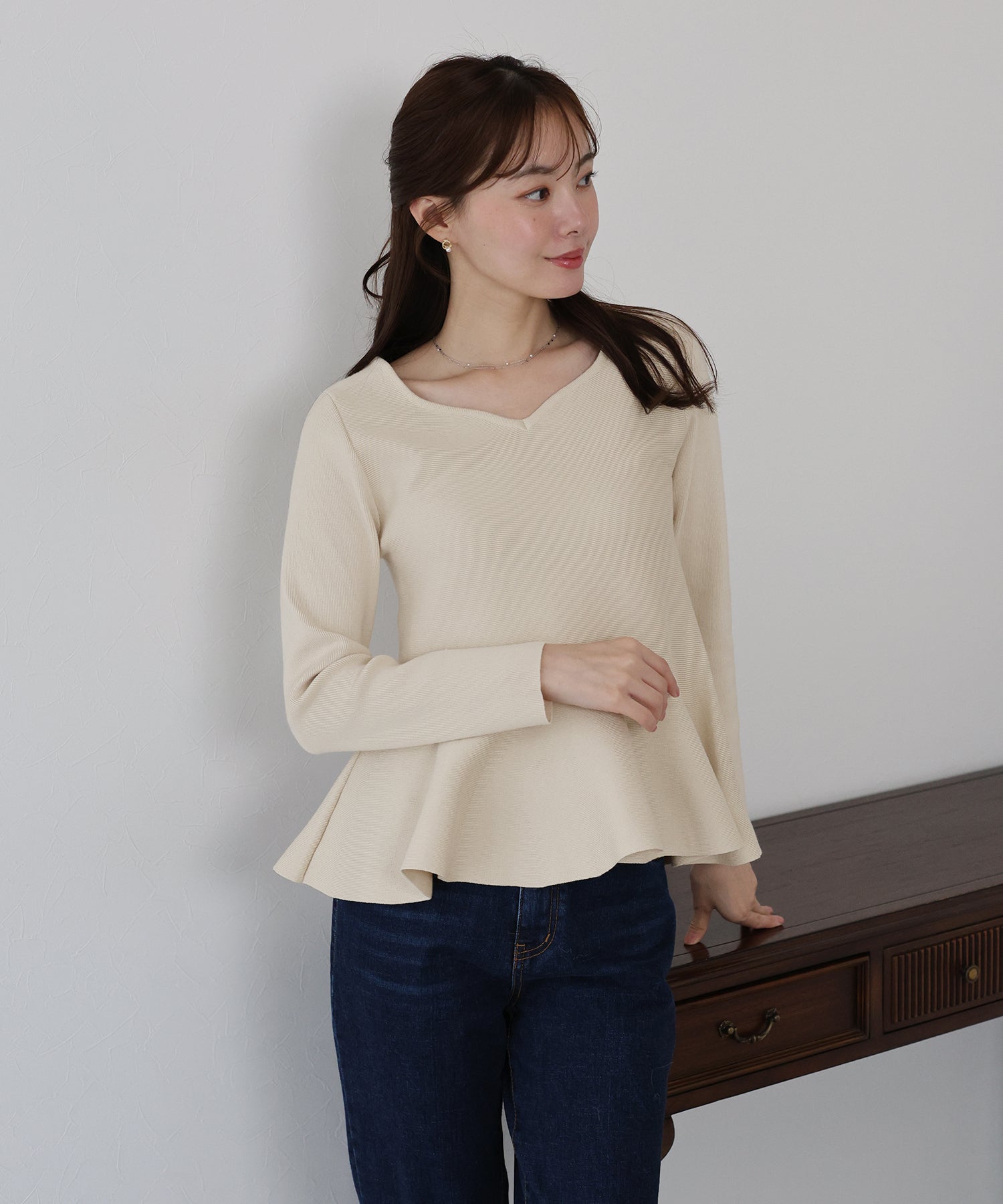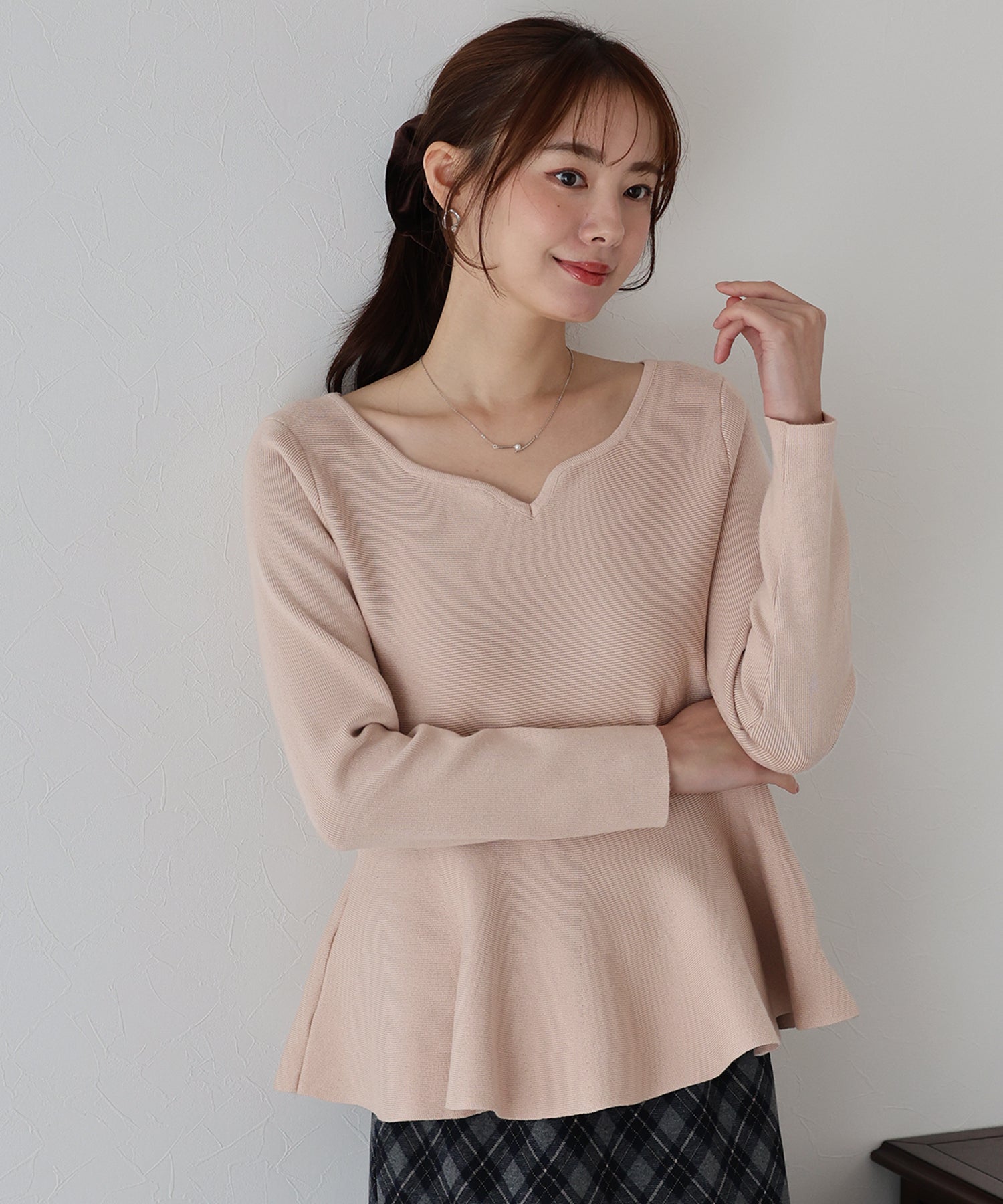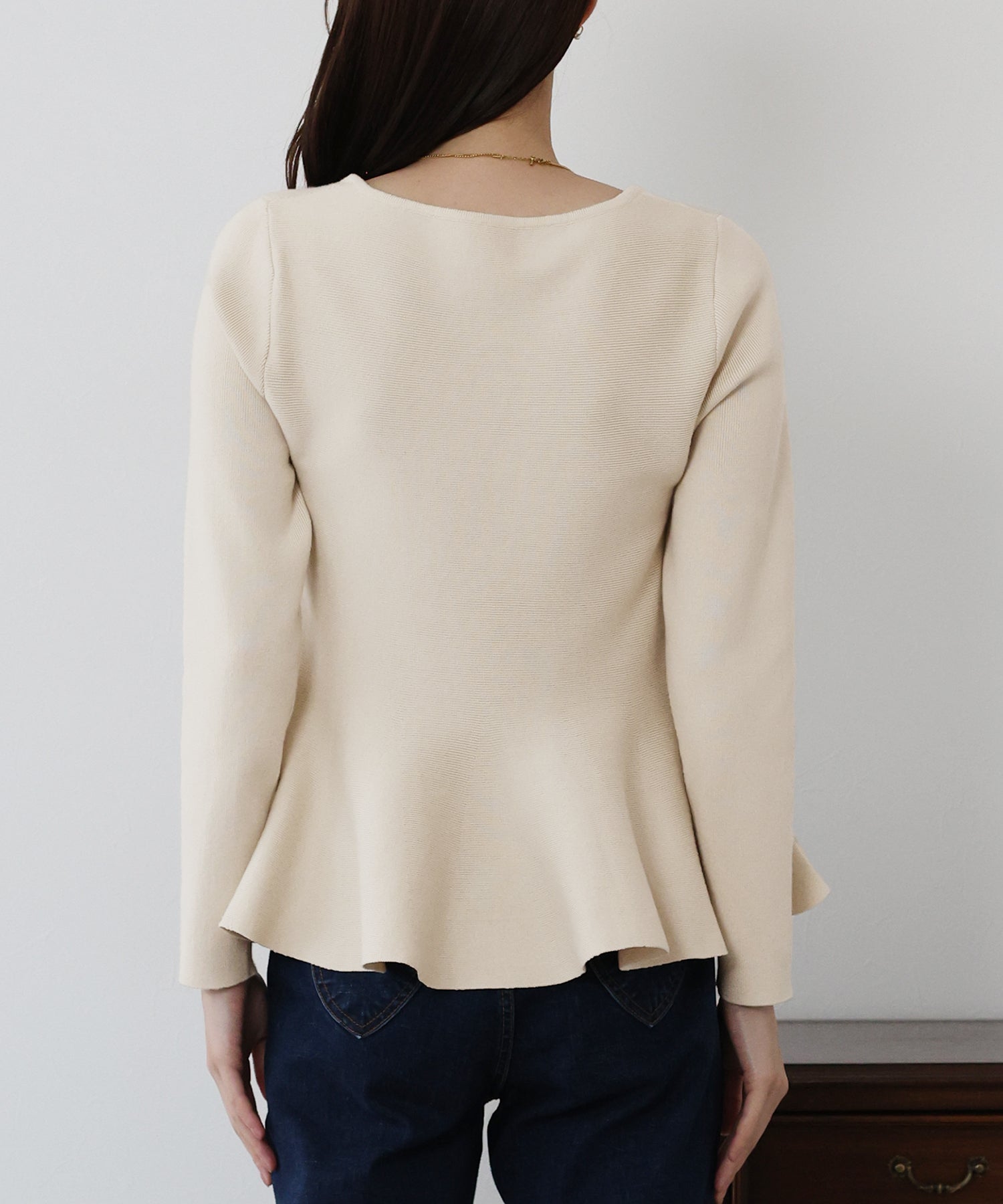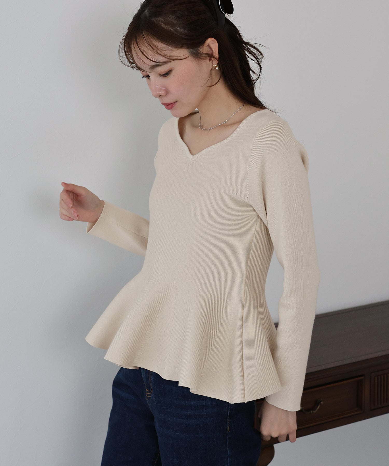 大人フェミニンな魅力が詰まったペプラムニットトップス