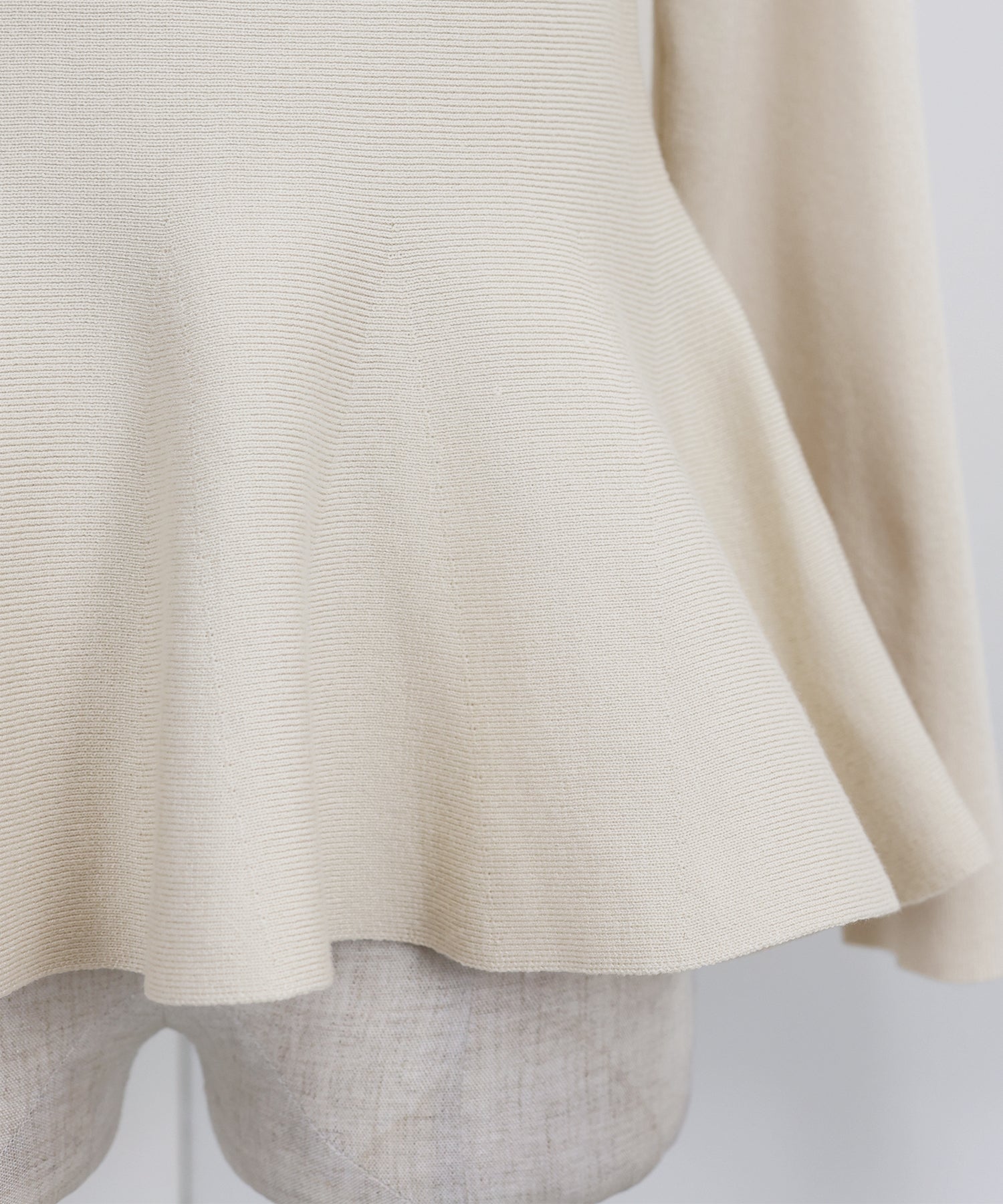 ふんわりとした立体的なシルエットのペプラムラインと