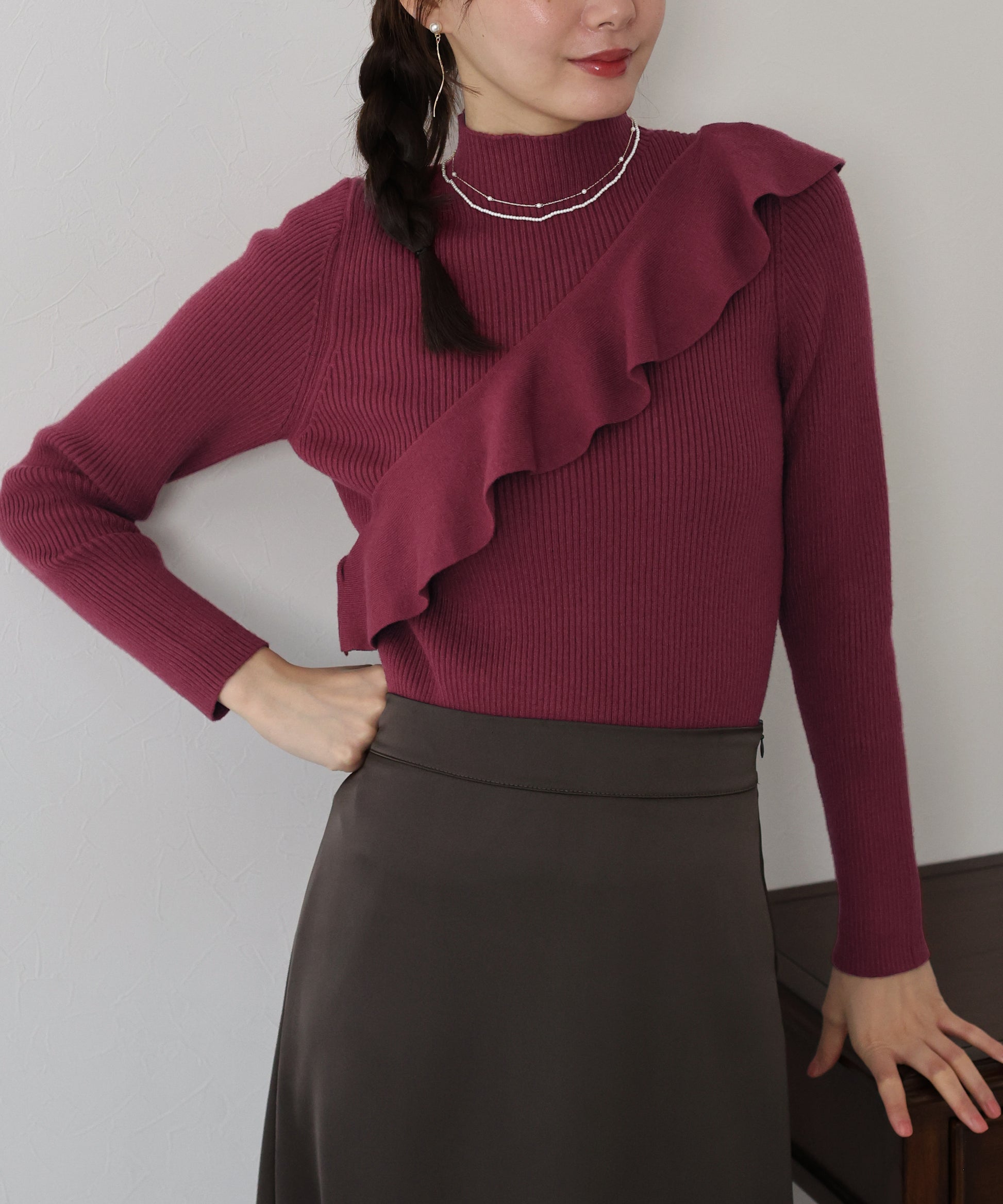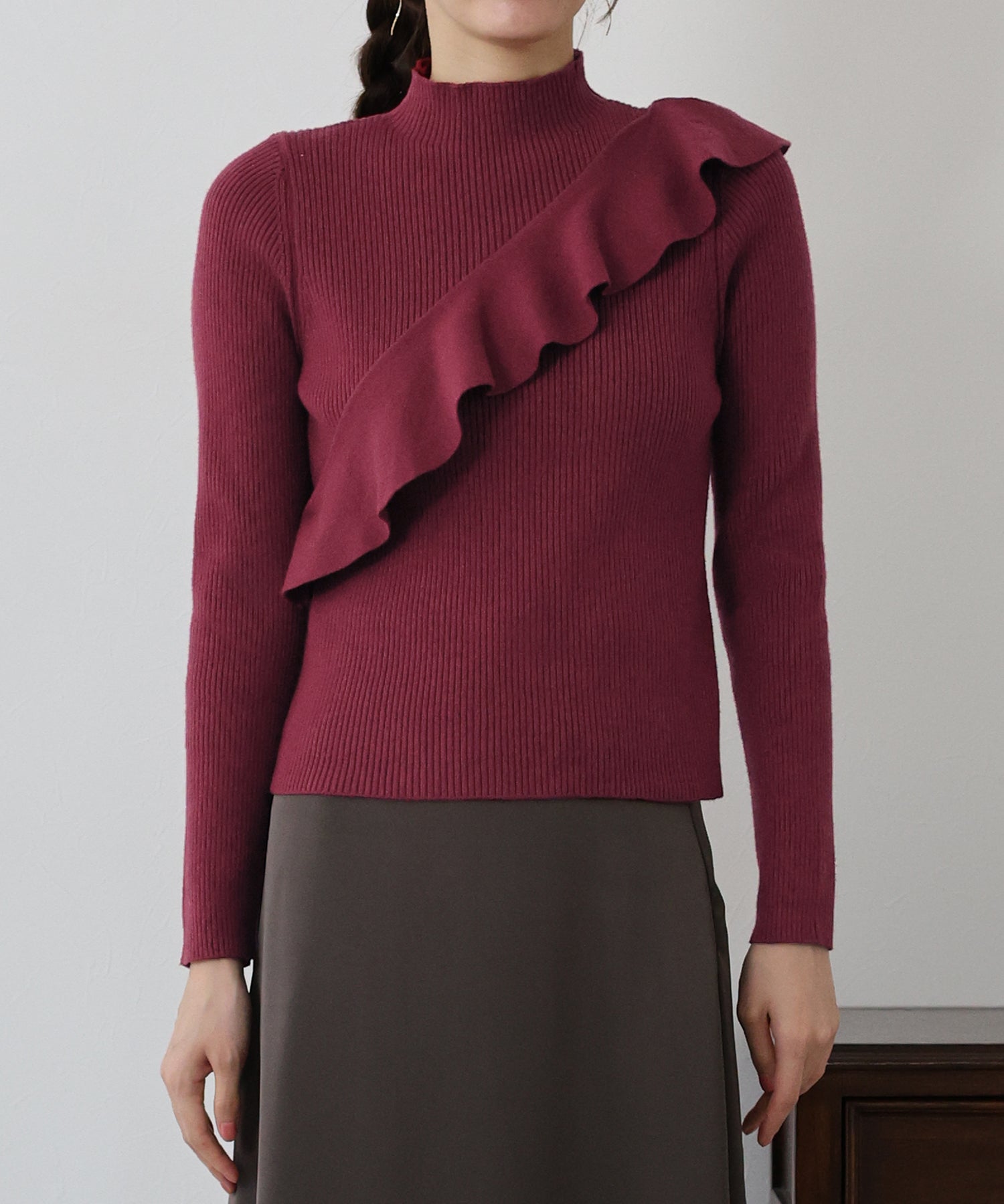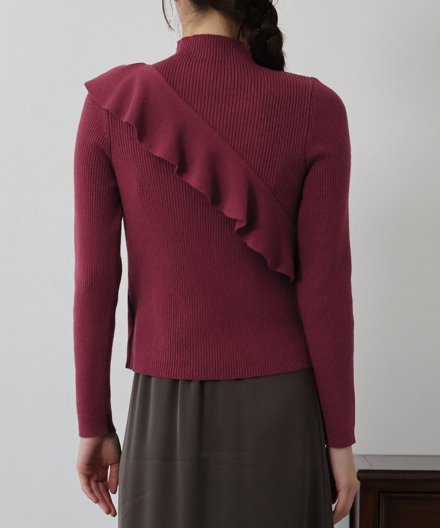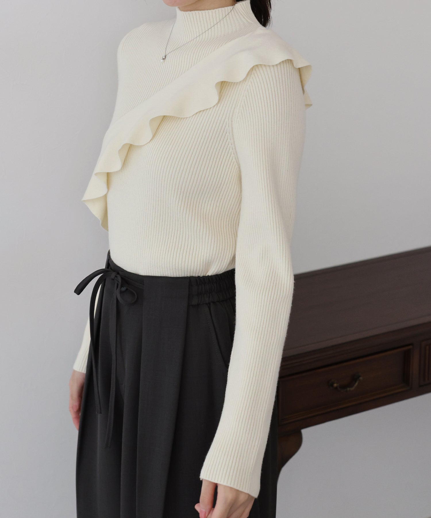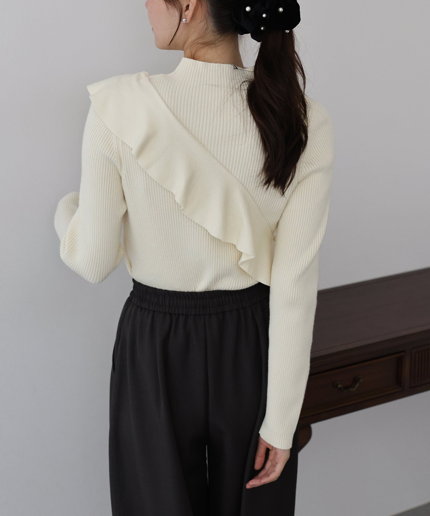 【TIME SALE】アシメフリルリブニット