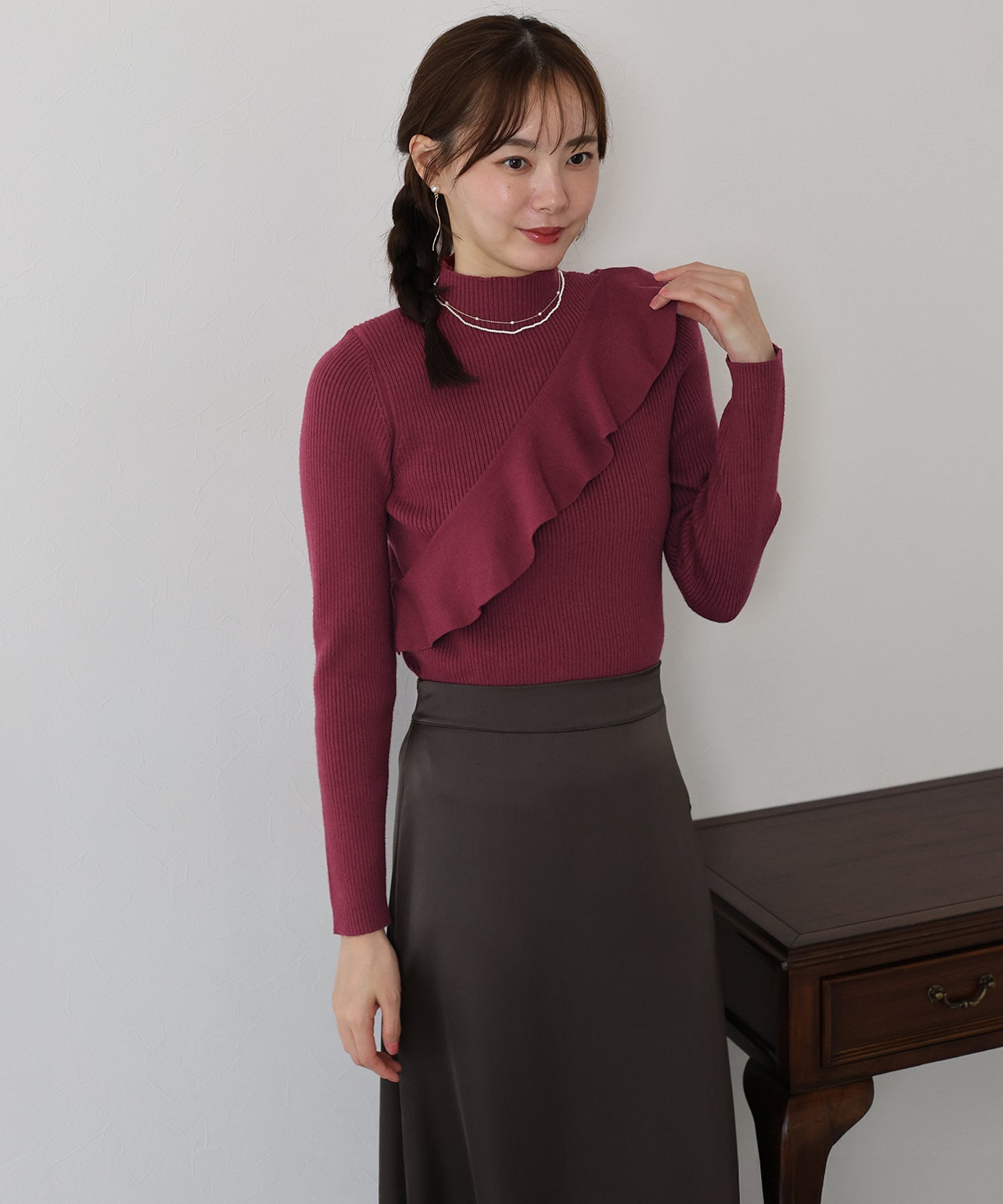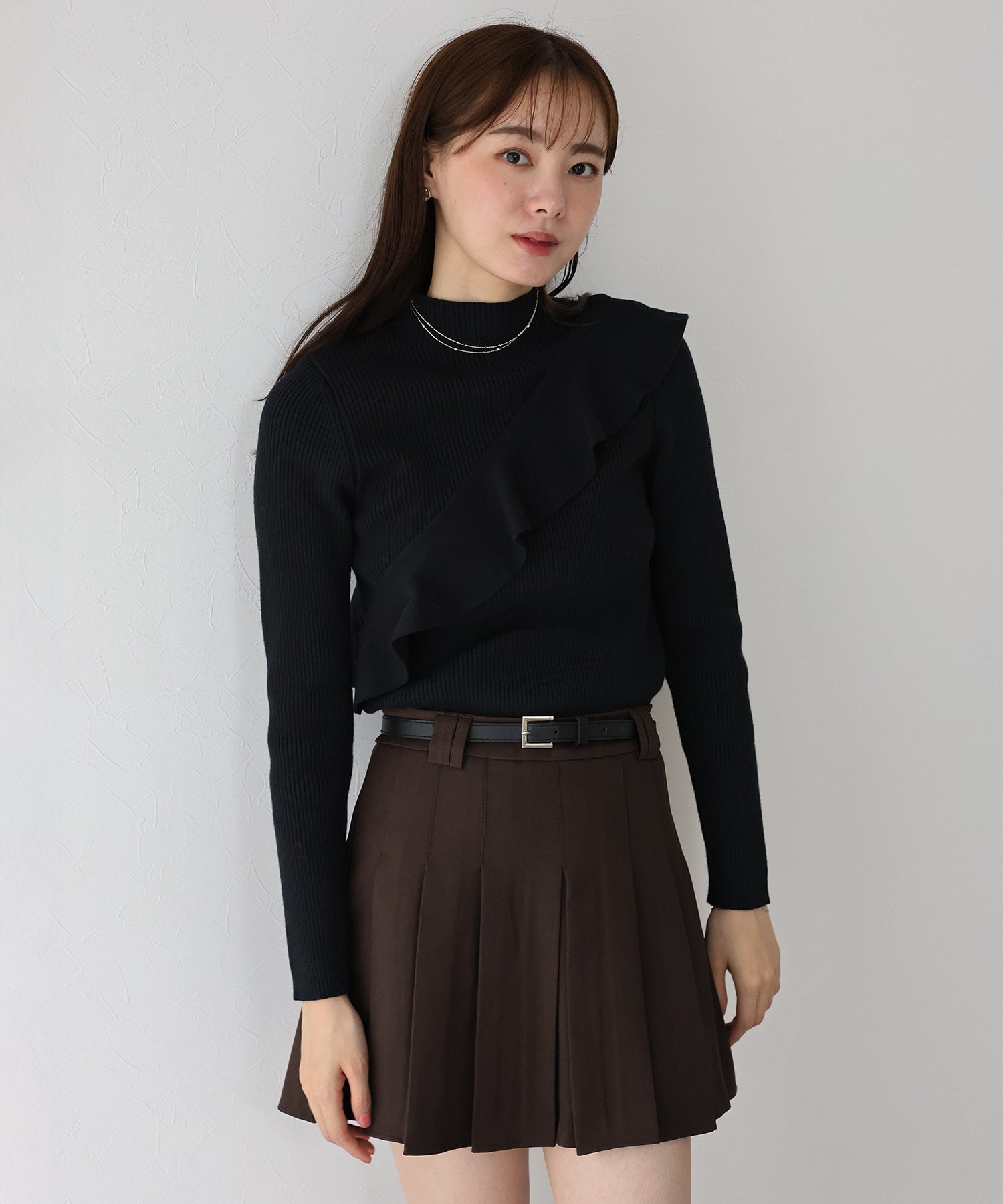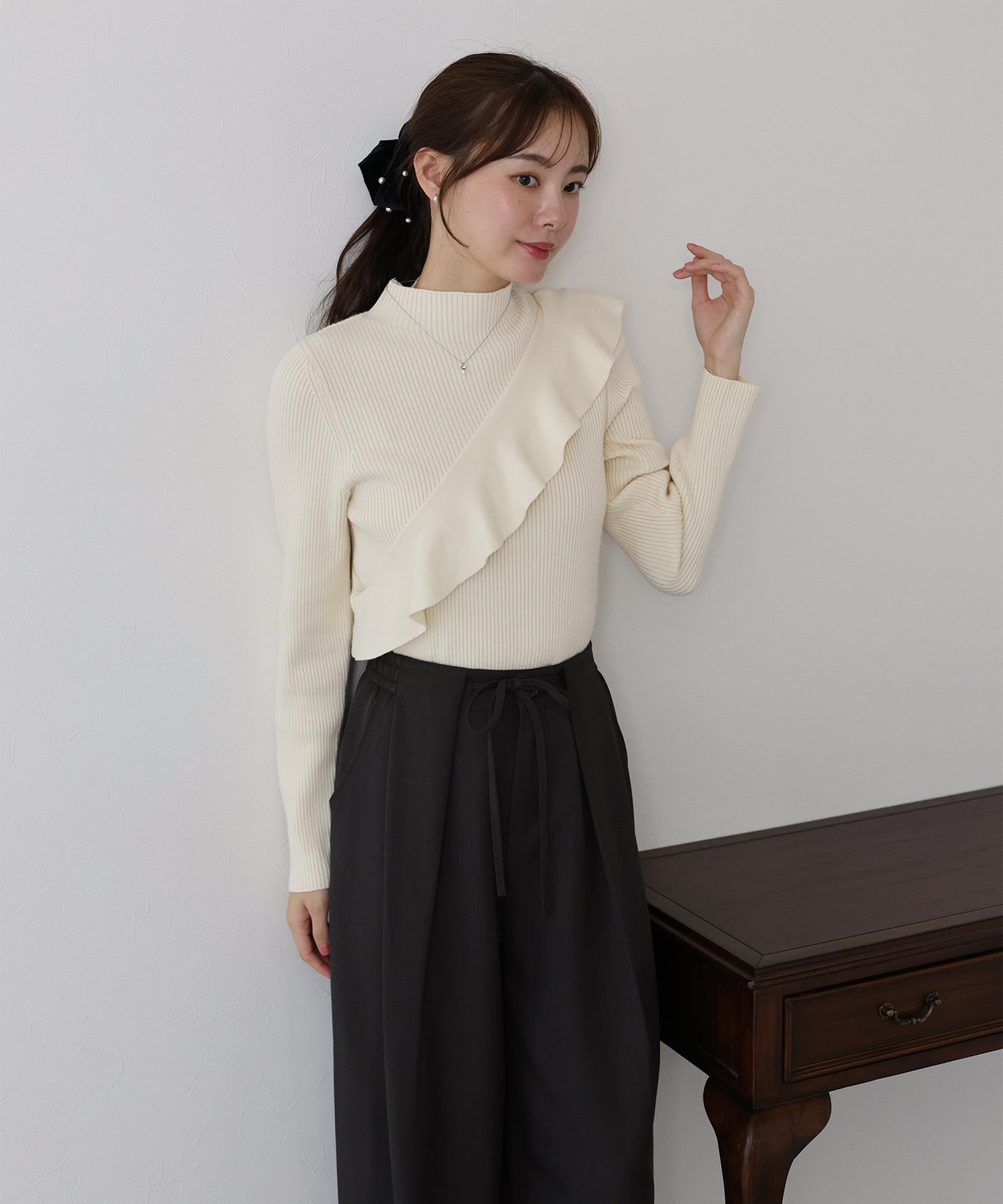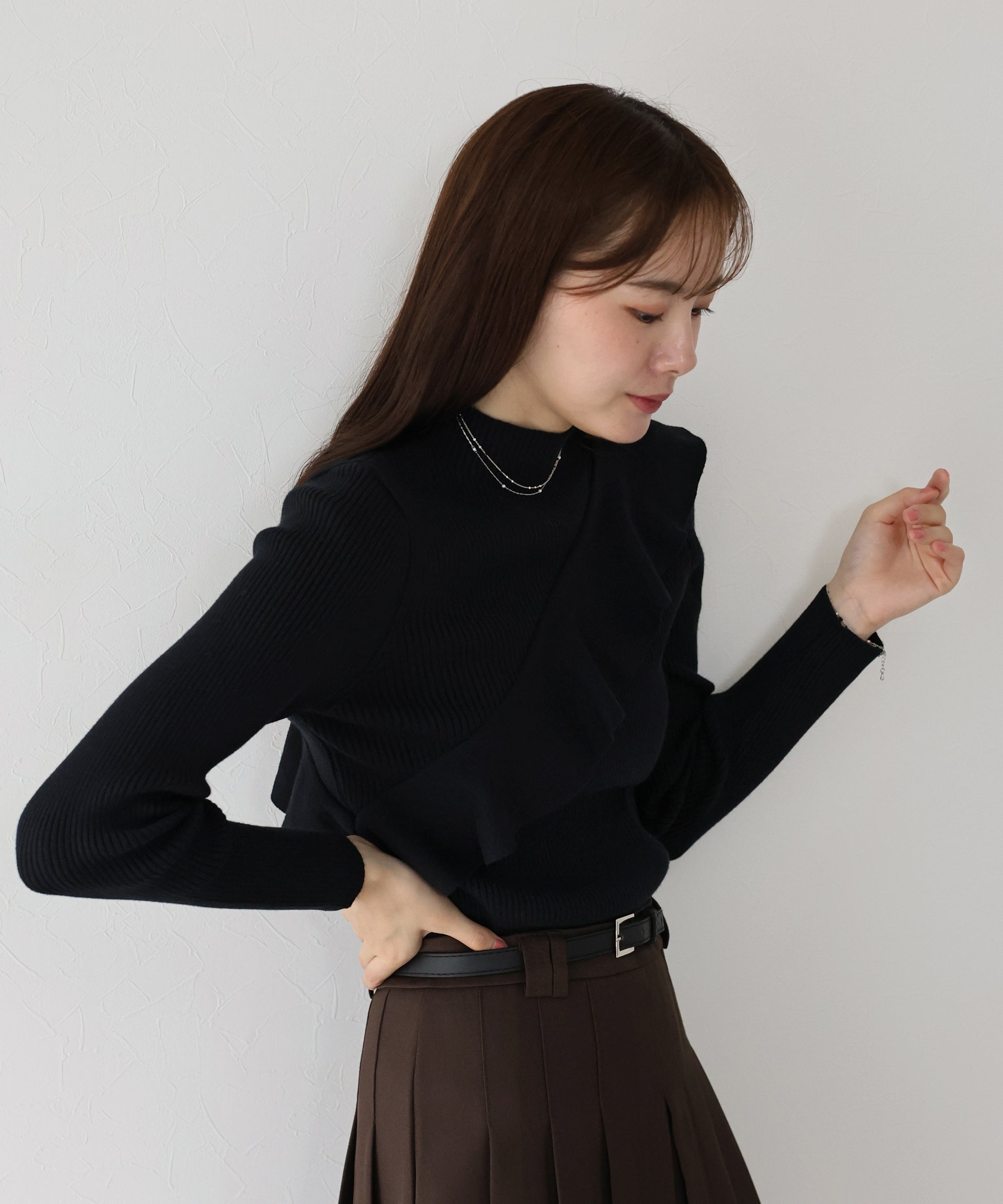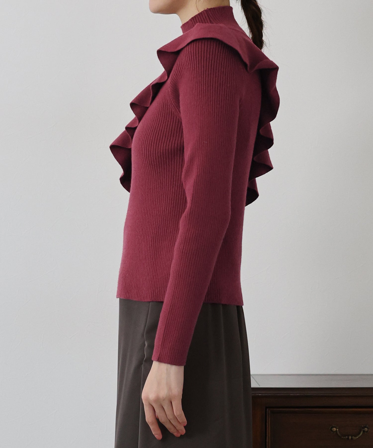 【TIME SALE】アシメフリルリブニット