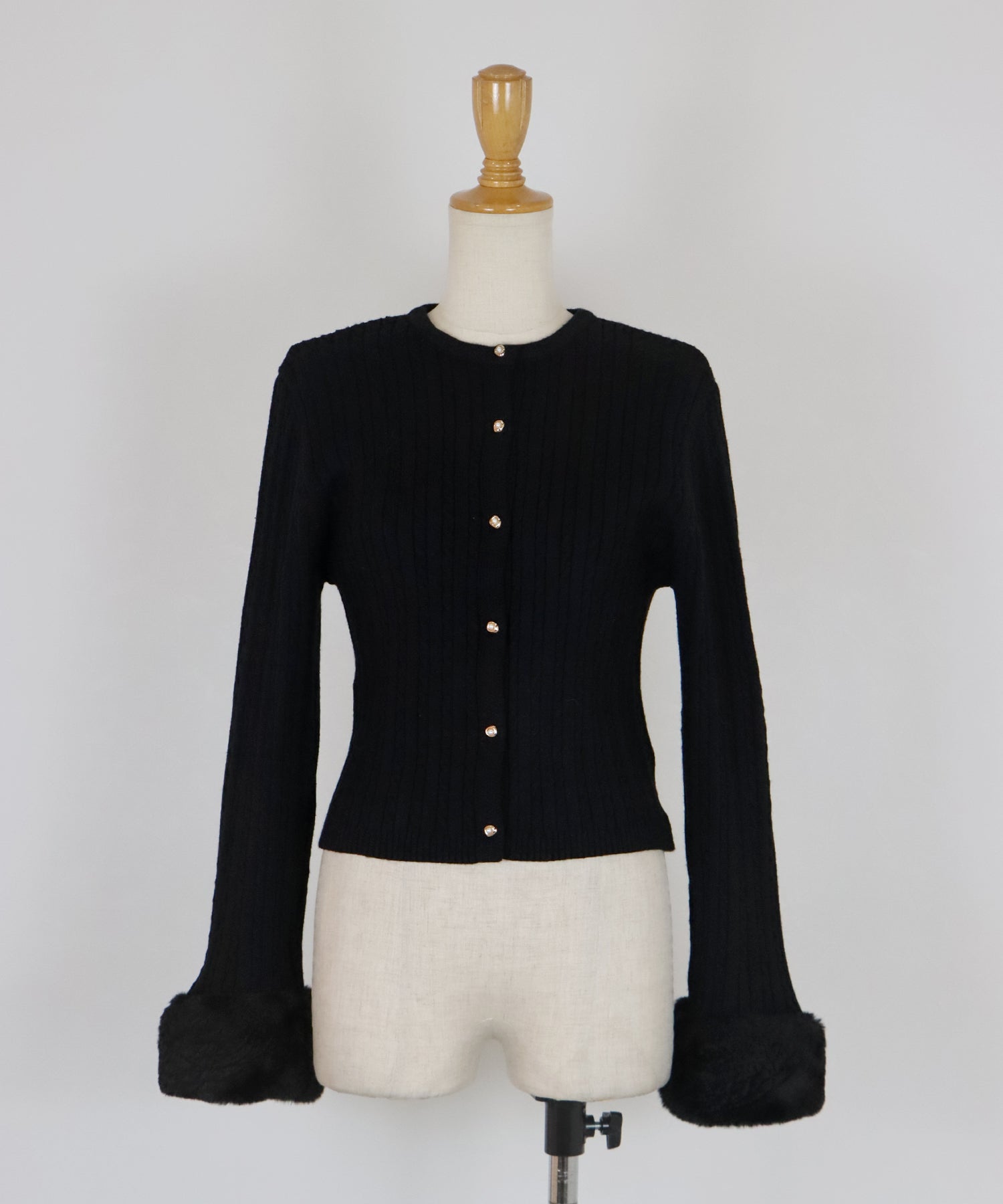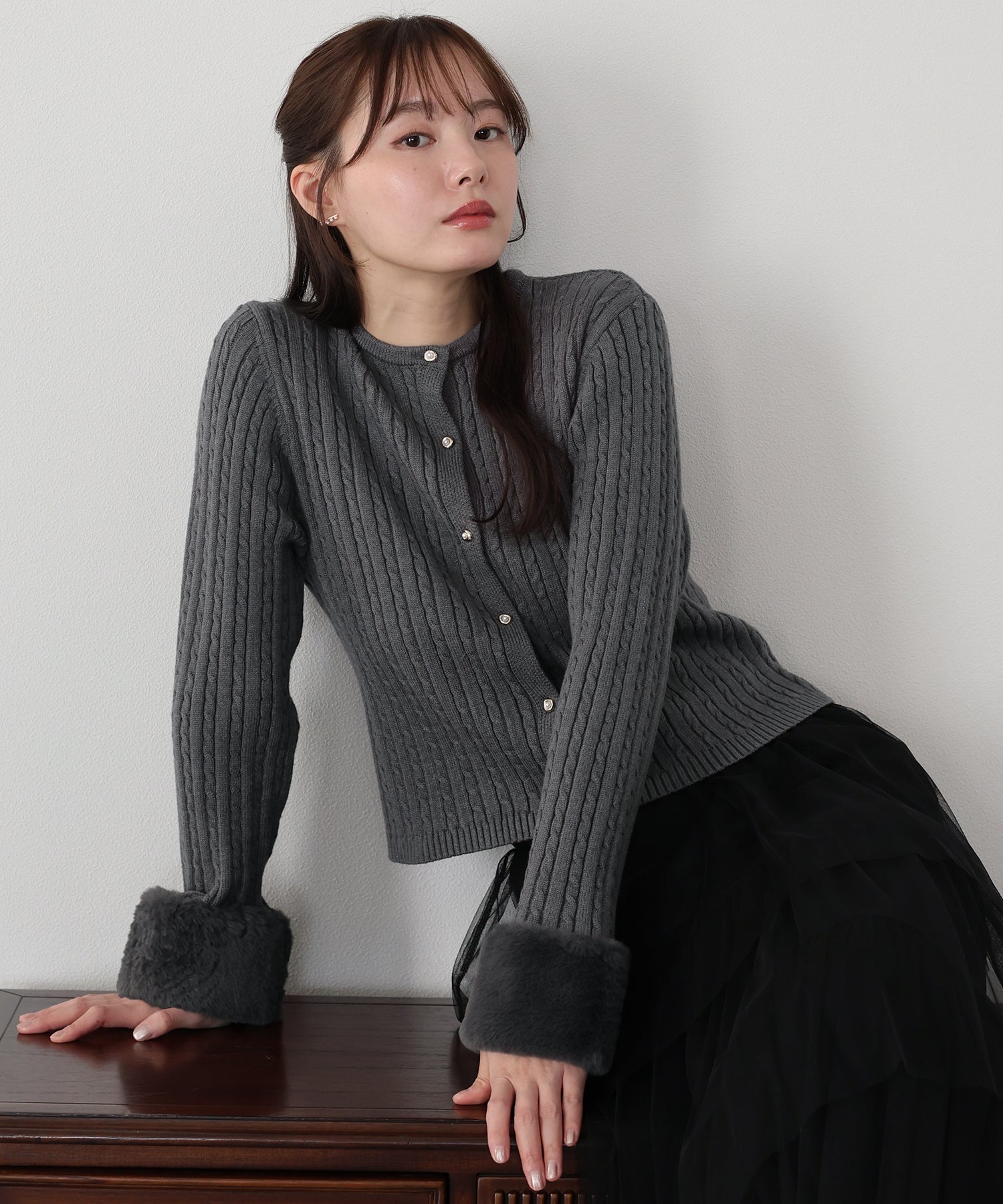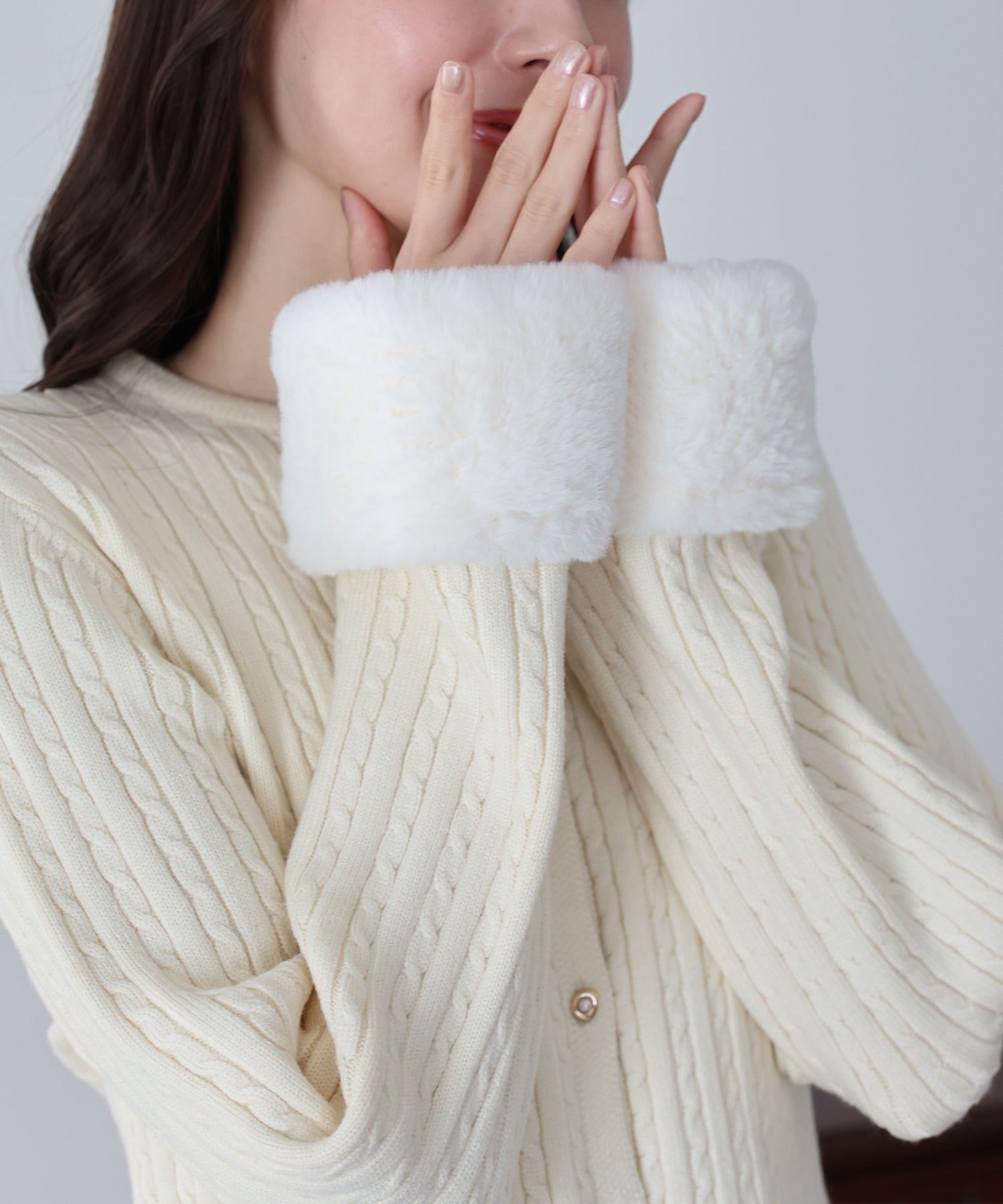 袖口にあしらったファーがシーズンライクな雰囲気のニットカーディガン