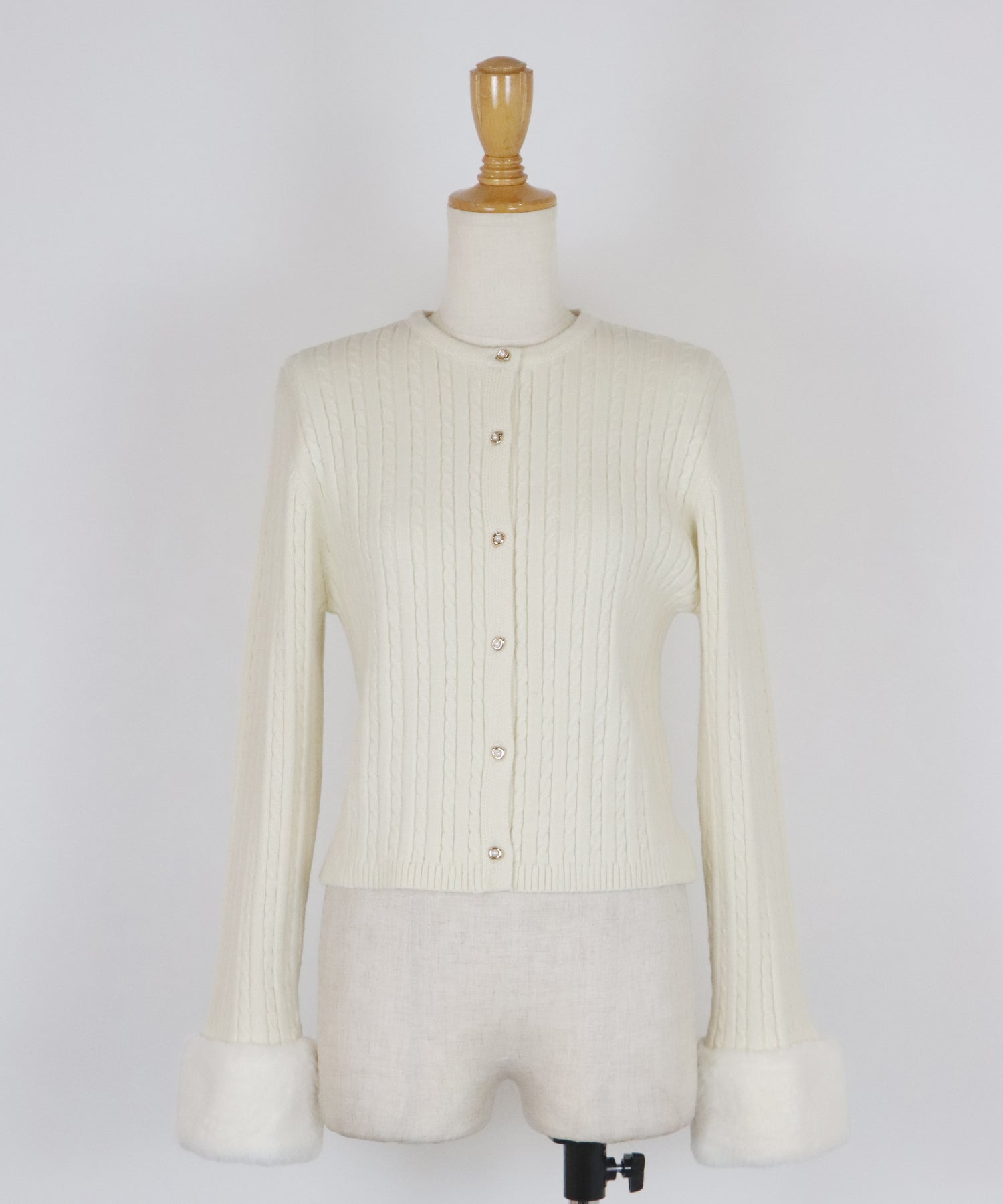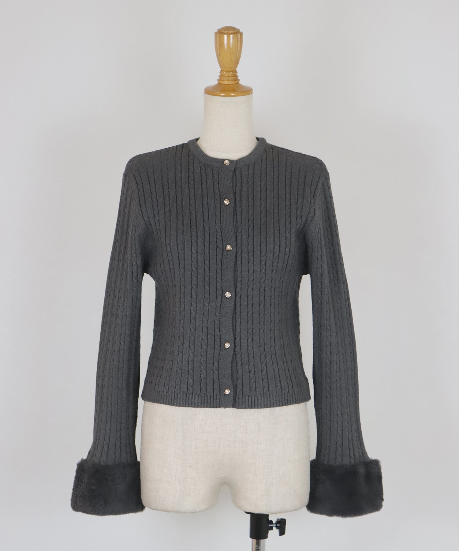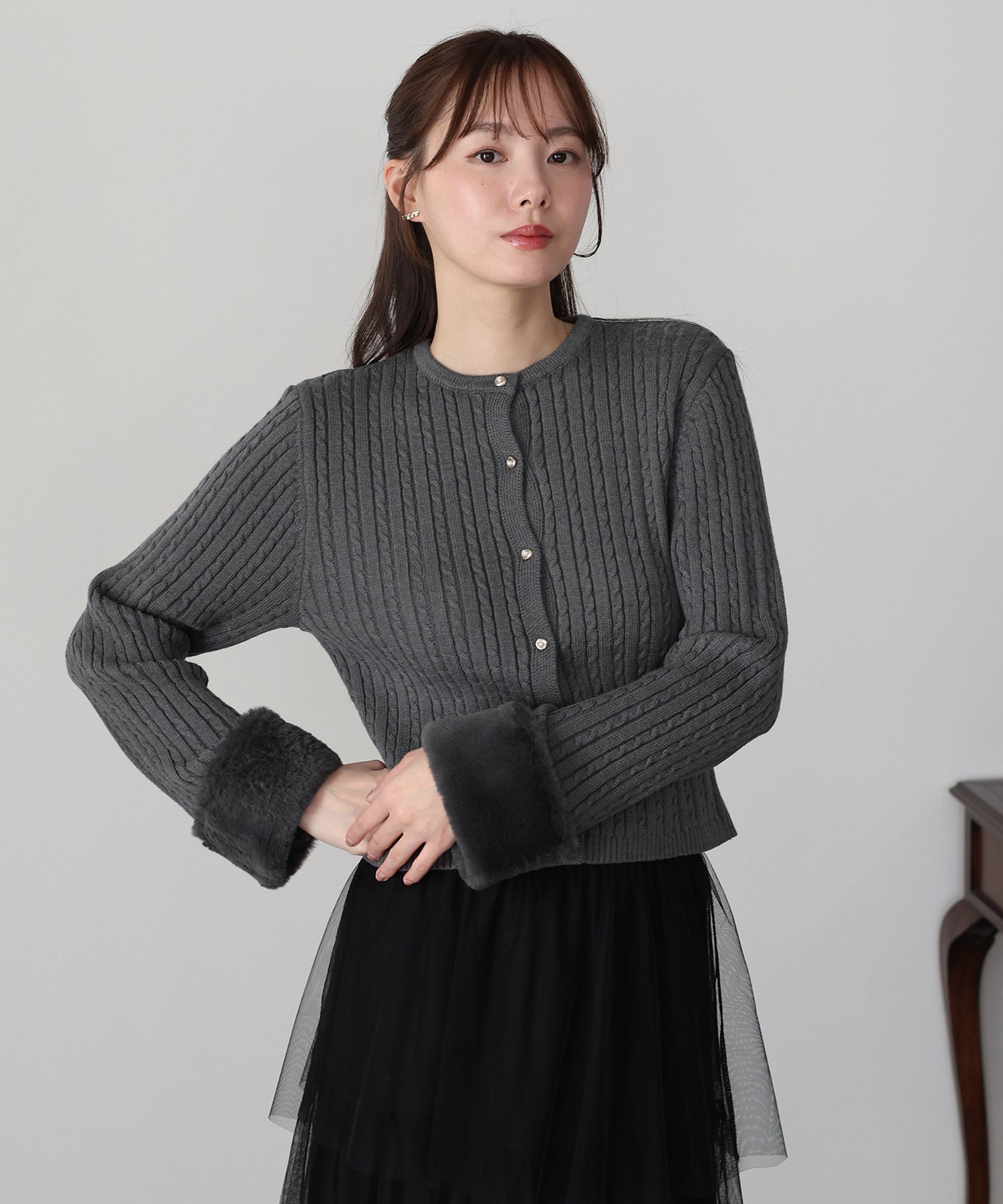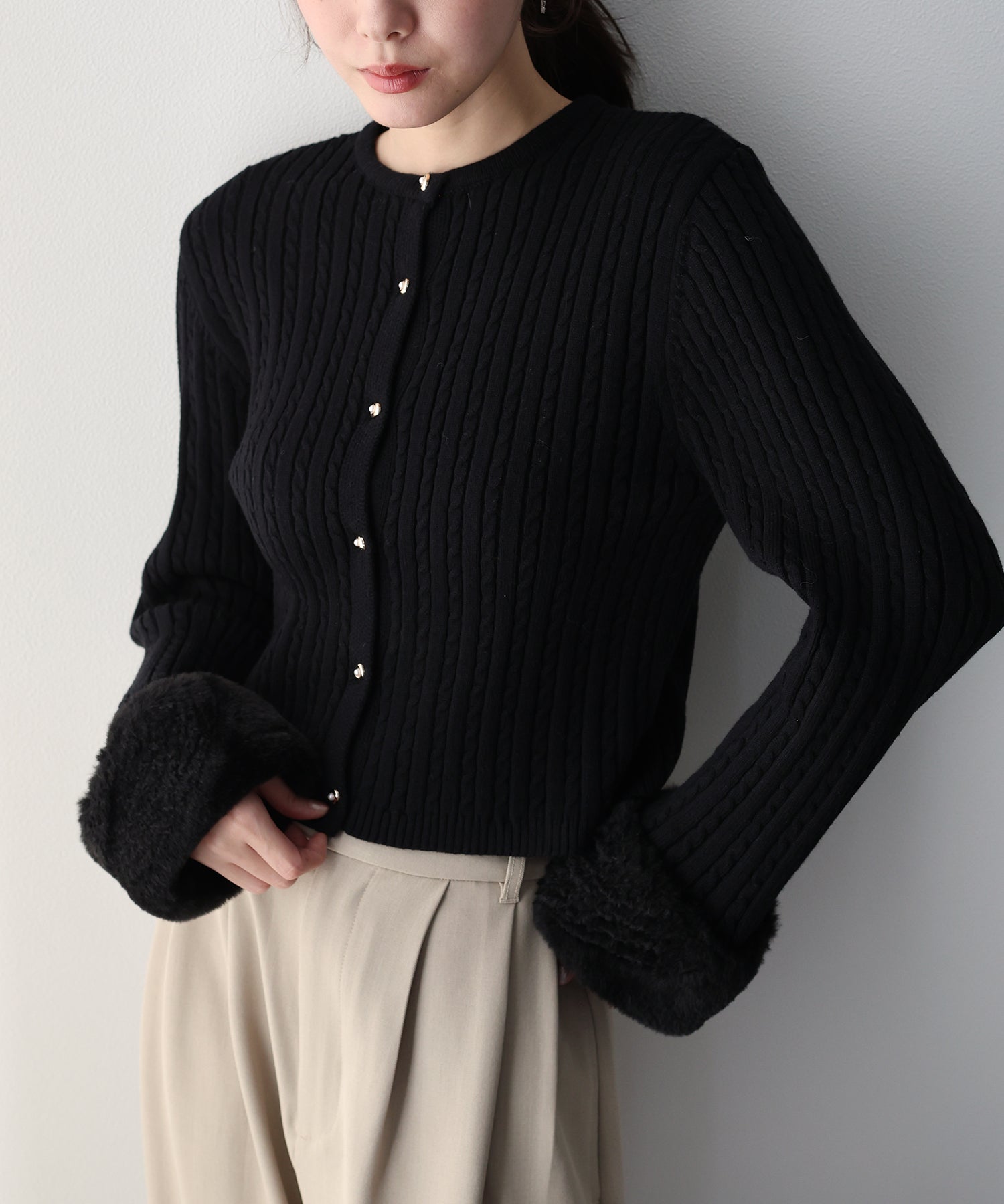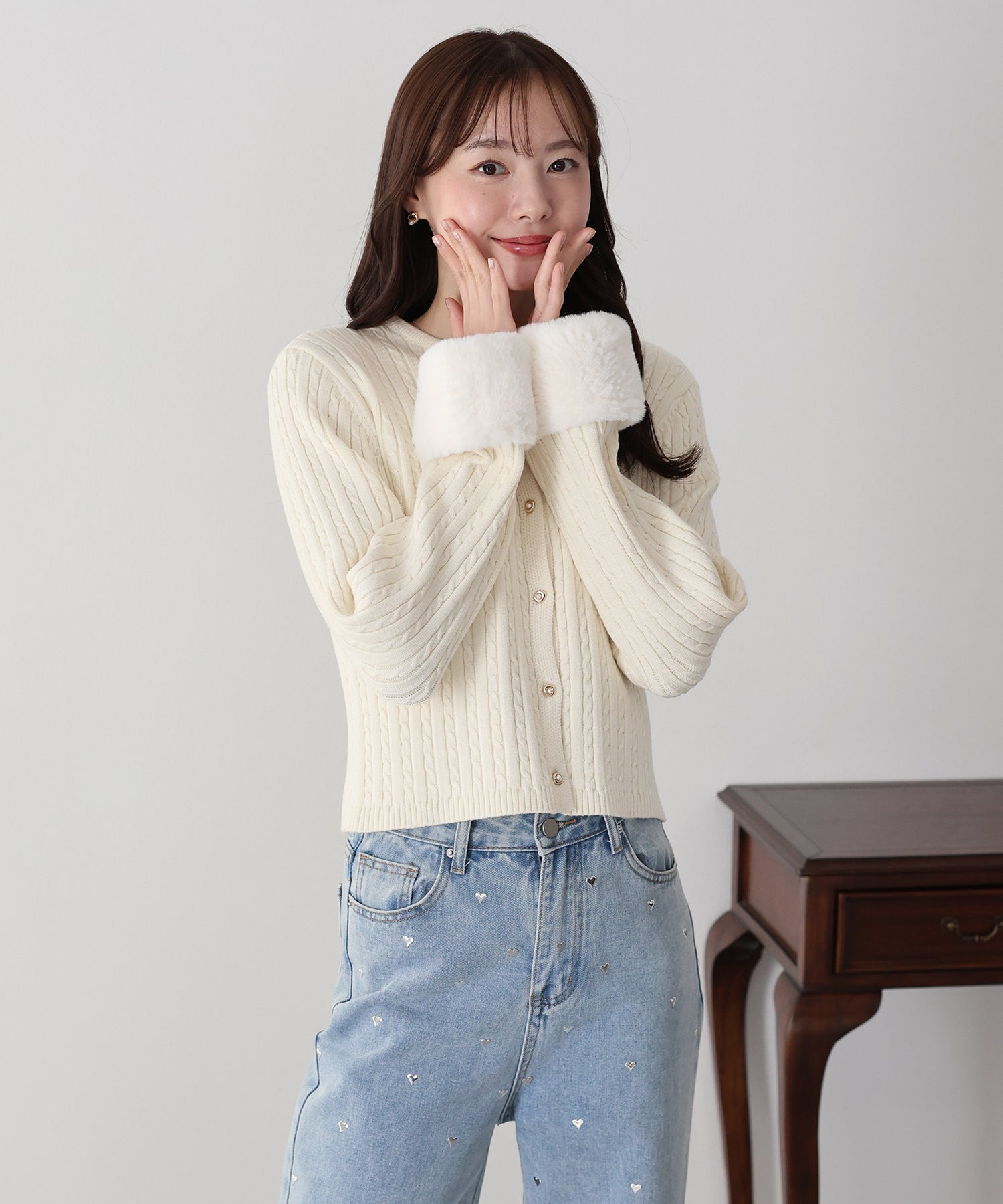 TIME SALE【早割5%OFF】袖ファーケーブルカーディガン