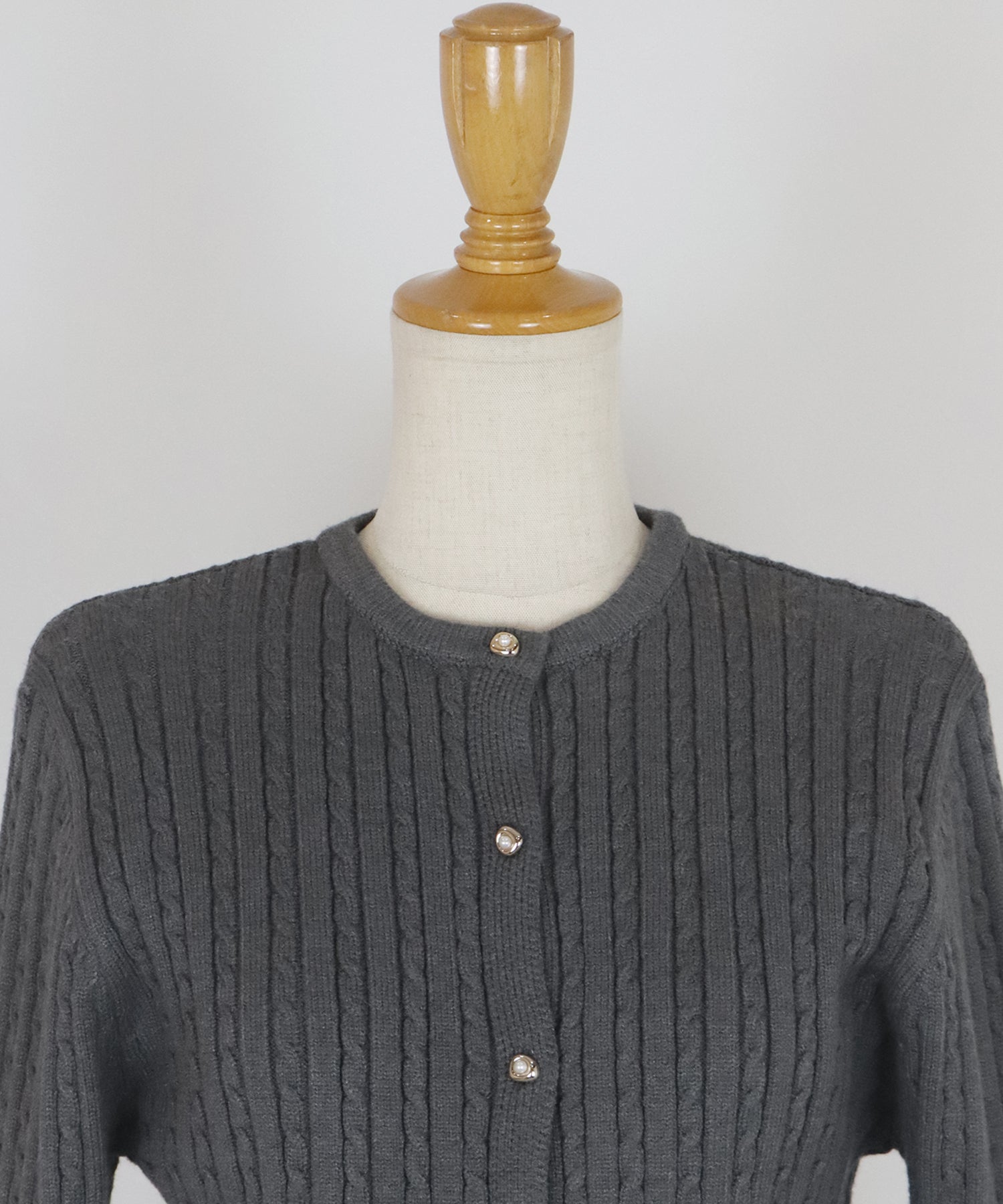 TIME SALE【早割5%OFF】ゴールドボタンケーブルクルーカーディガン