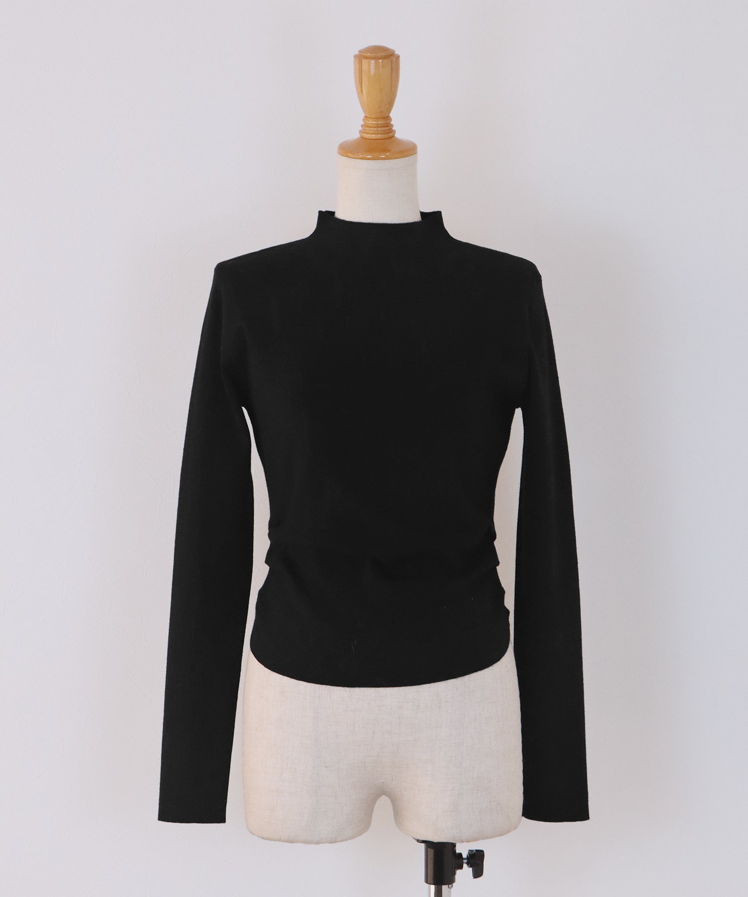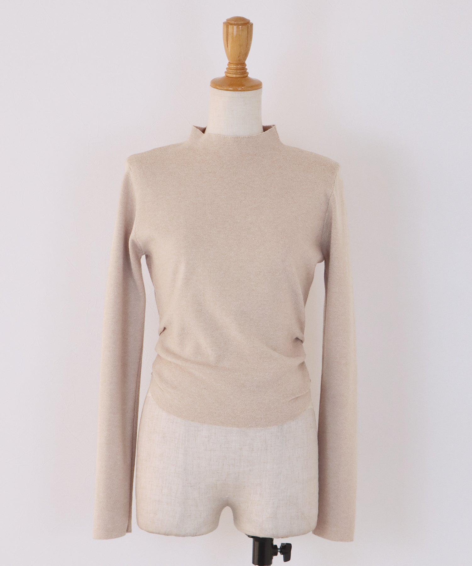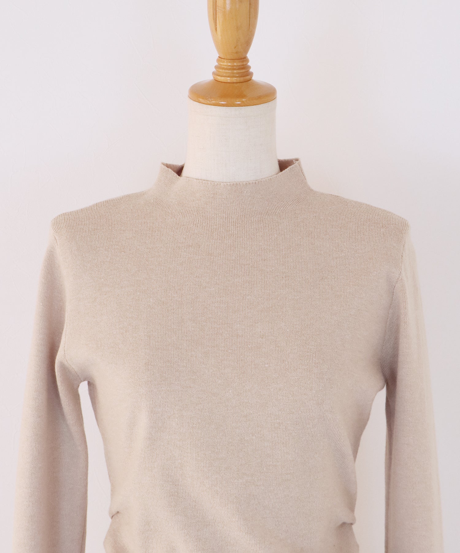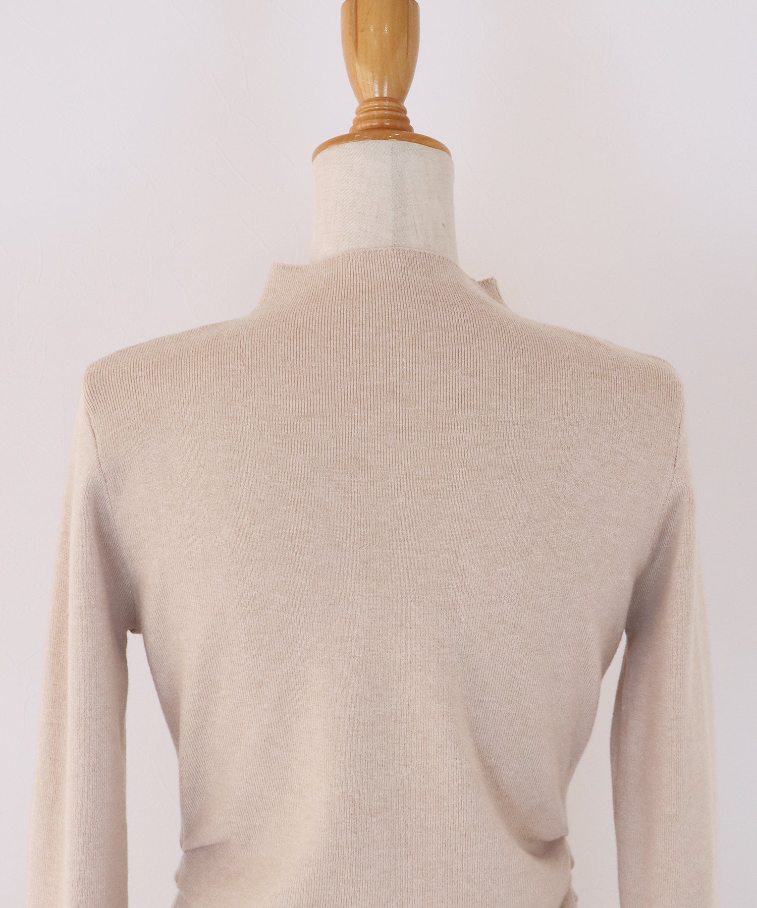ハイネックとサイドタックが上品な印象のニットトップス。