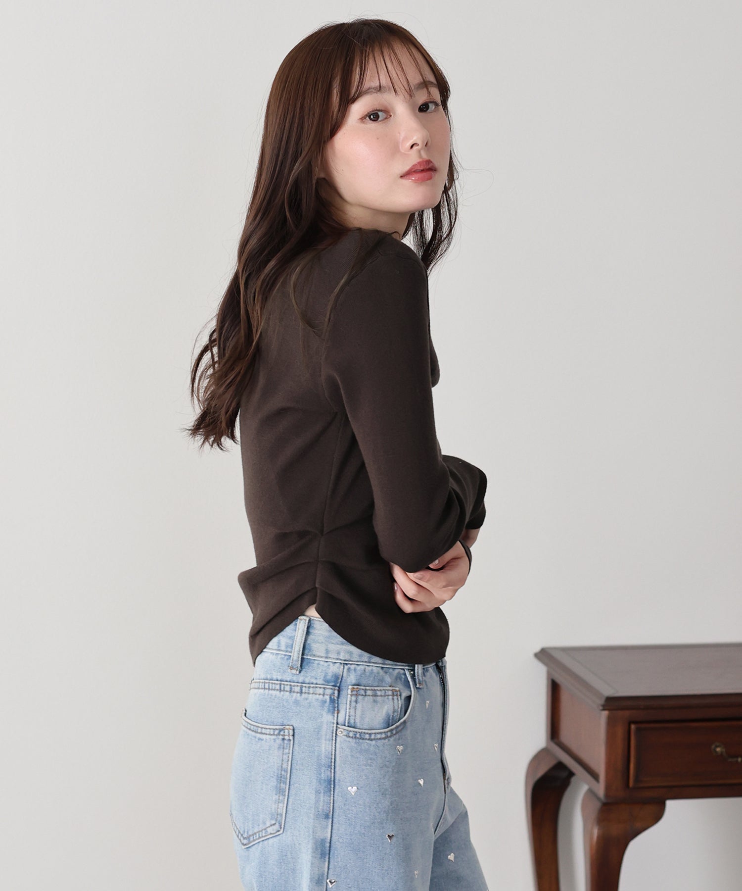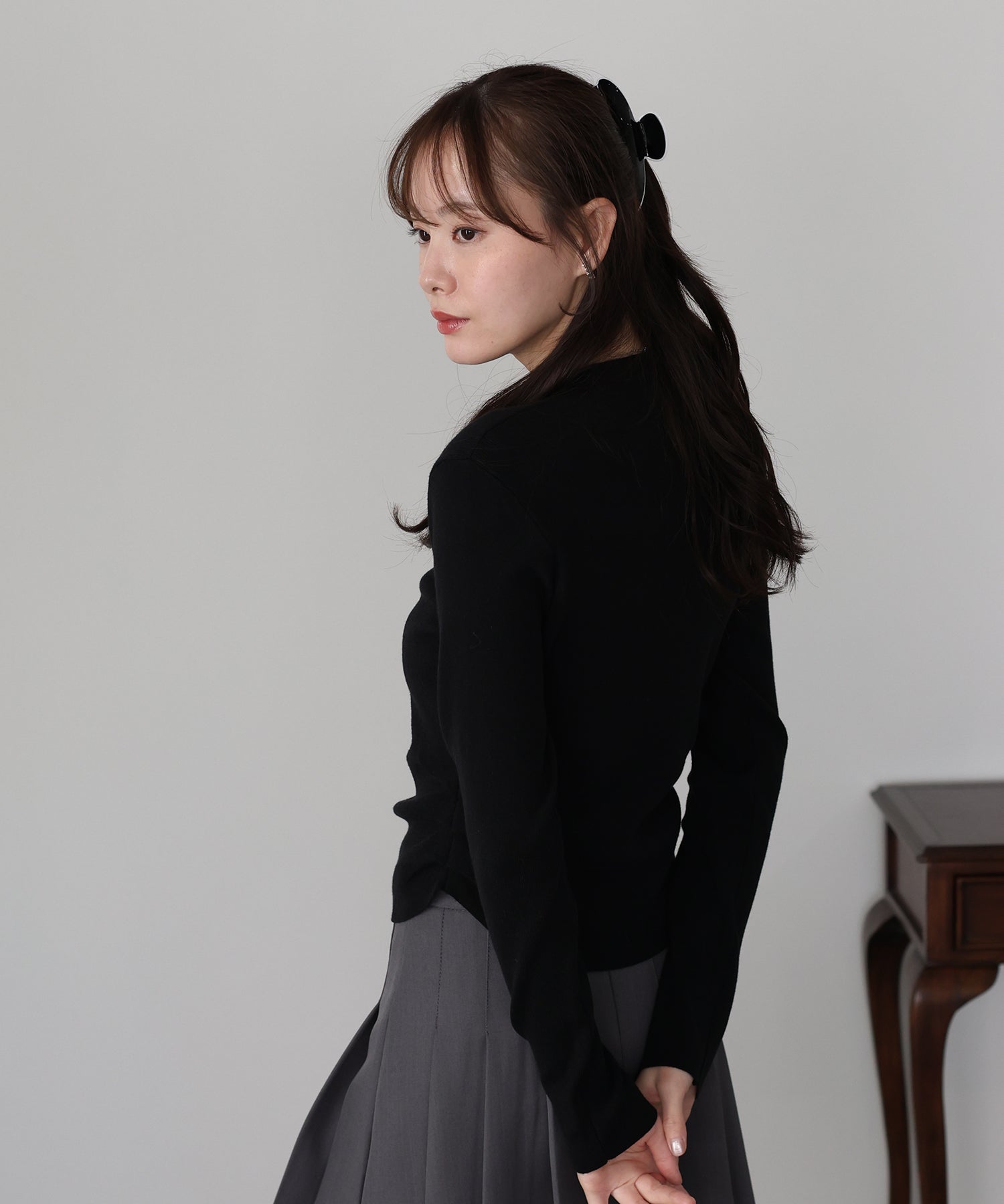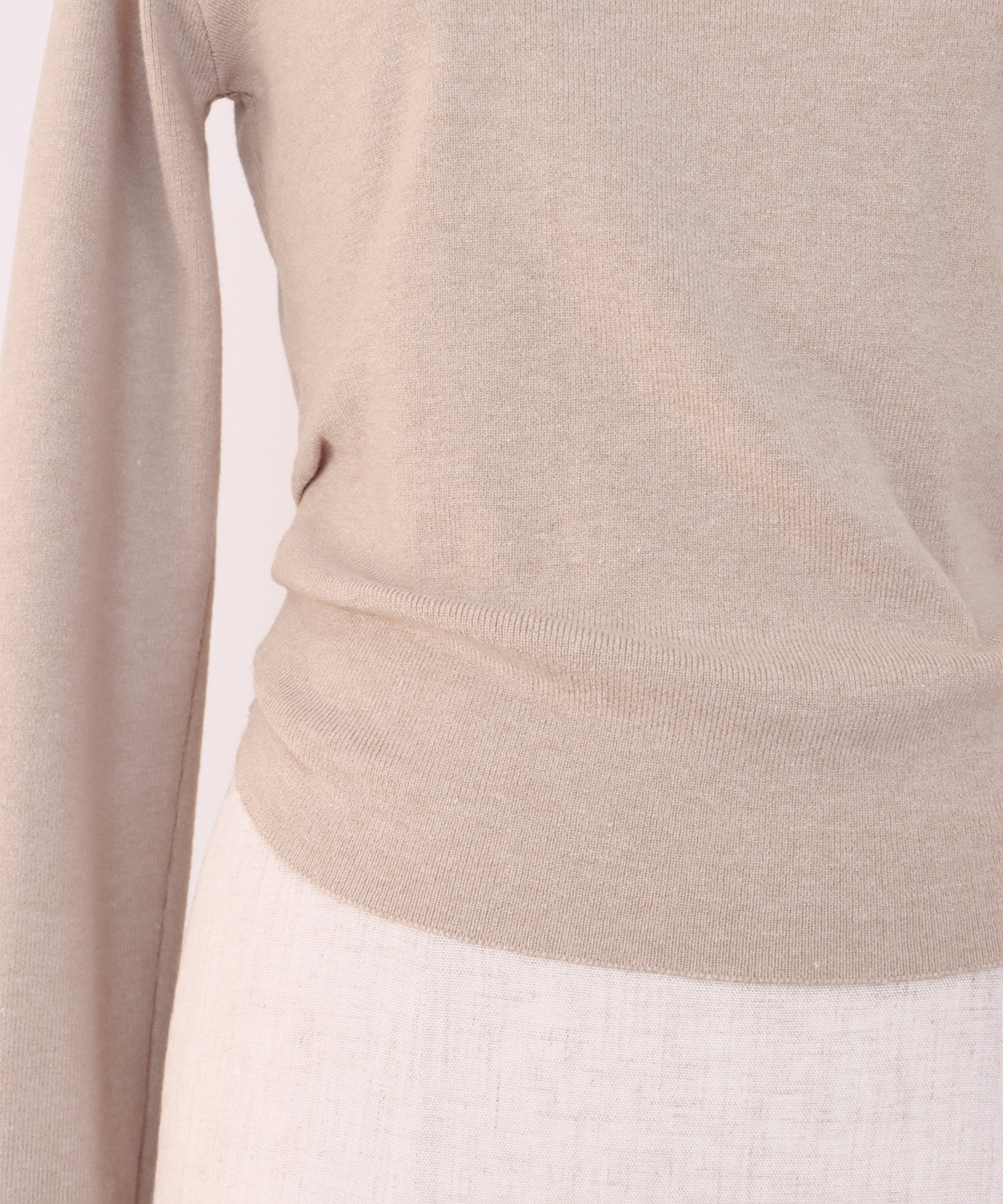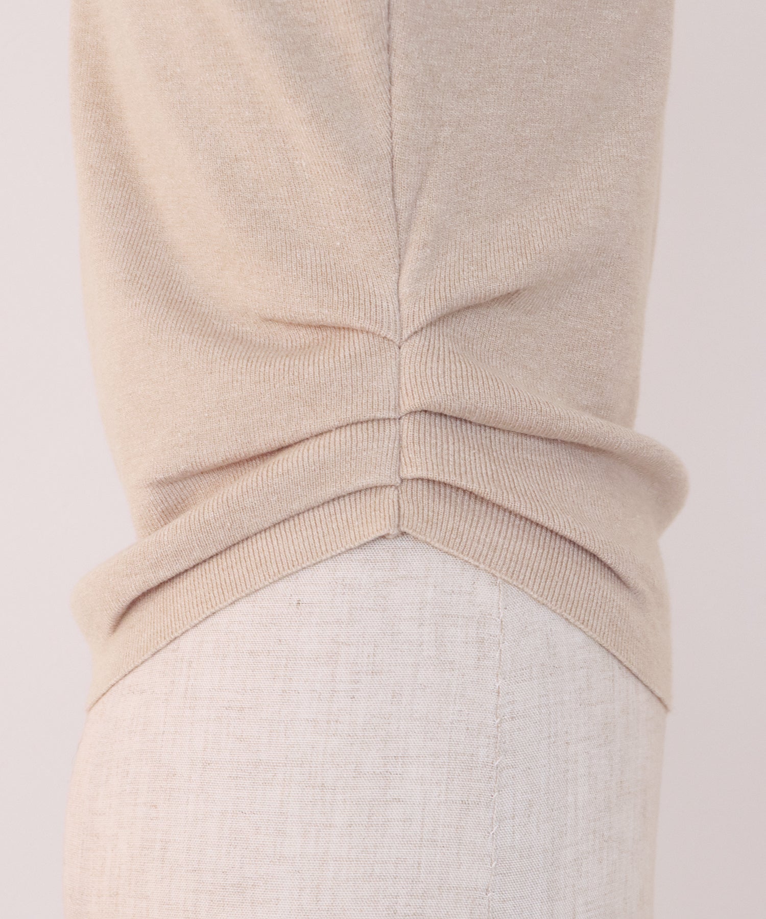ハイネックとサイドタックが上品な印象のニットトップス。