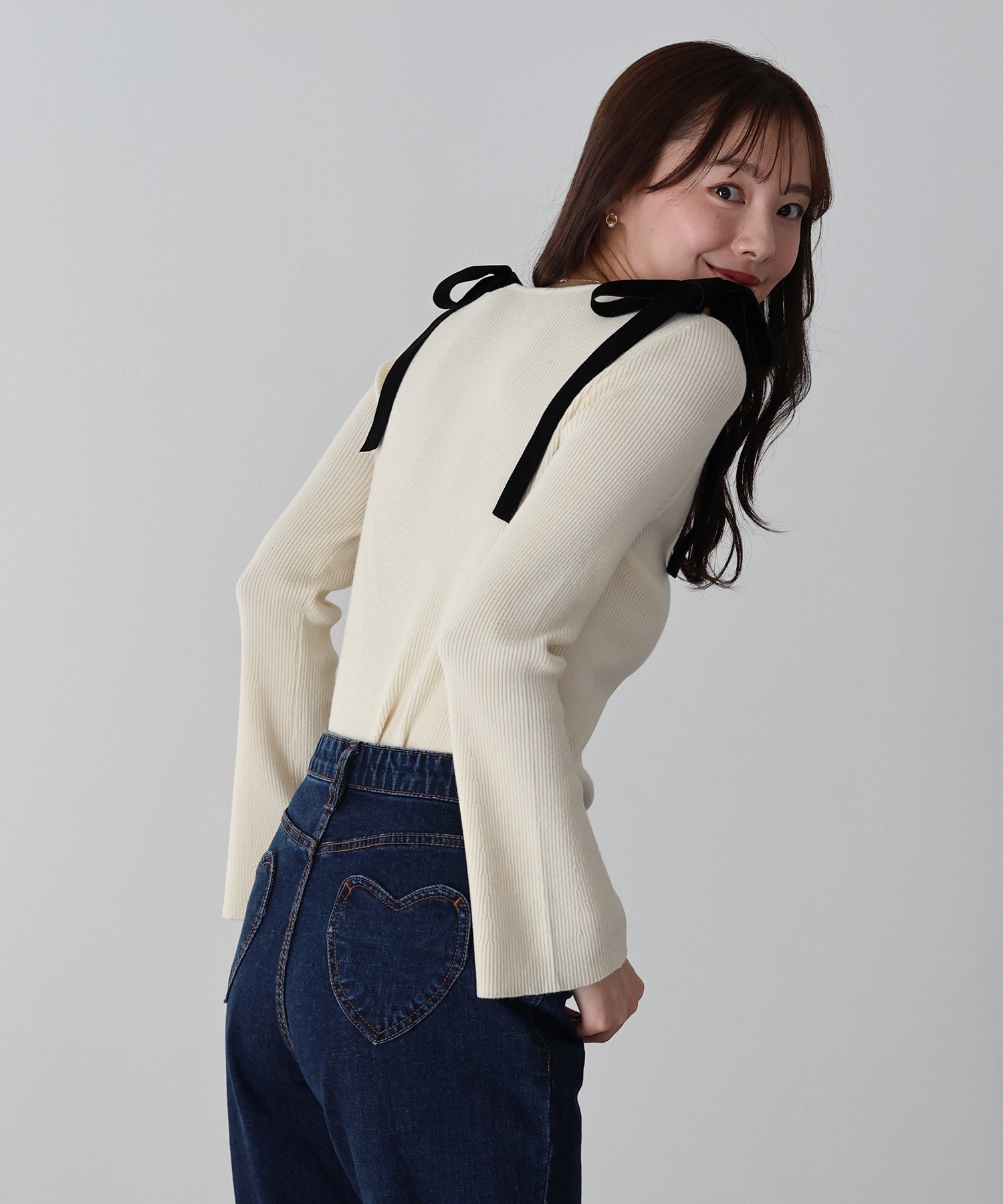 TIME SALE【早割5%OFF】リボンタイ付きオフショルダーニット