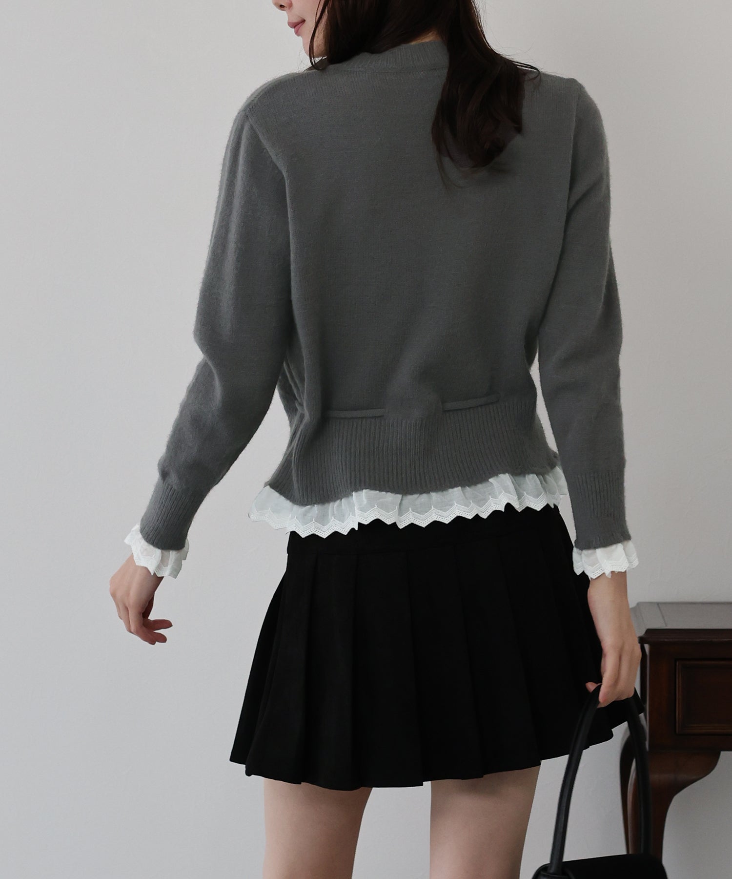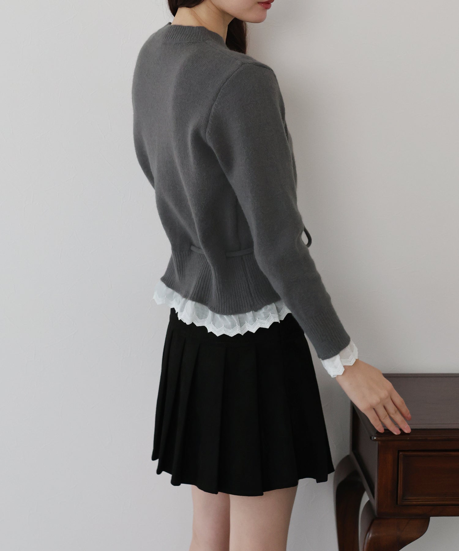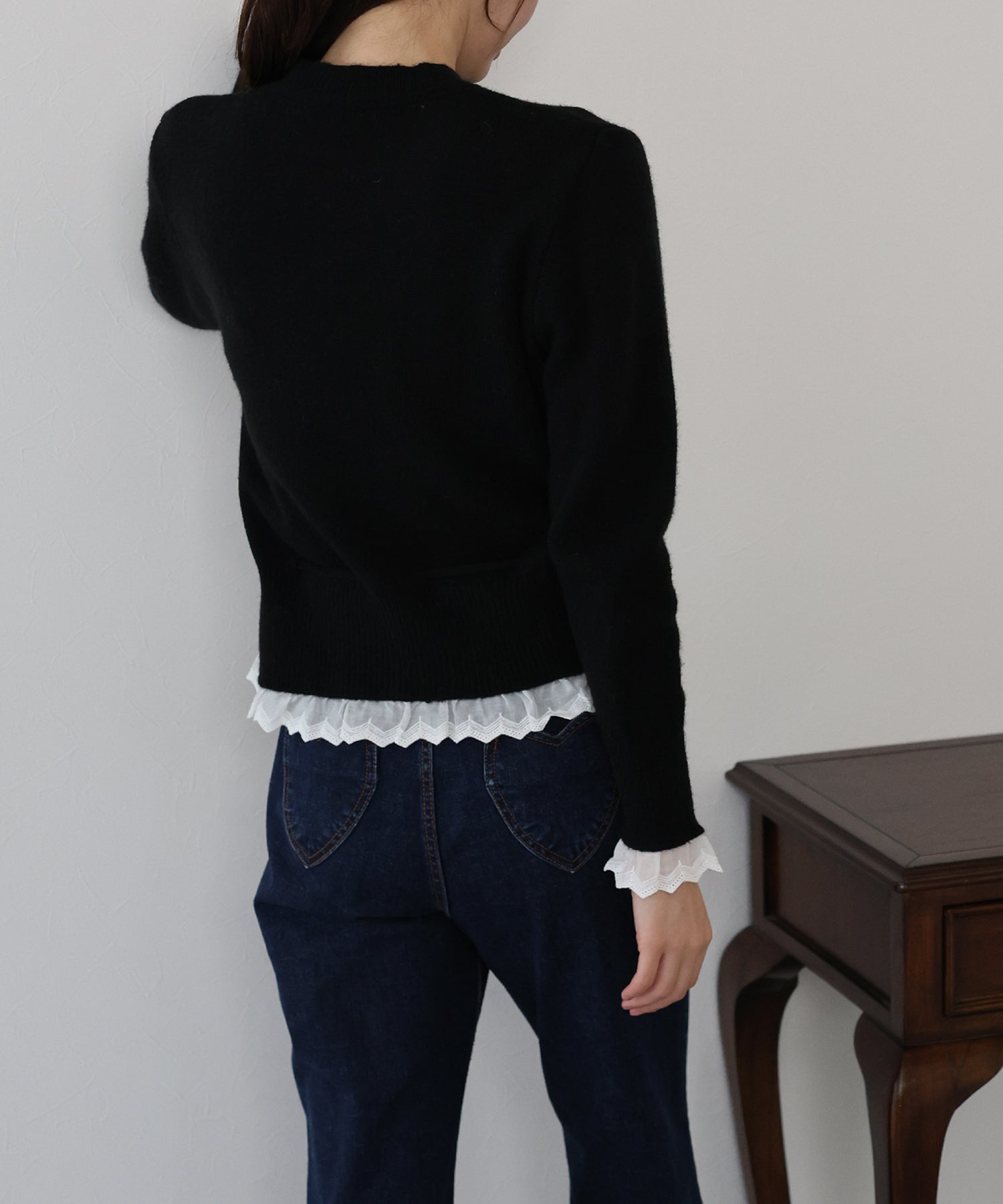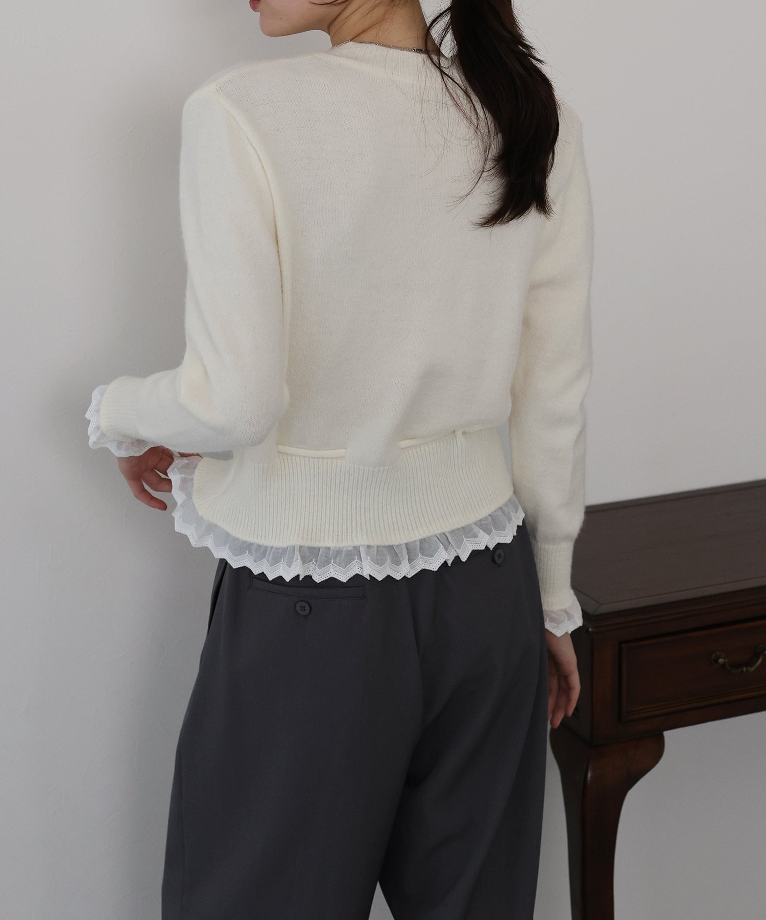 レースドッキングニットカーディガン