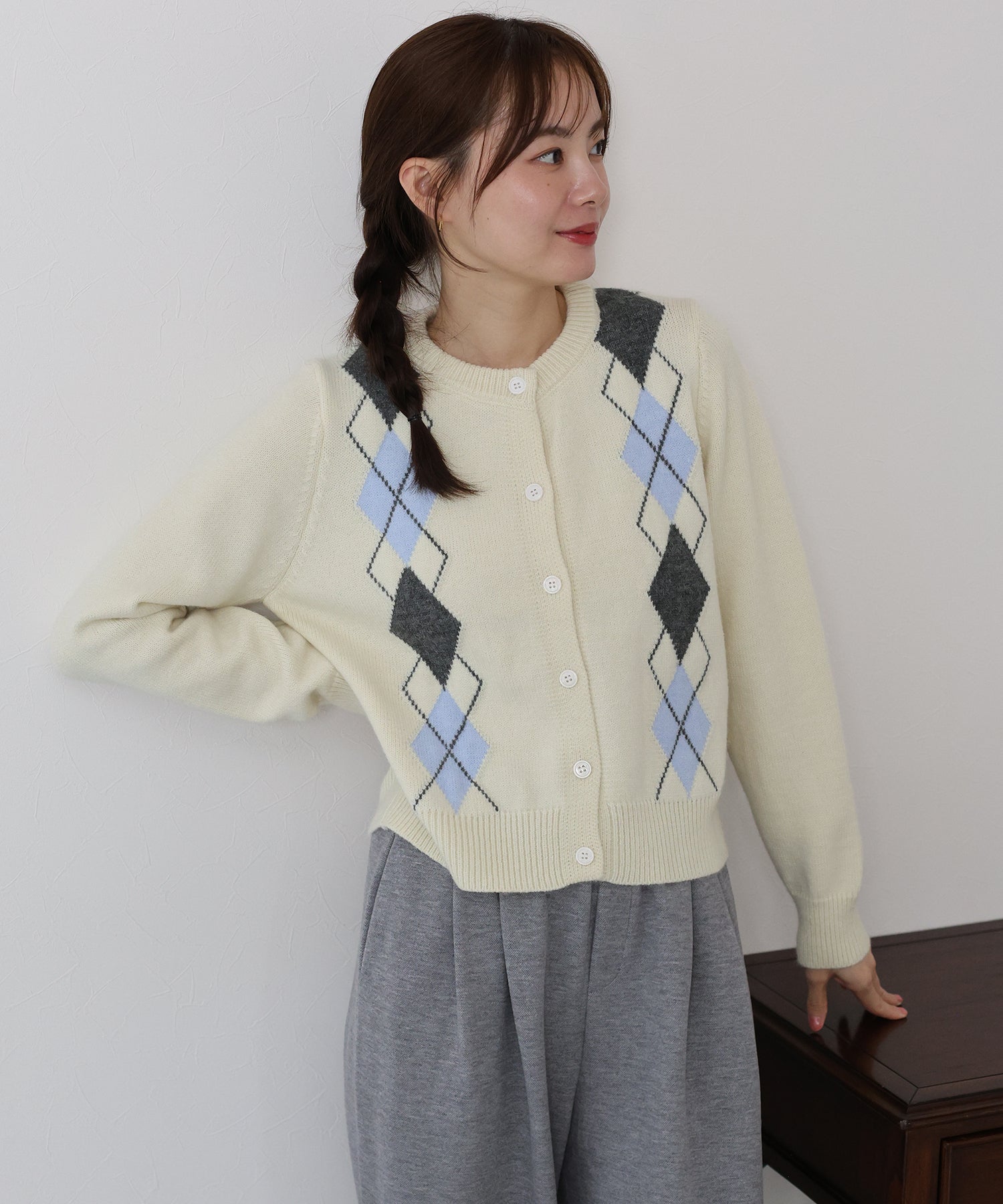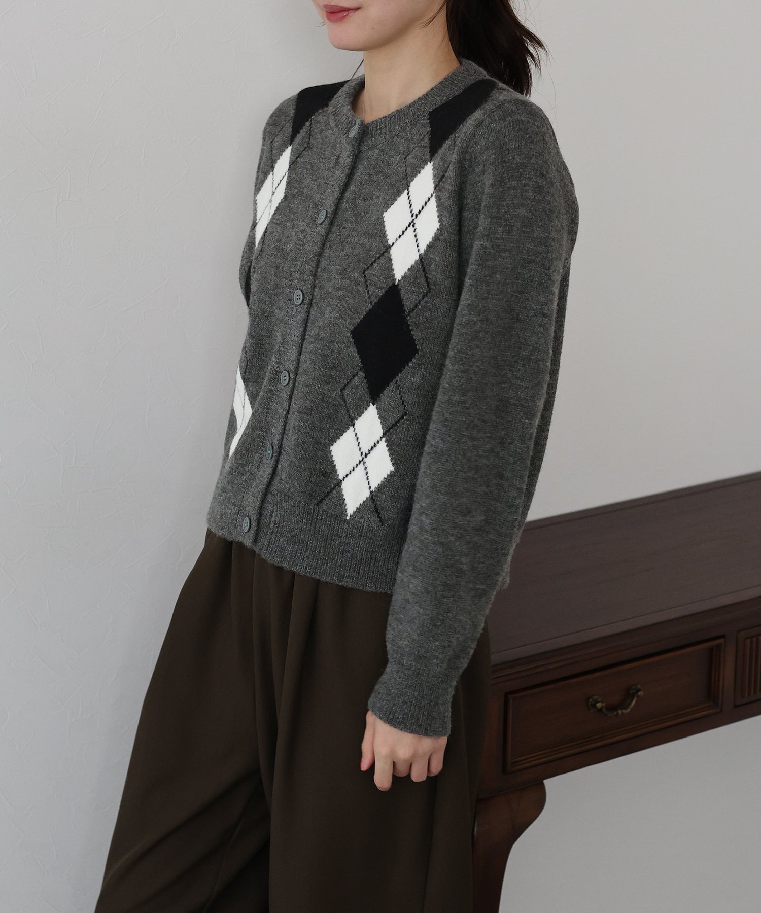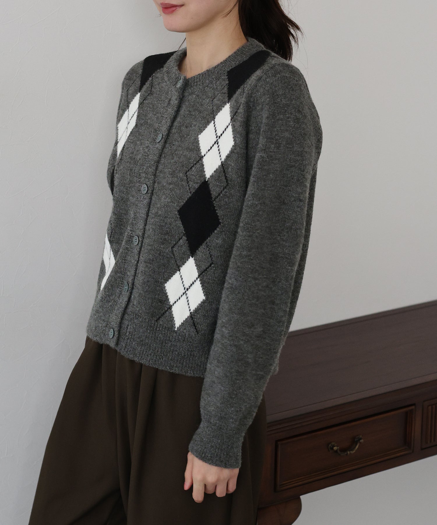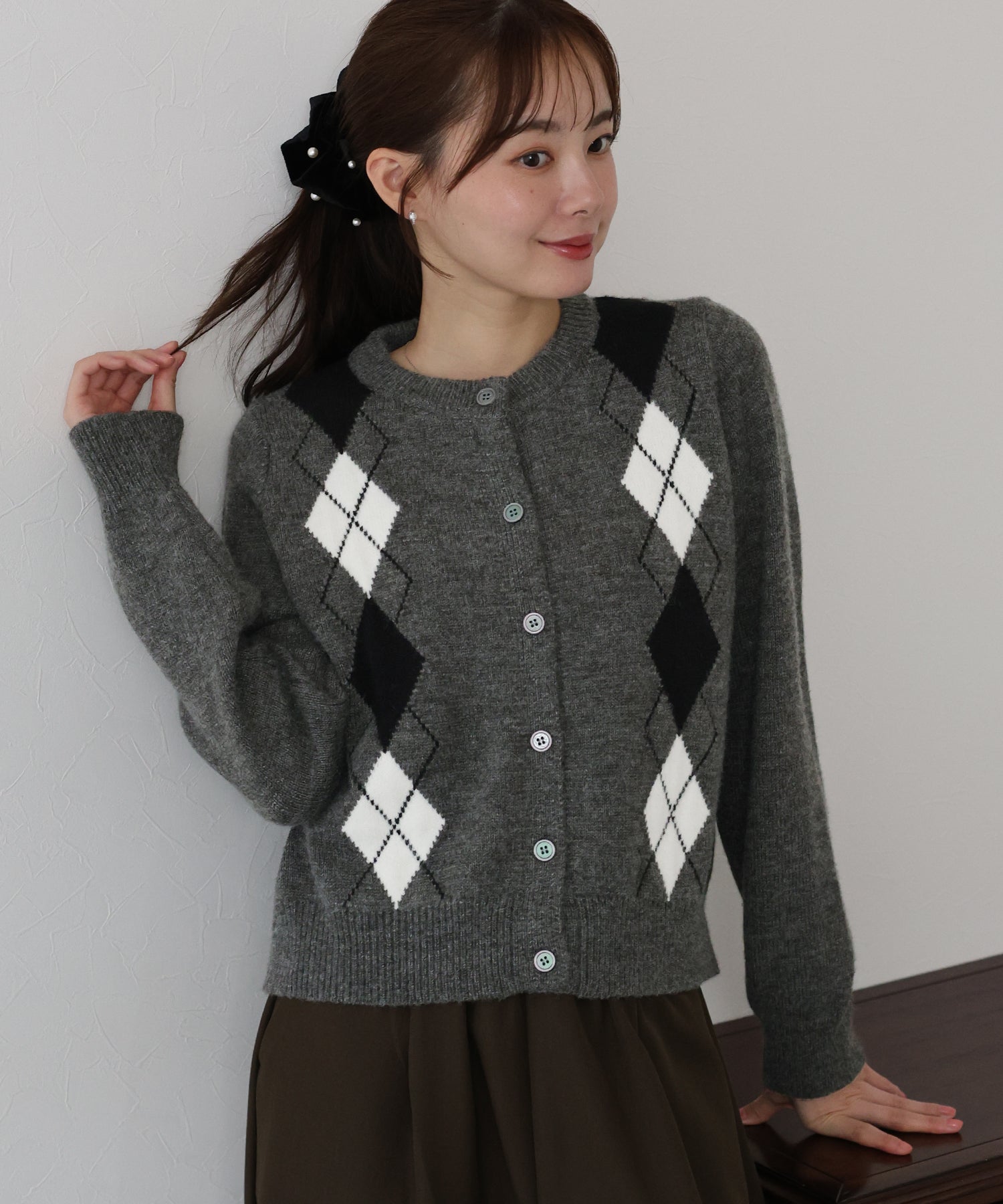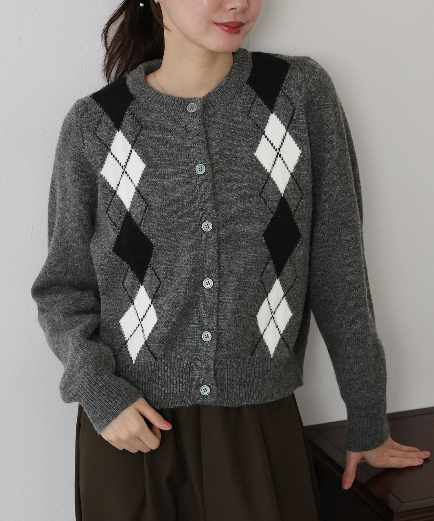 シーズンライクなアーガイル柄がクラシカルな印象のニットカーディガン