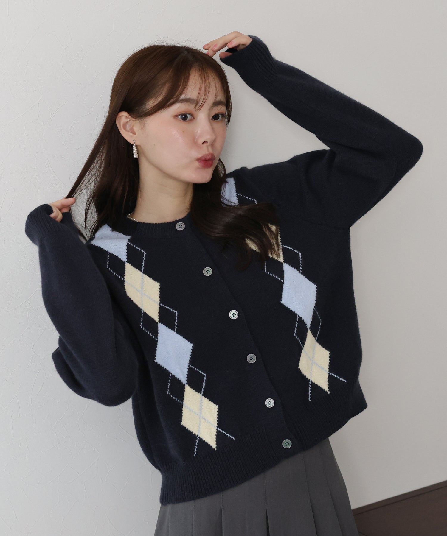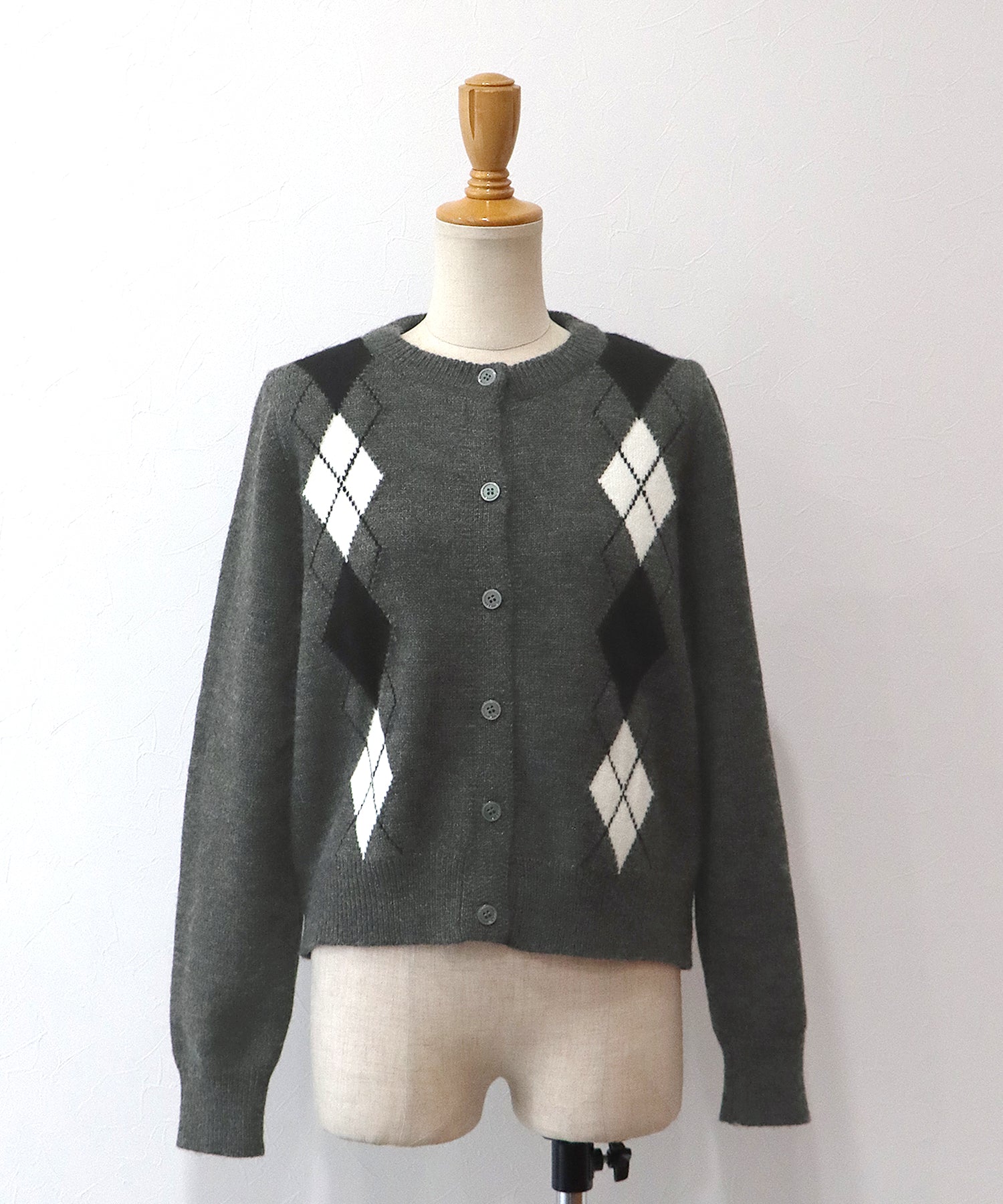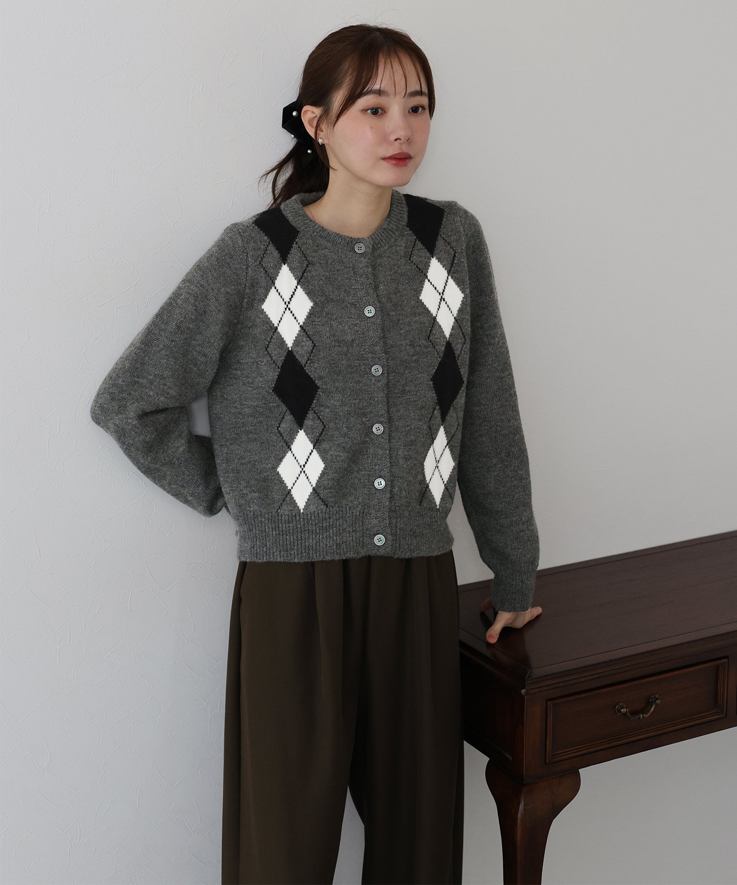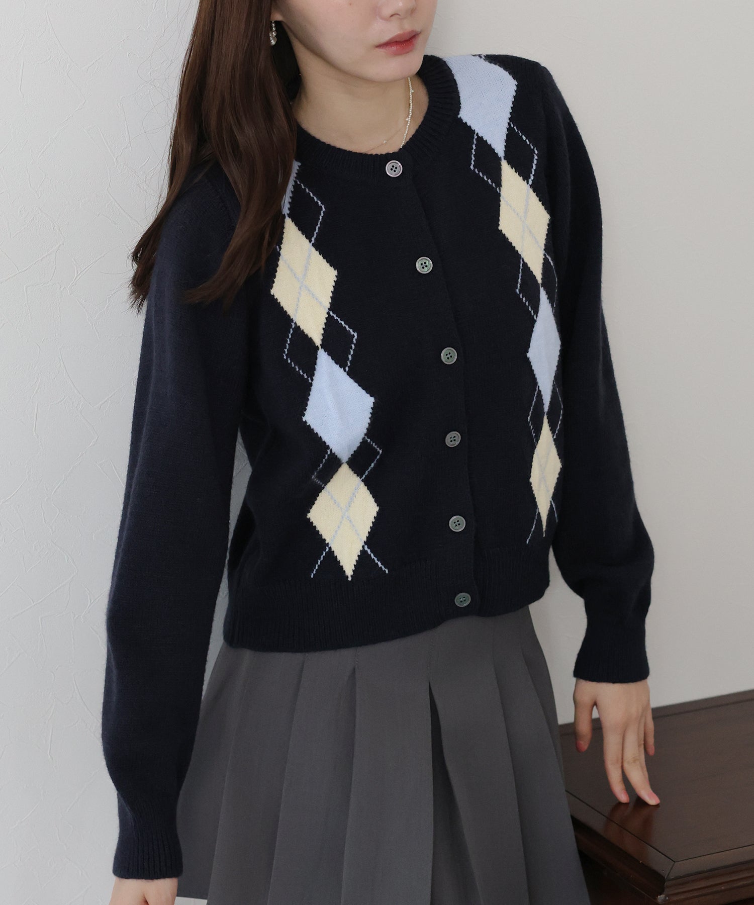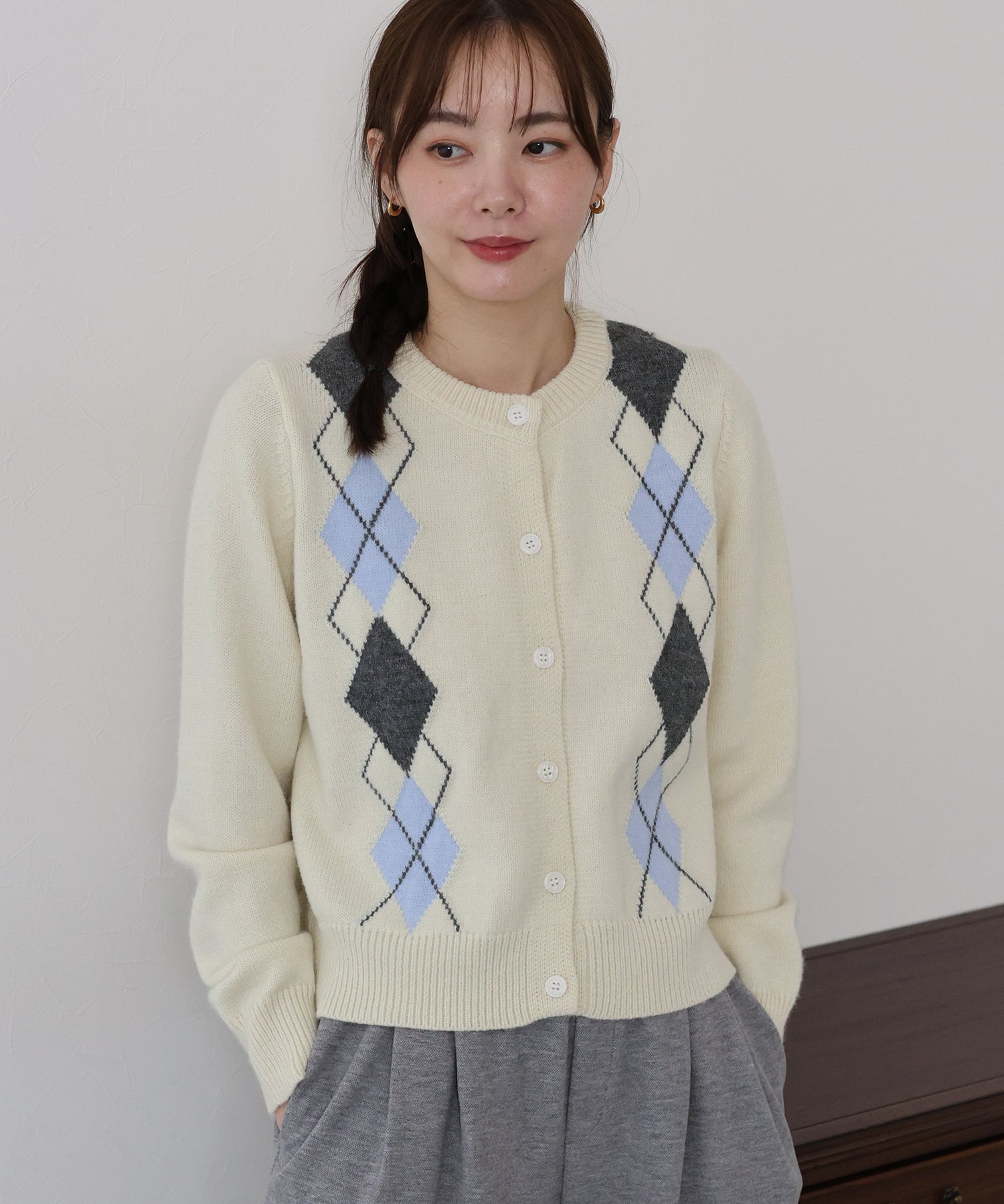 シーズンライクなアーガイル柄がクラシカルな印象のニットカーディガン