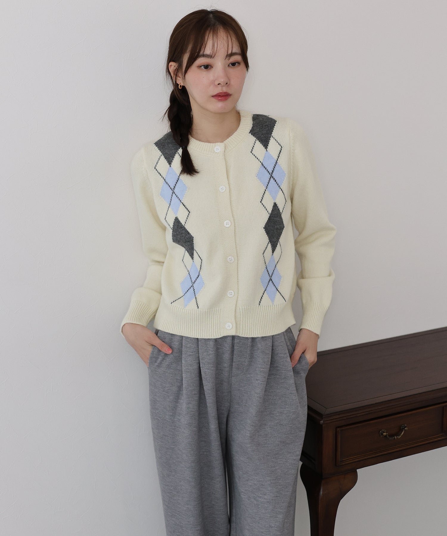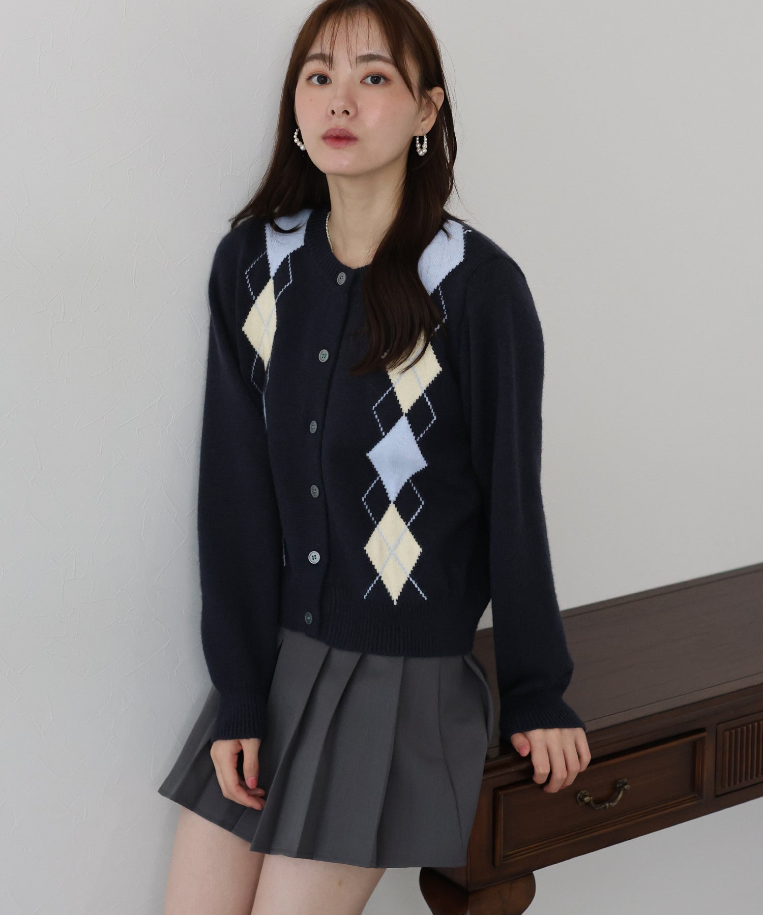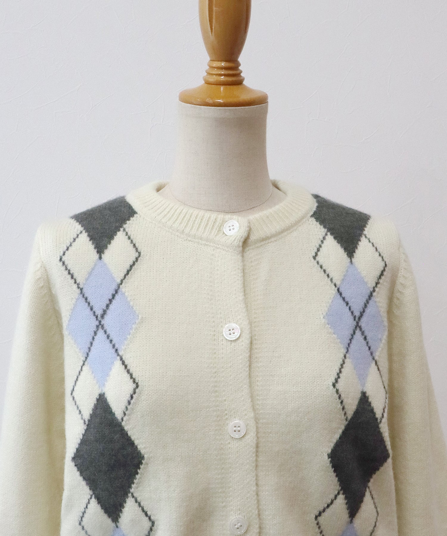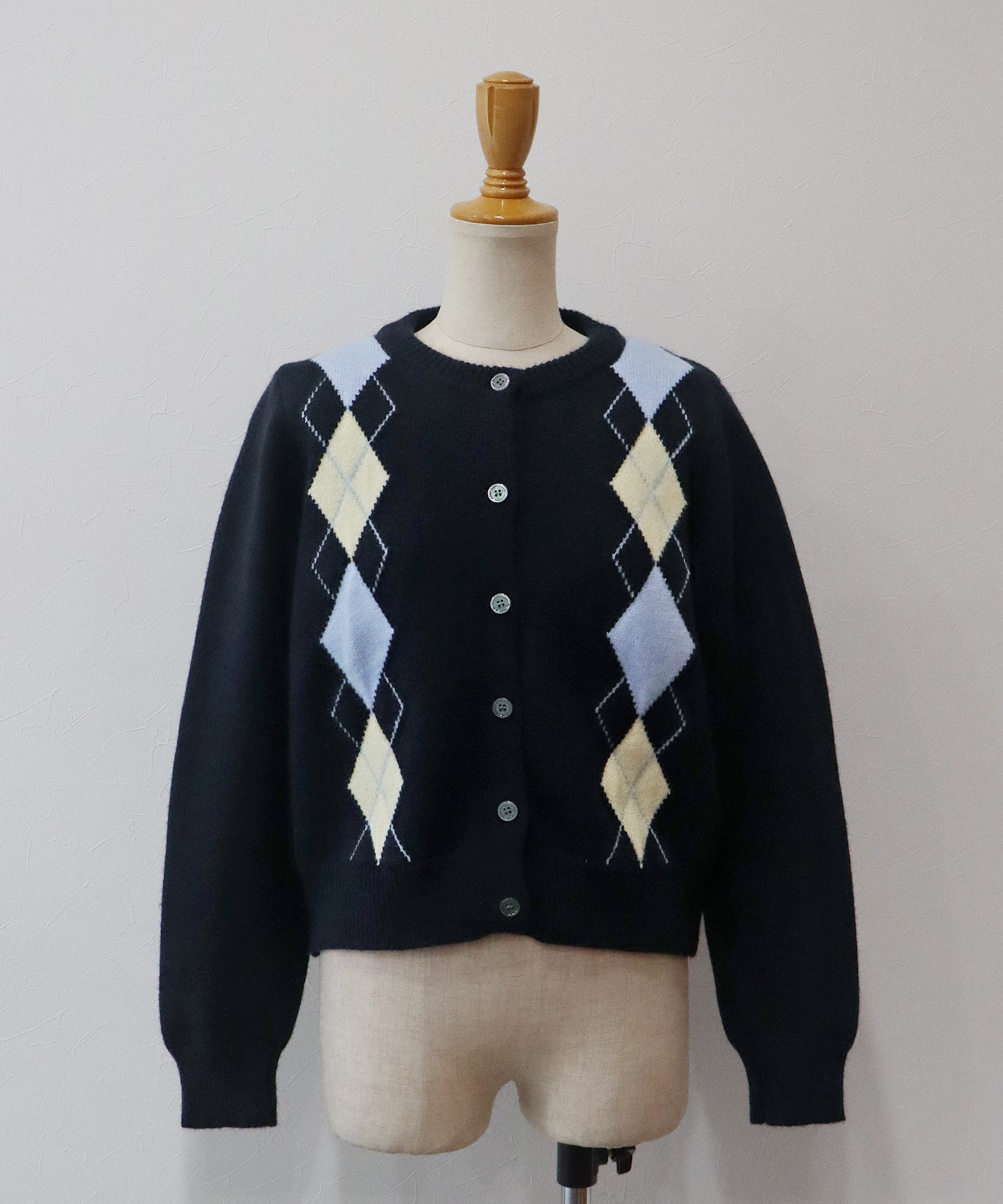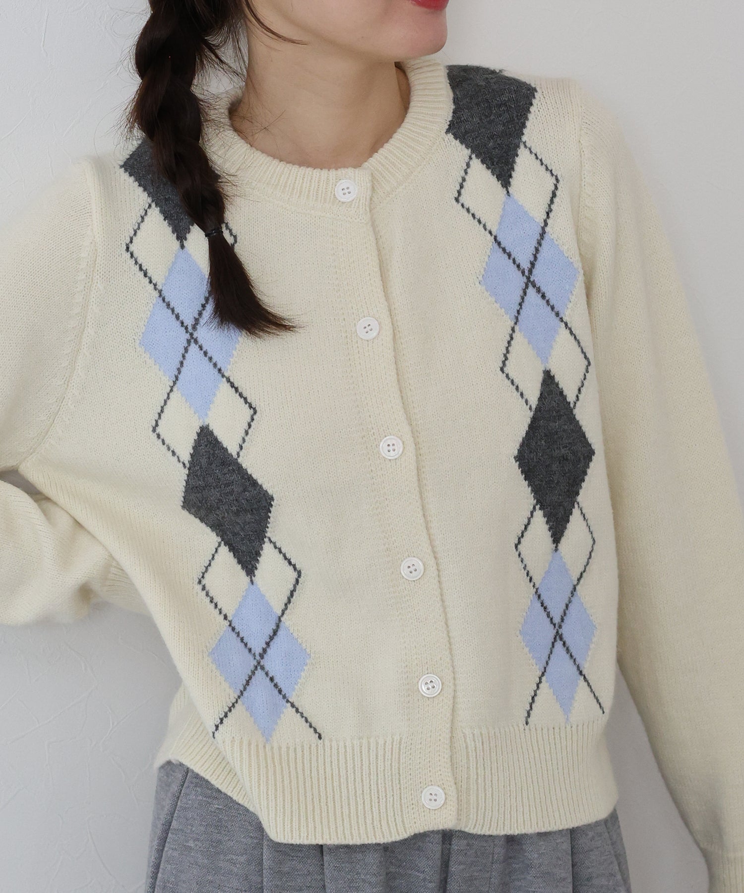 シーズンライクなアーガイル柄がクラシカルな印象のニットカーディガン