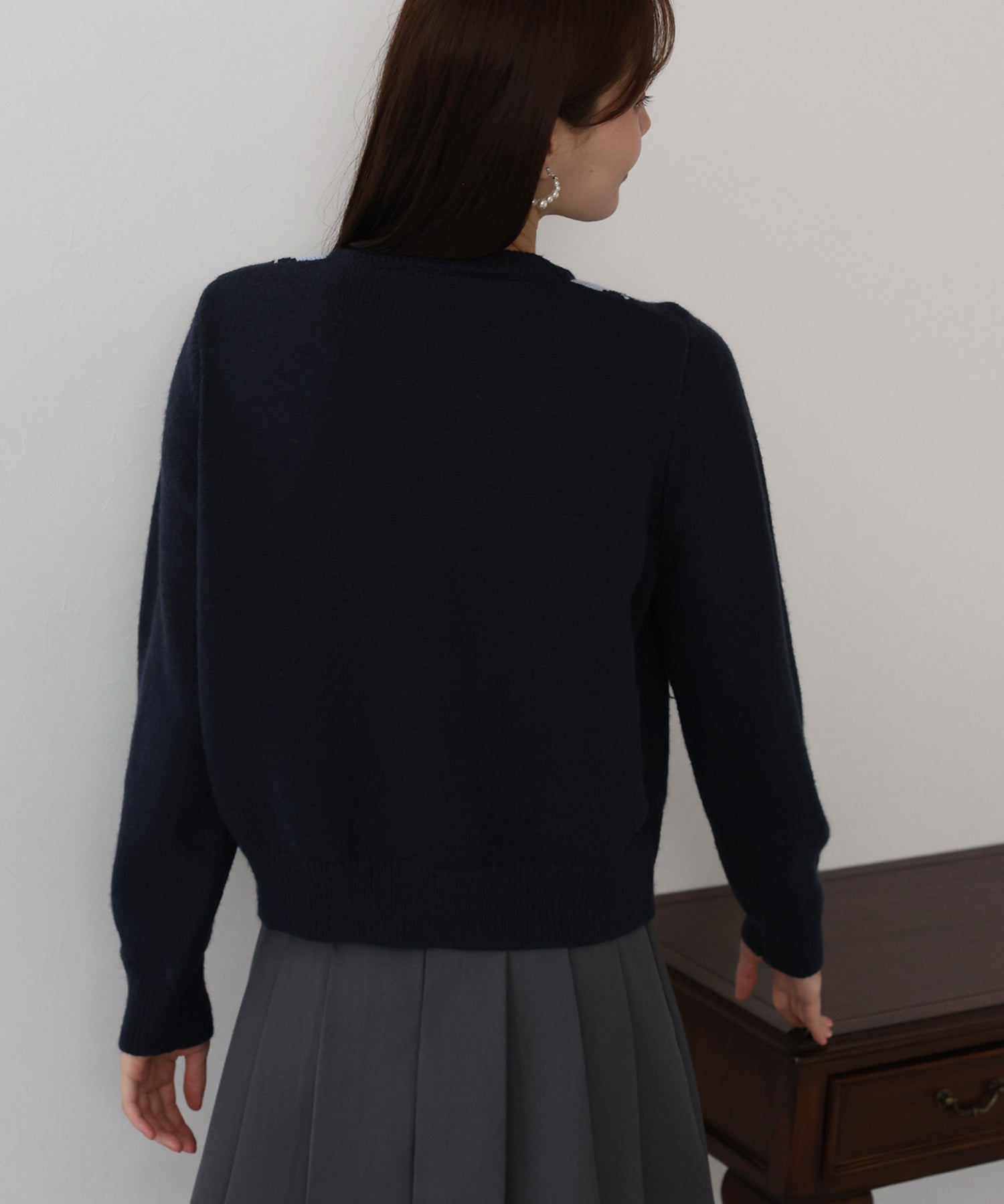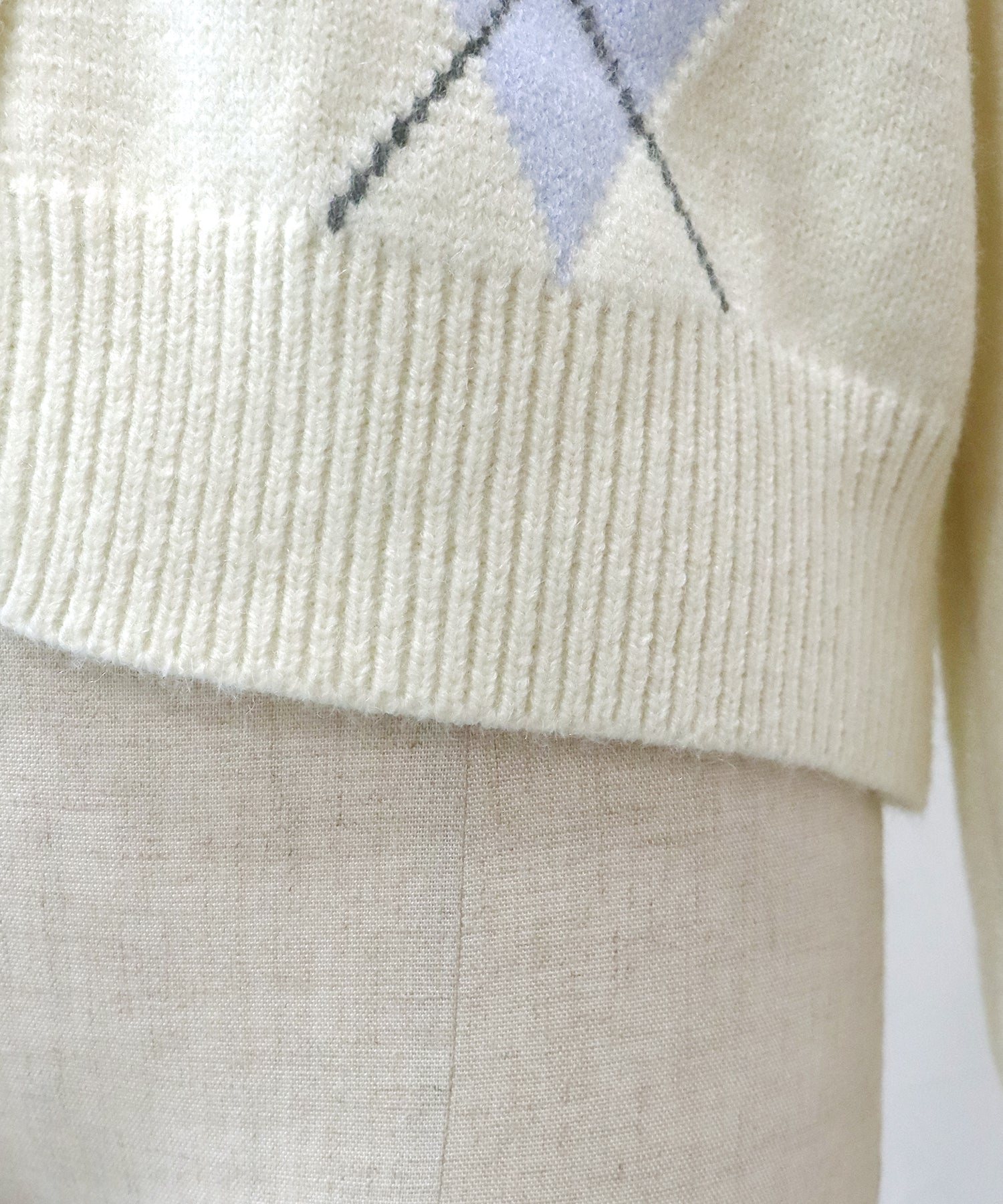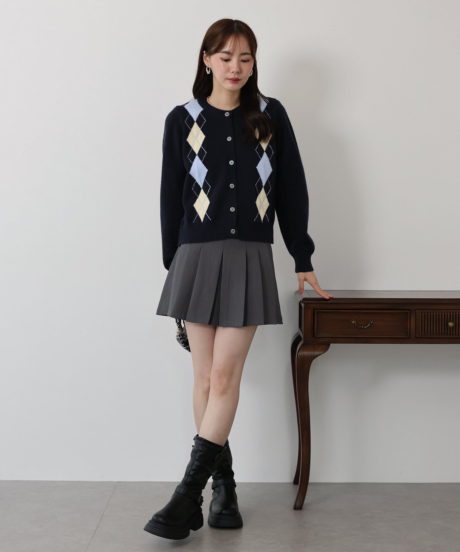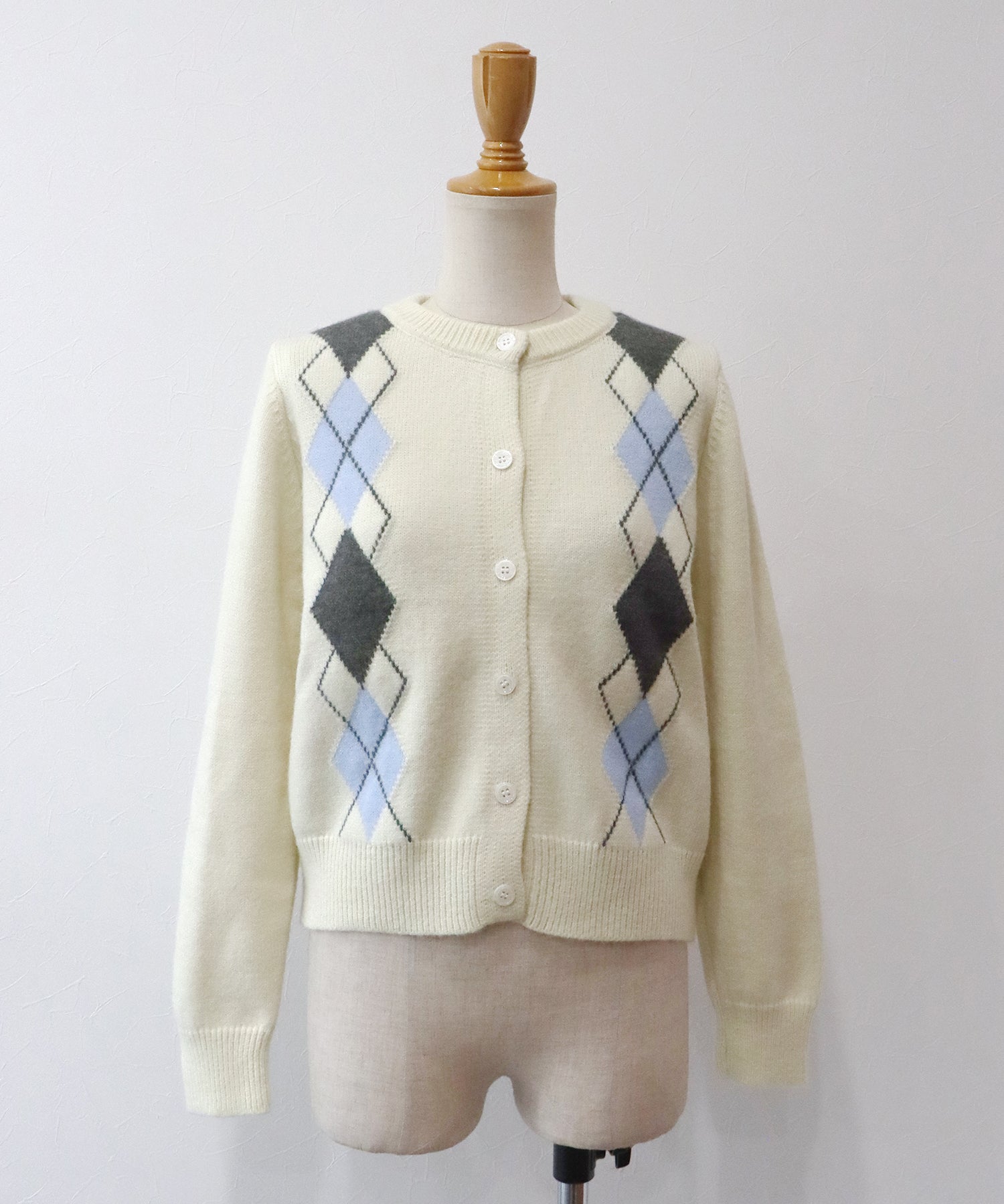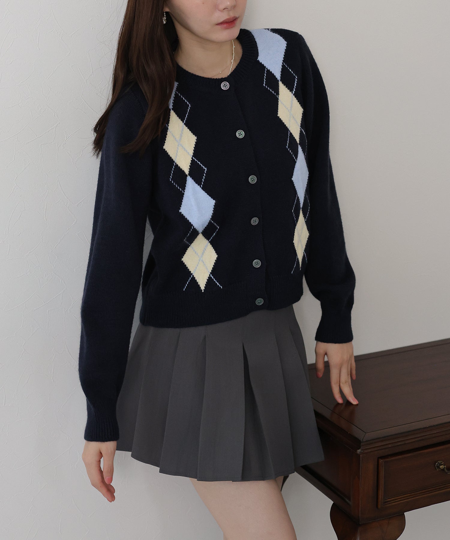 シーズンライクなアーガイル柄がクラシカルな印象のニットカーディガン