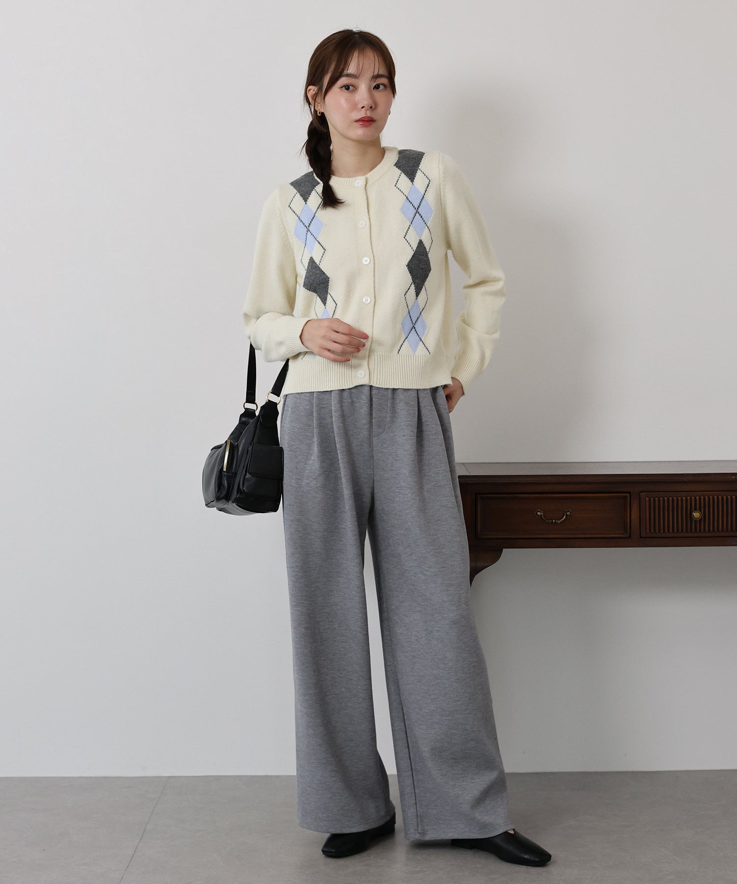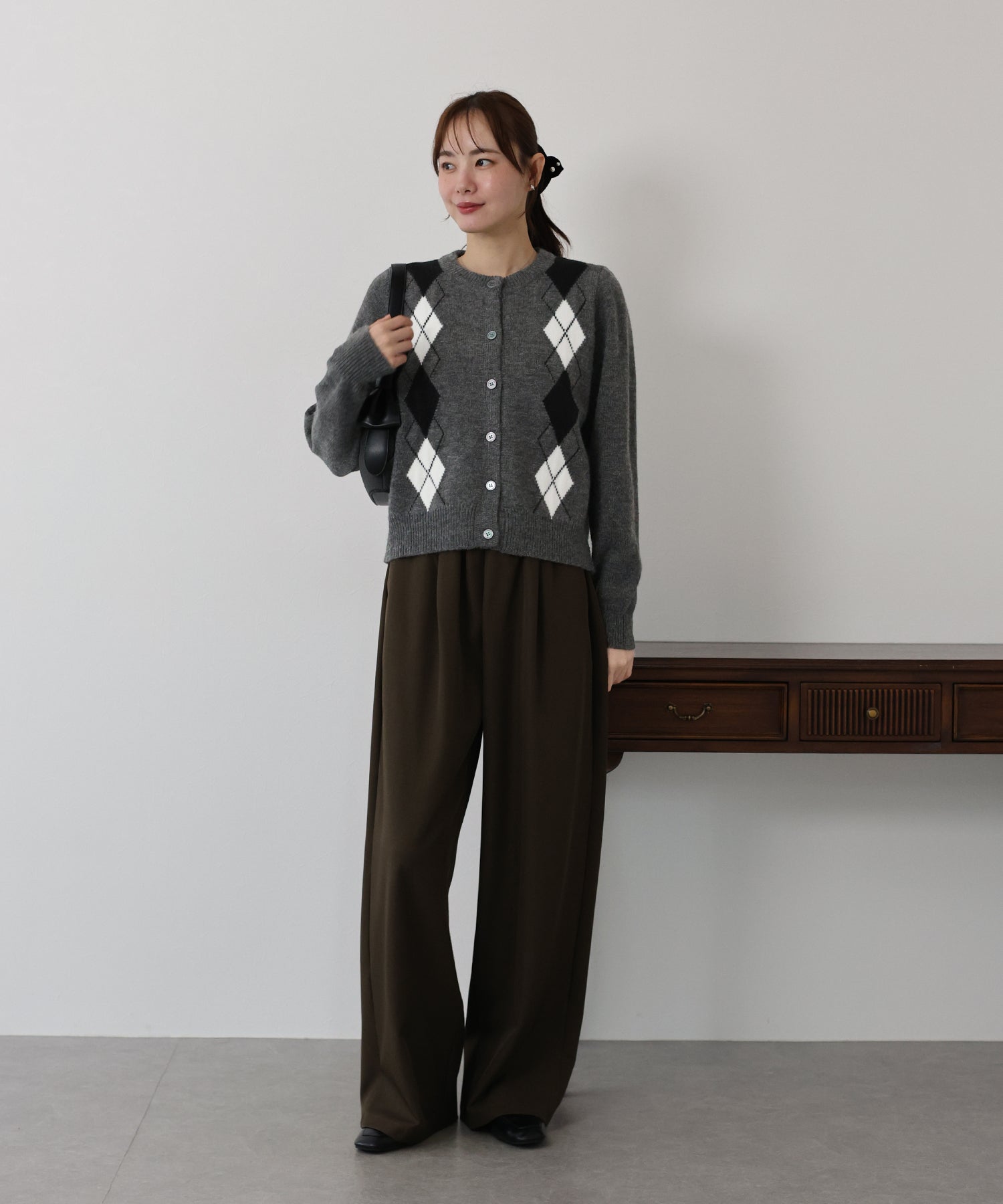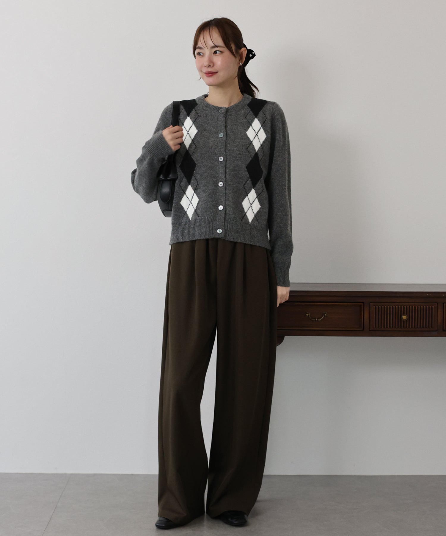 アーガイル柄が秋冬のムードを高めるニットカーディガン。