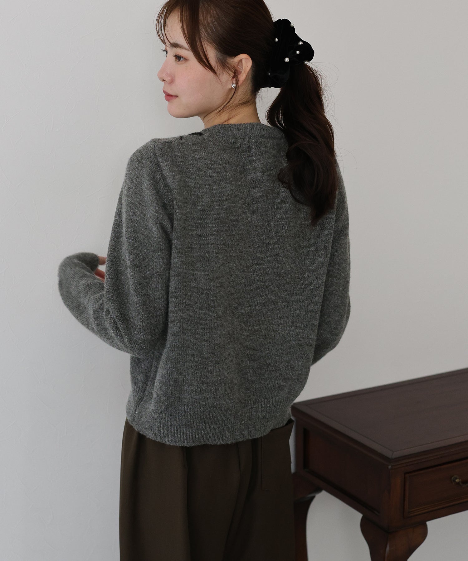ゴールドボタンケーブルニットカーディガン[ J by blue ]