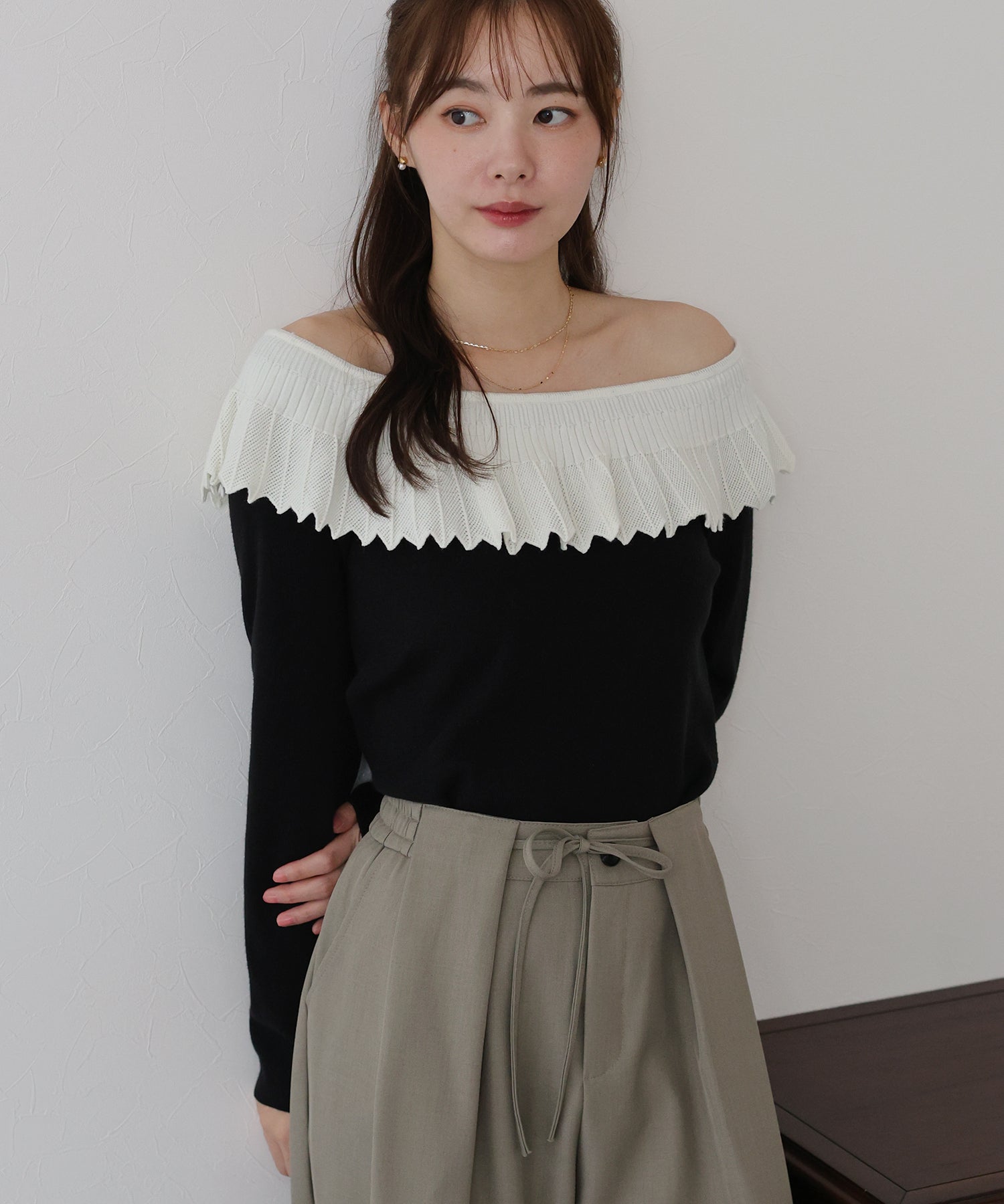 ニット素材のレース襟