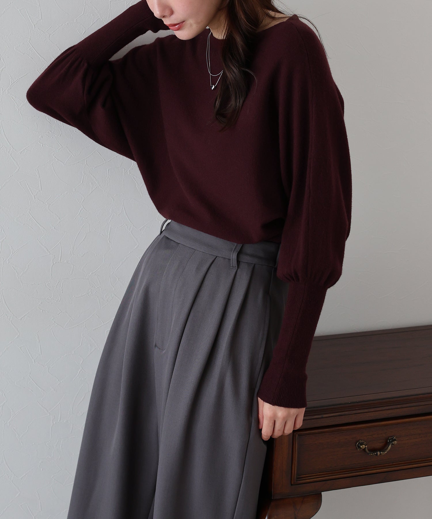 【早割5%OFF】ウール混ボリュームスリーブドルマンニット