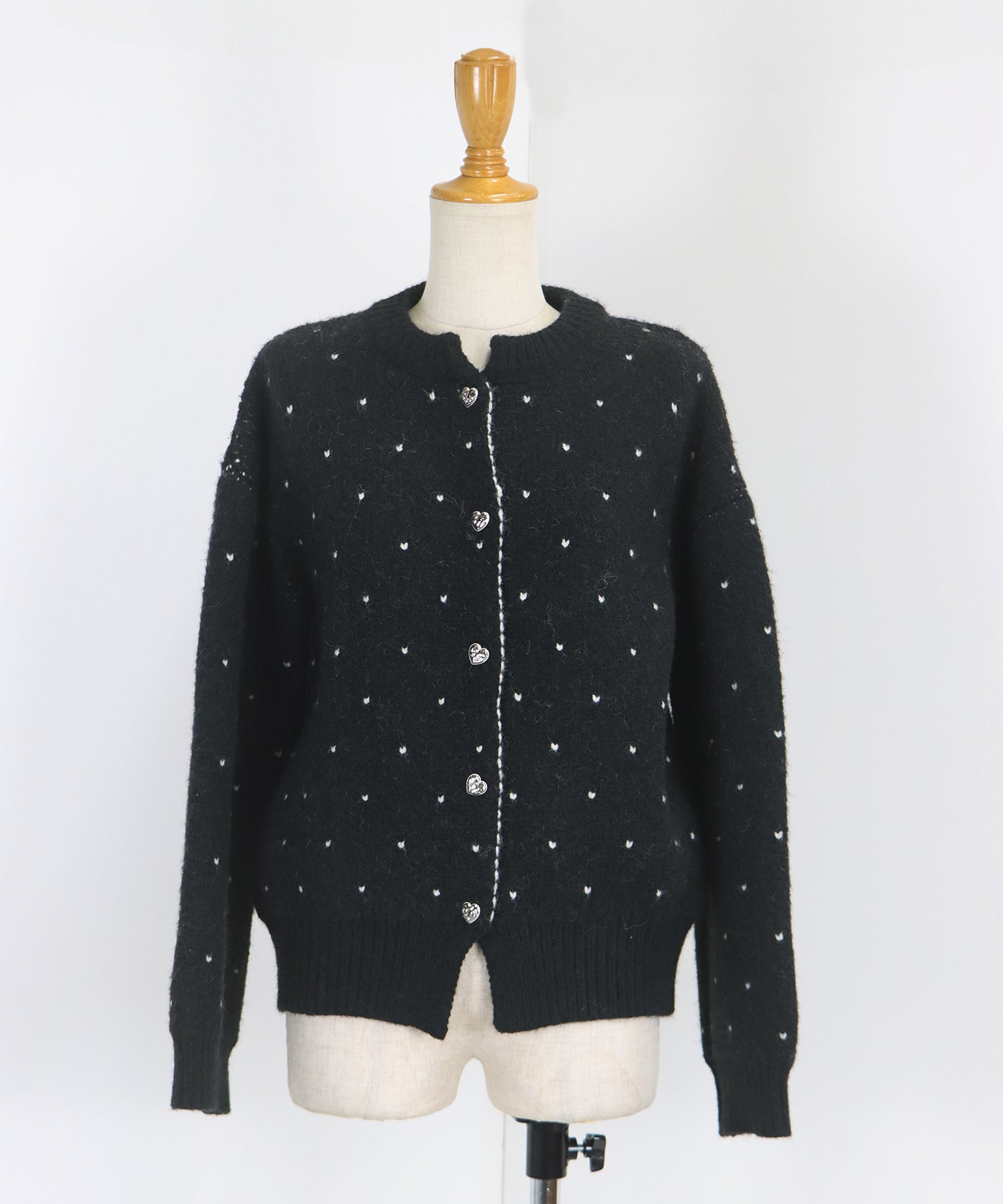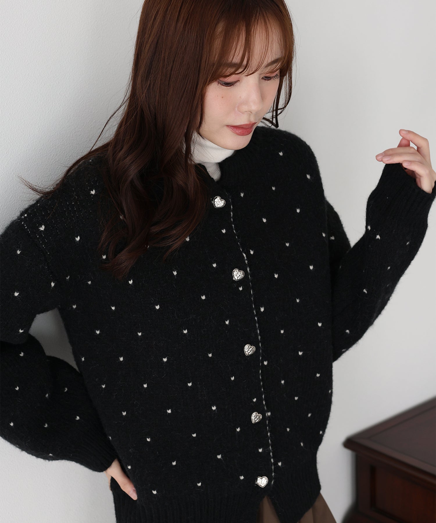 ハート柄とシルバーボタンが可愛いニットカーディガン