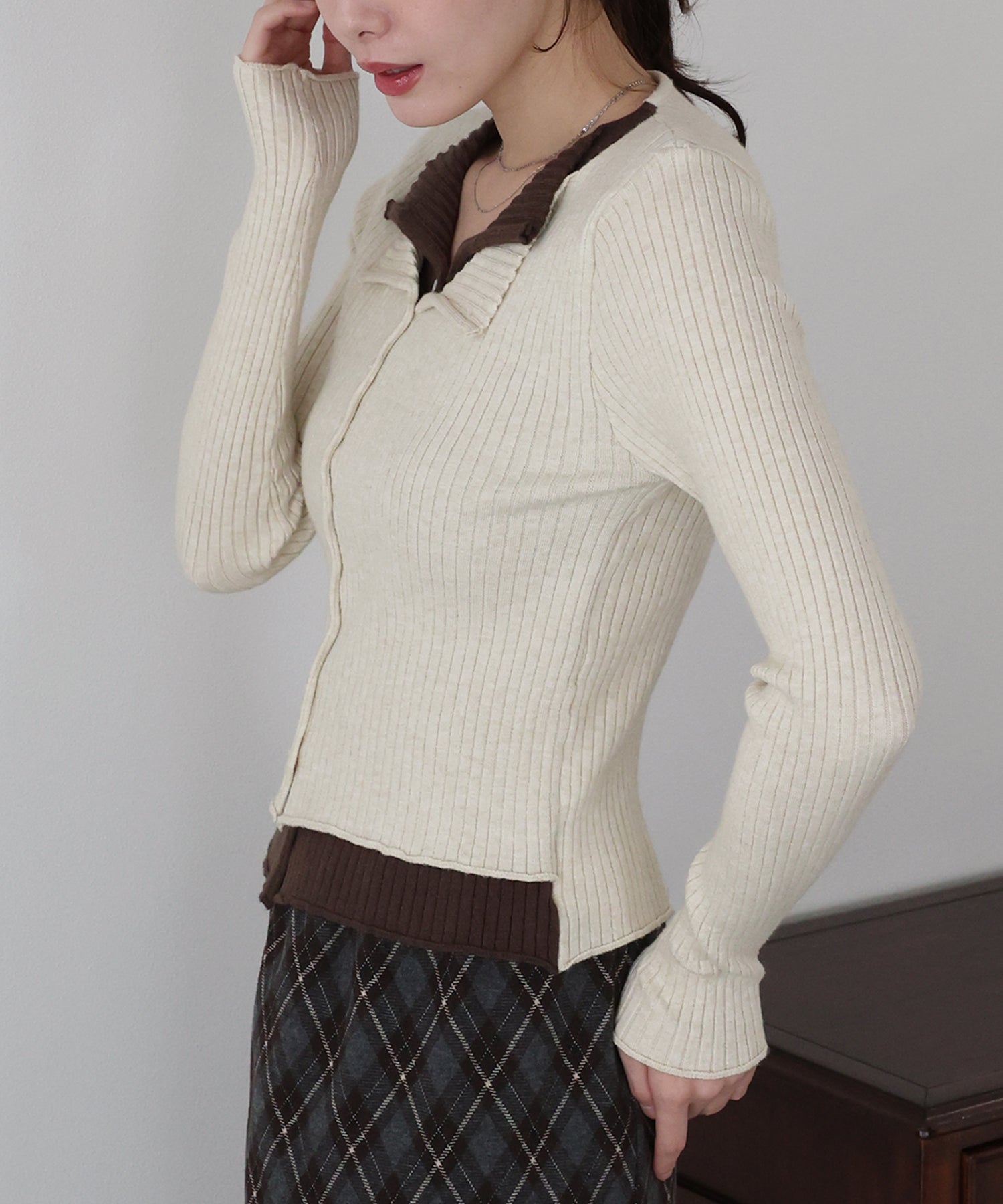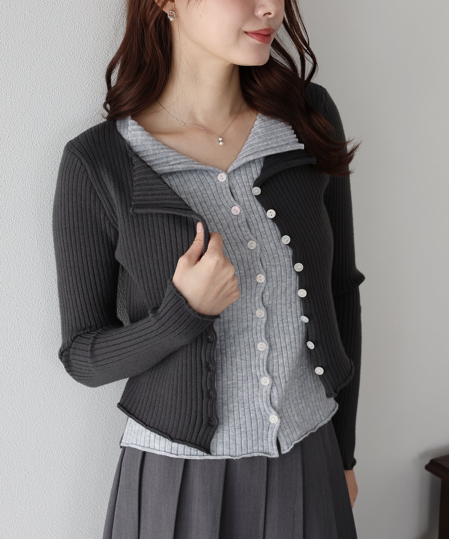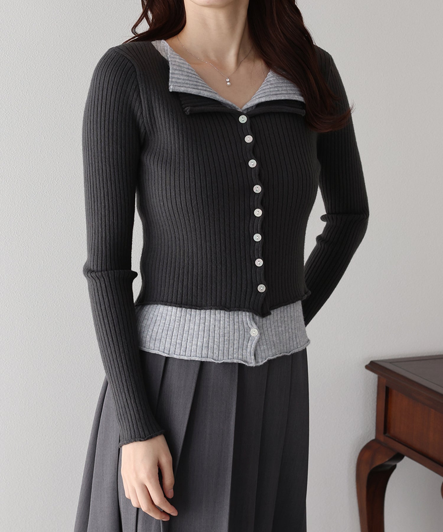 【SALE】バイカラーレイヤードカーディガン