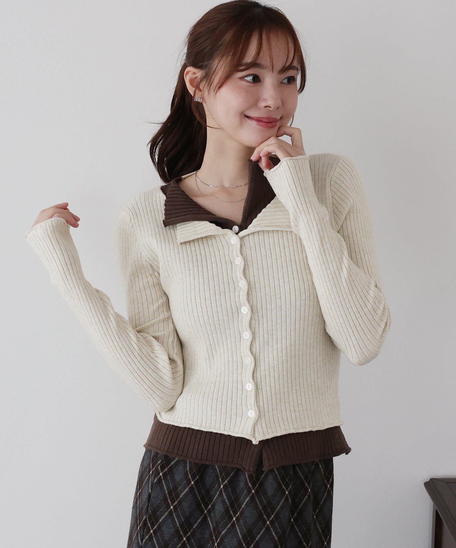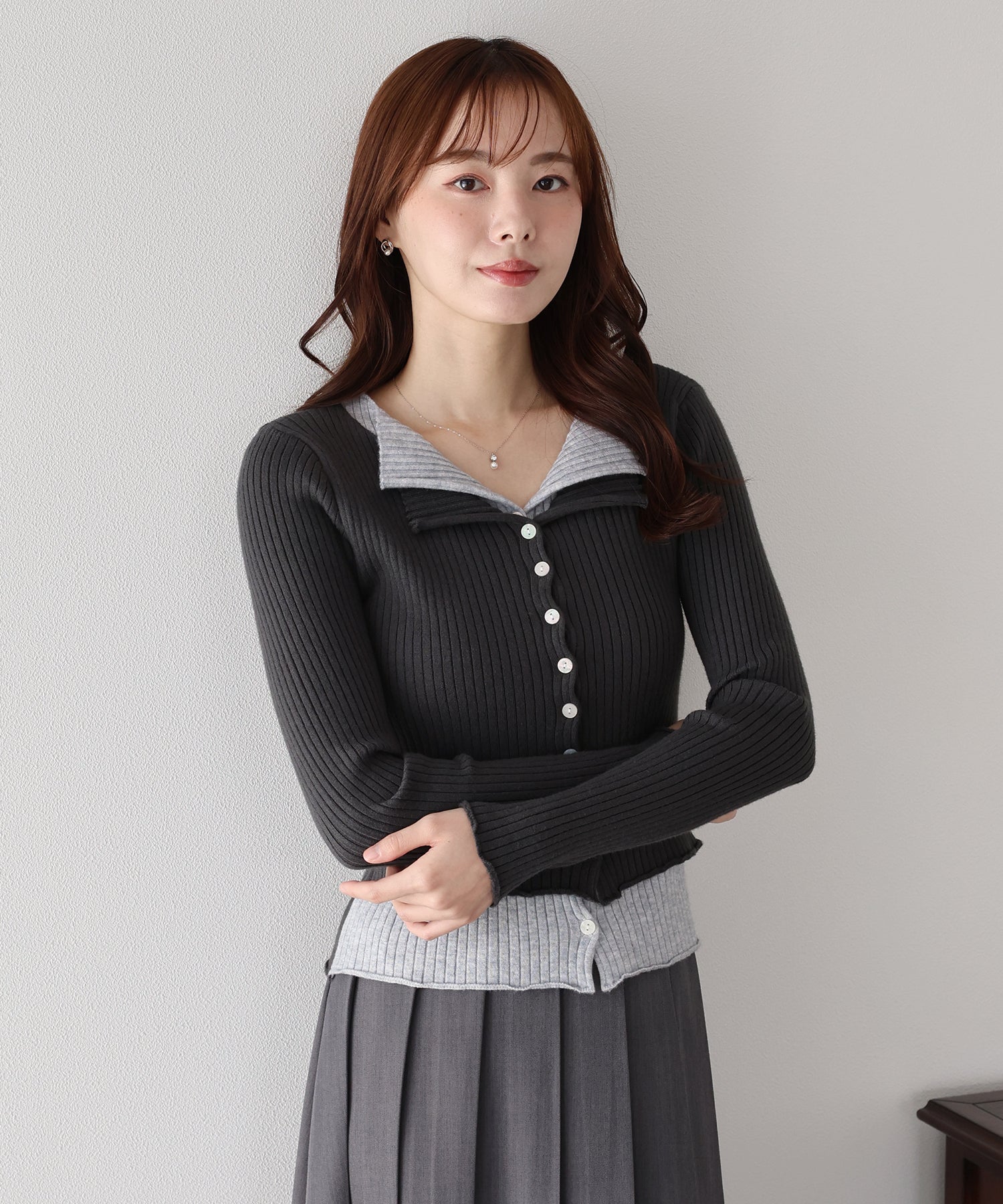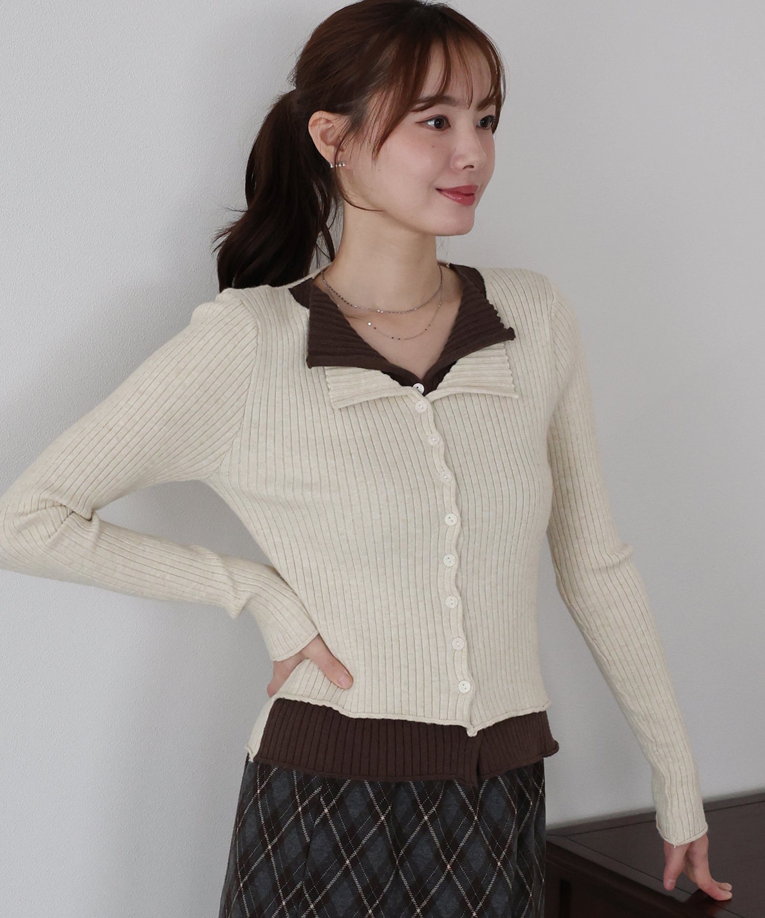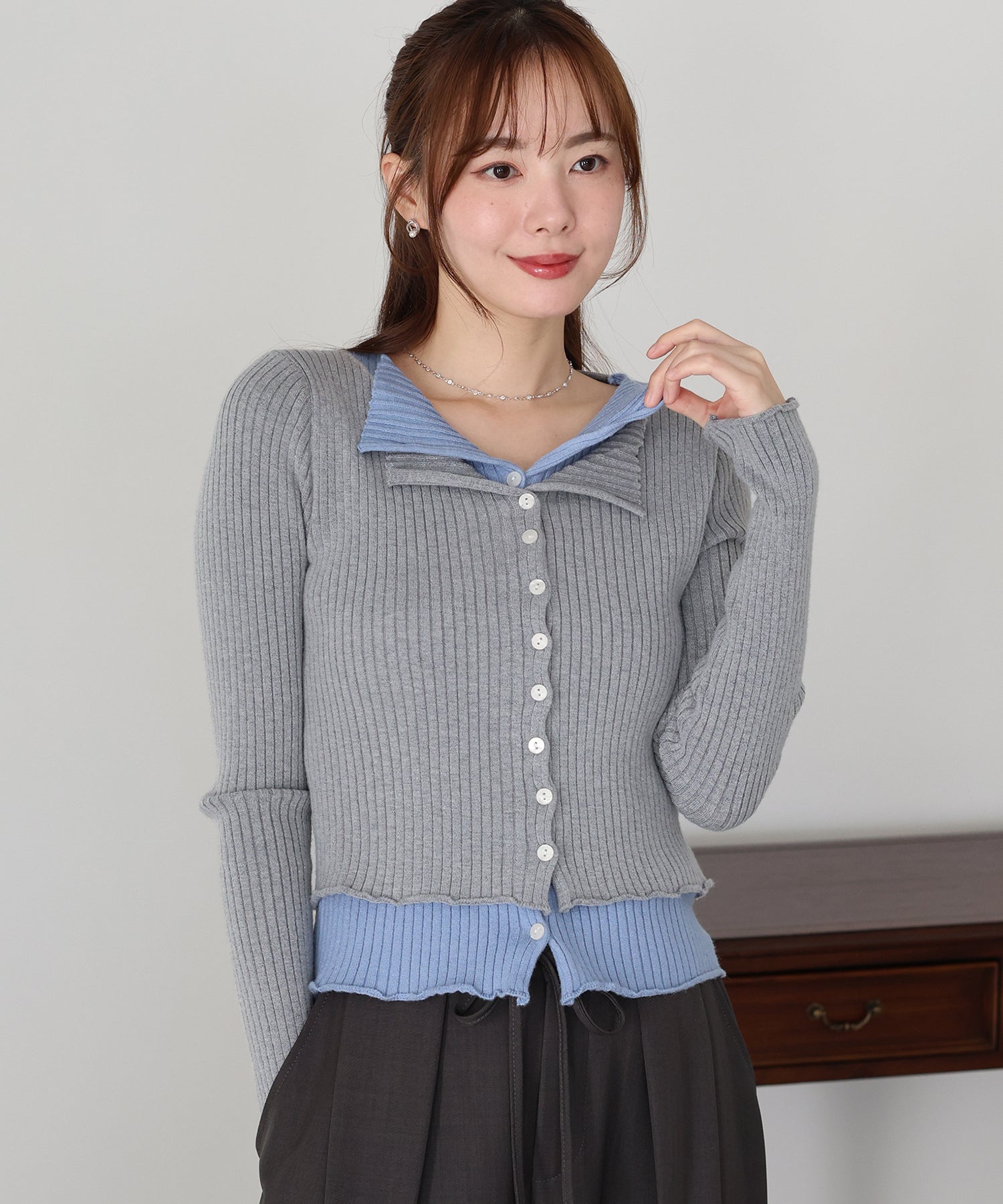 【SALE】バイカラーレイヤードカーディガン