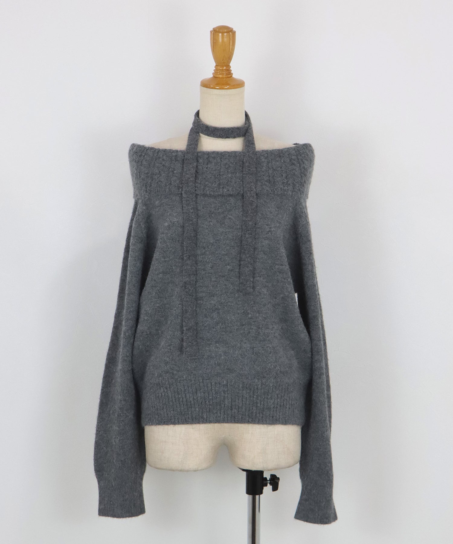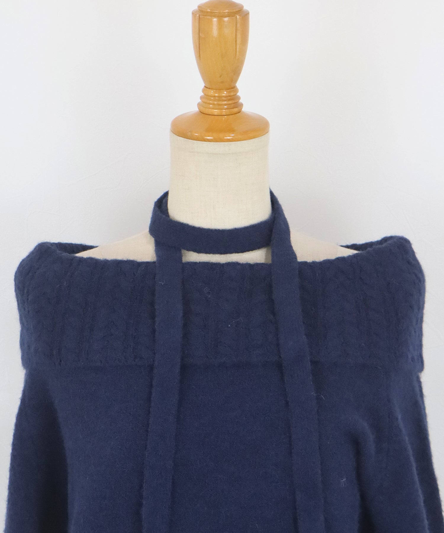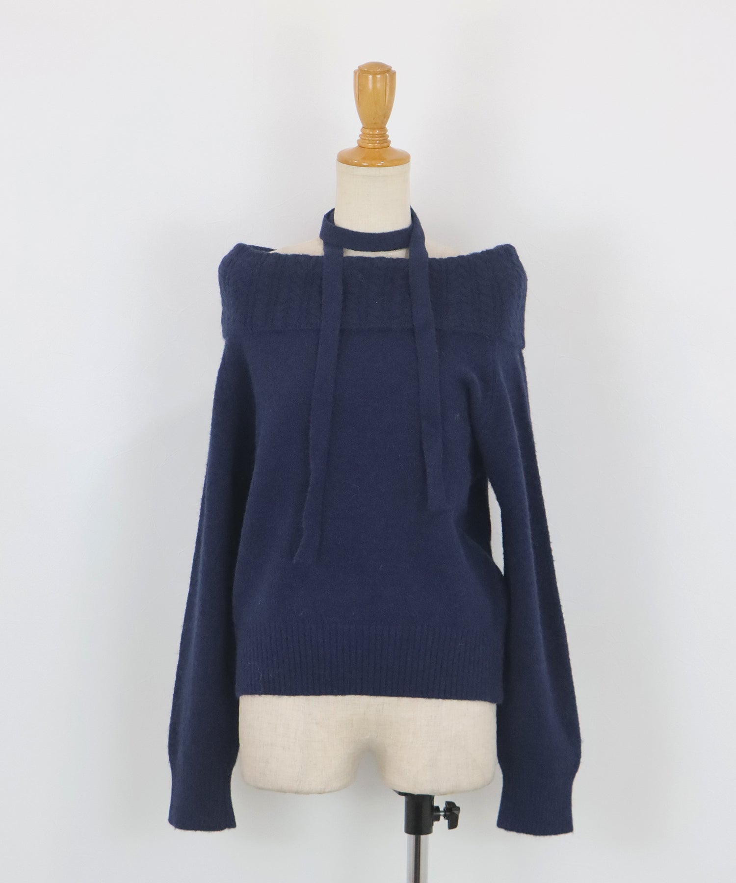 TIME SALE【早割5%OFF】リボンタイ付きオフショルダーニット